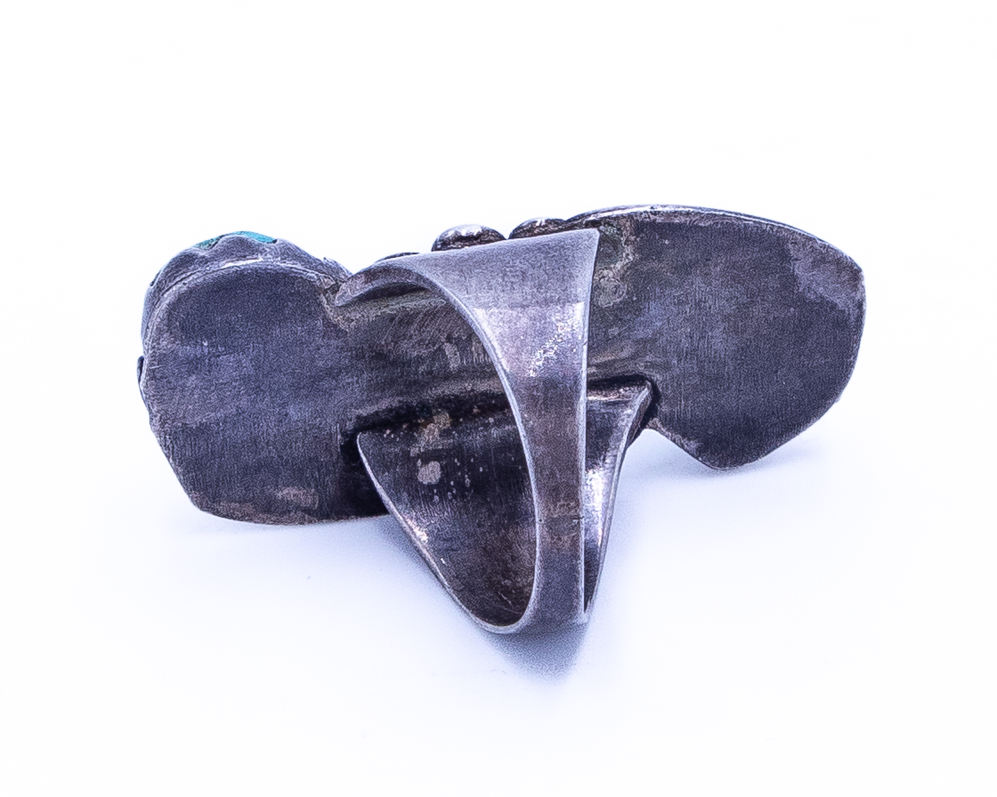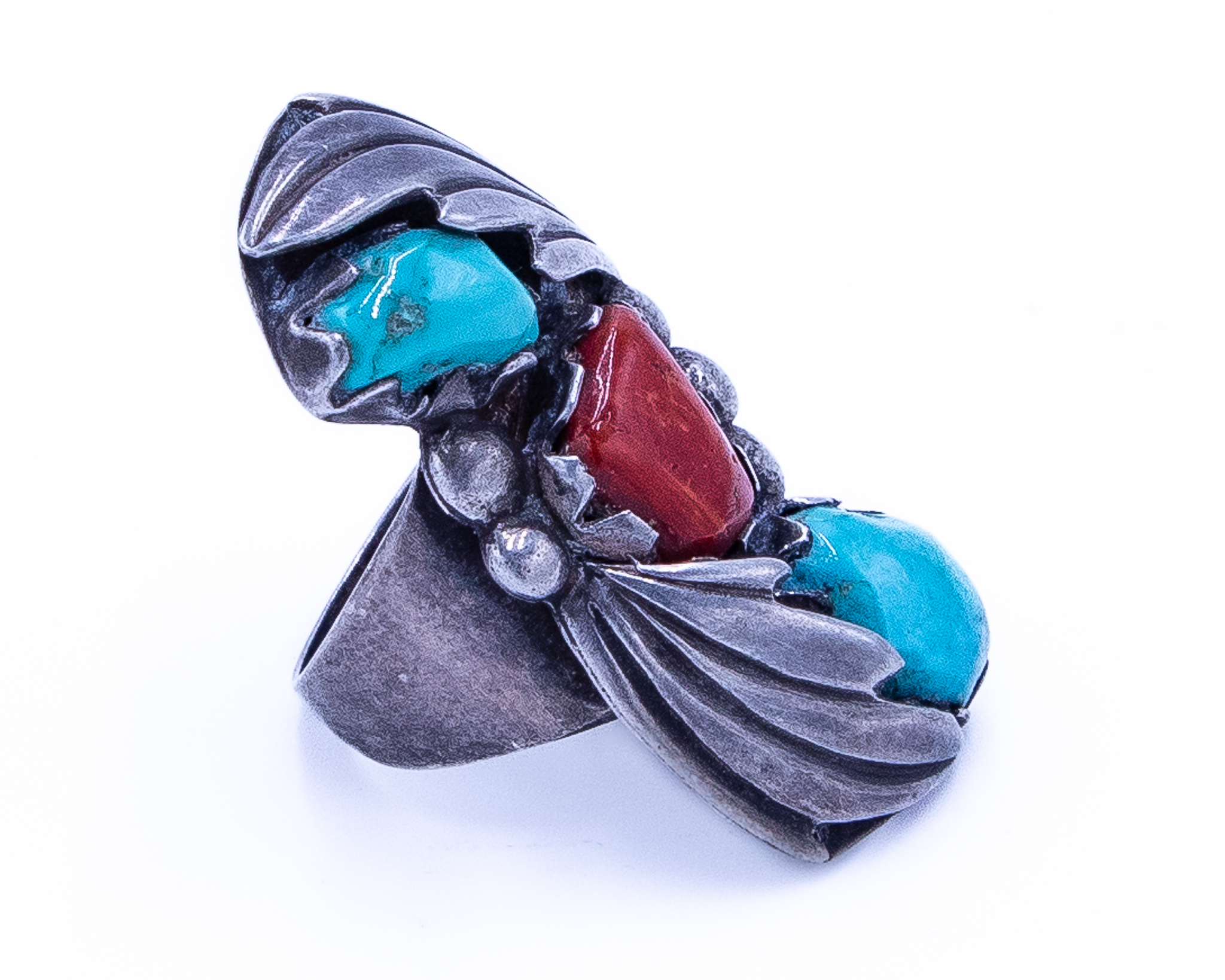 Vintage Navajo Turquoise Coral Sterling Ring Sz 7, 11g