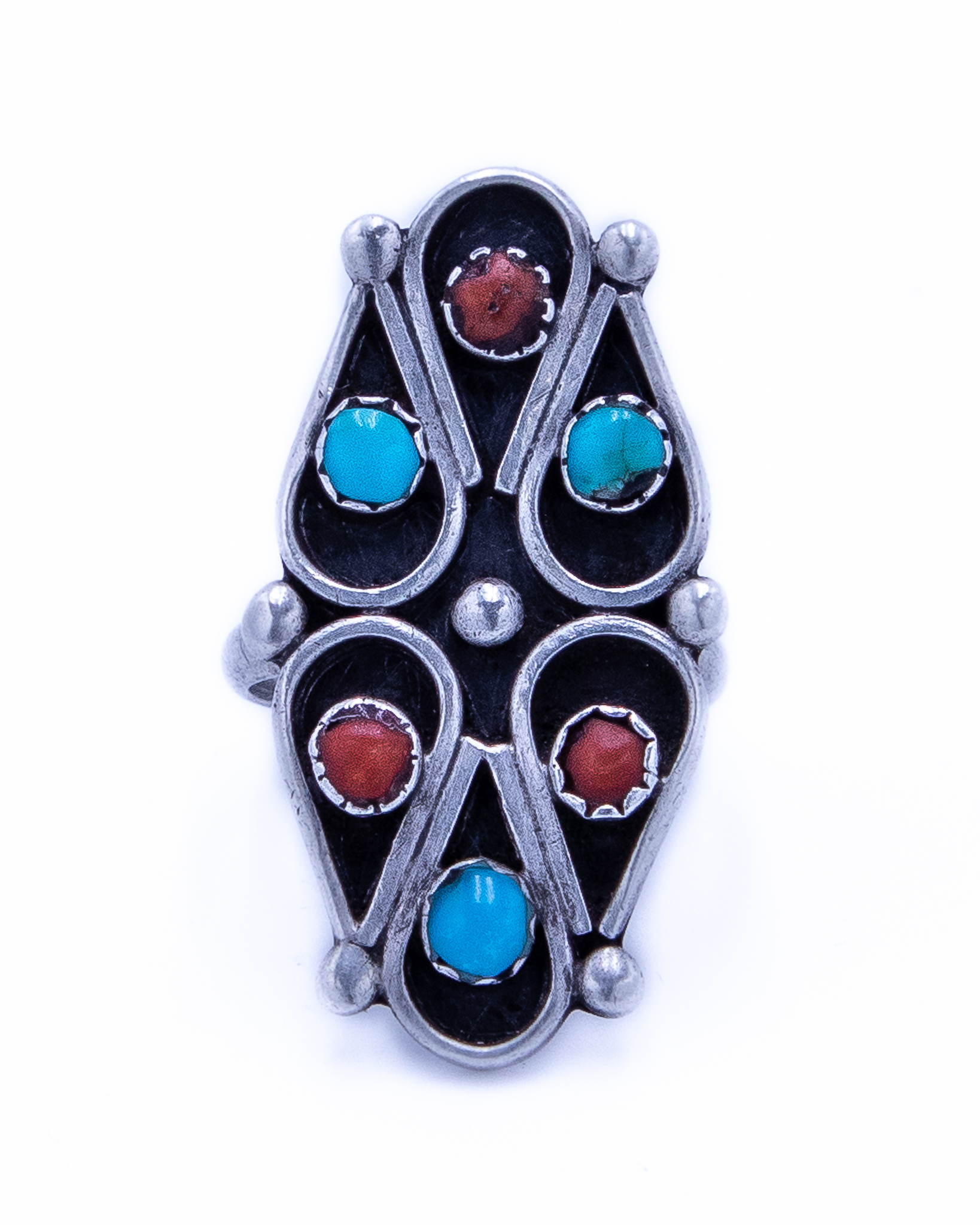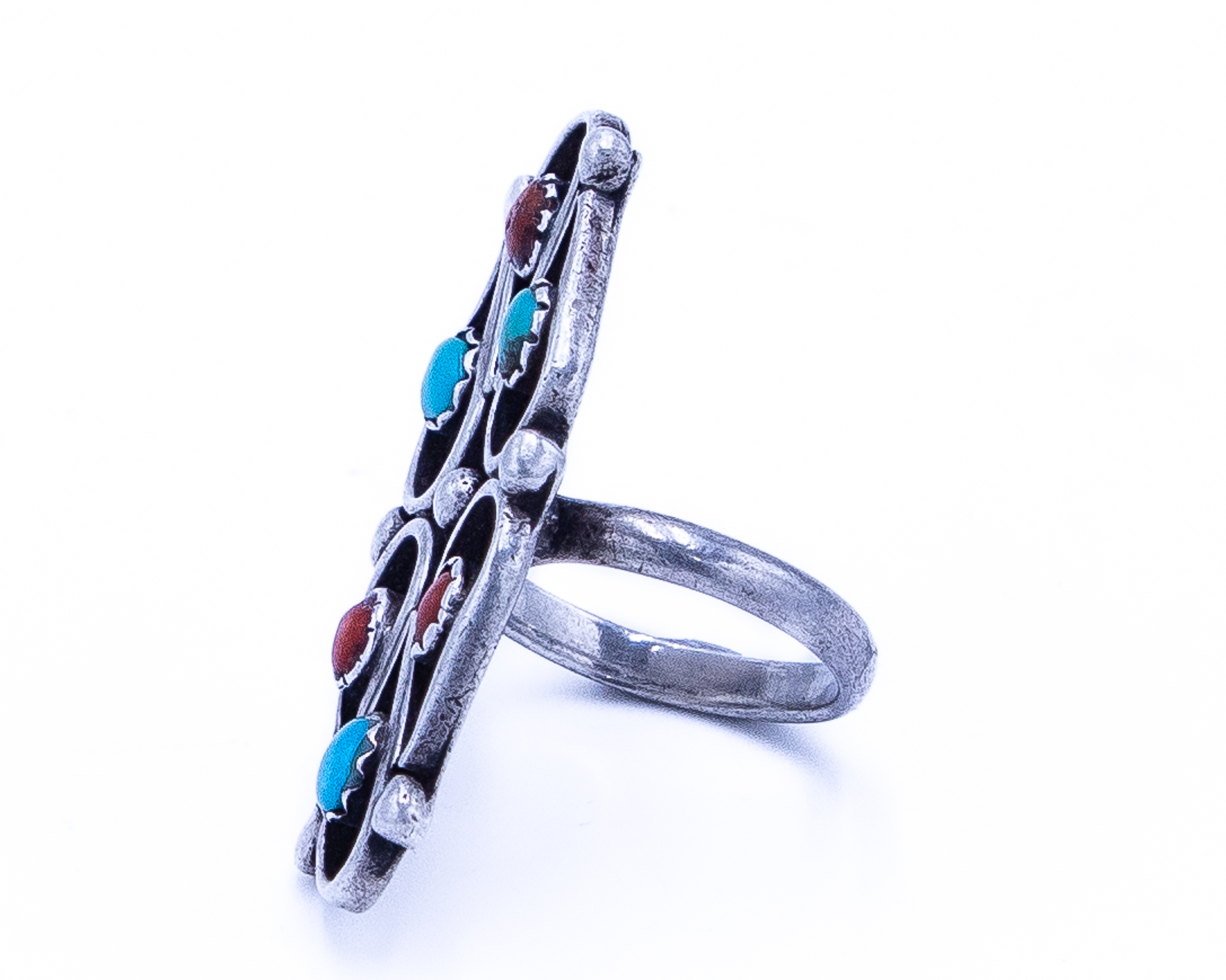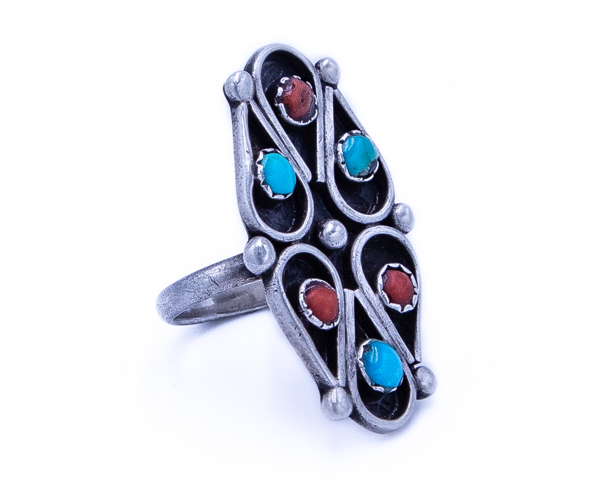 Vintage Navajo Turquoise Coral Sterling Ring Sz 4.5