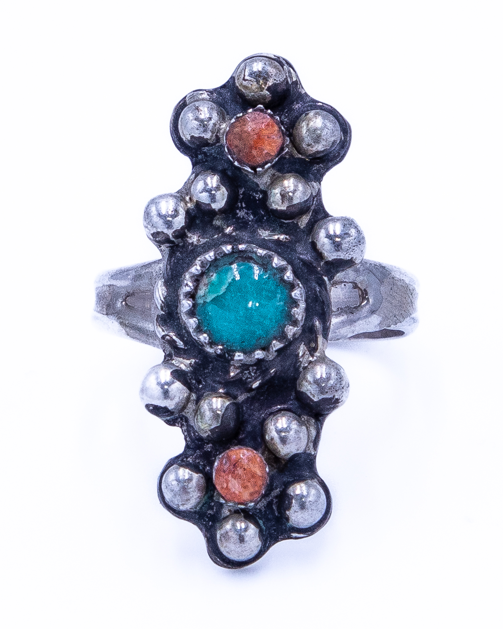 Vintage Zuni Jasper Green Turquoise Sterling Ring Sz 8, 7.5g