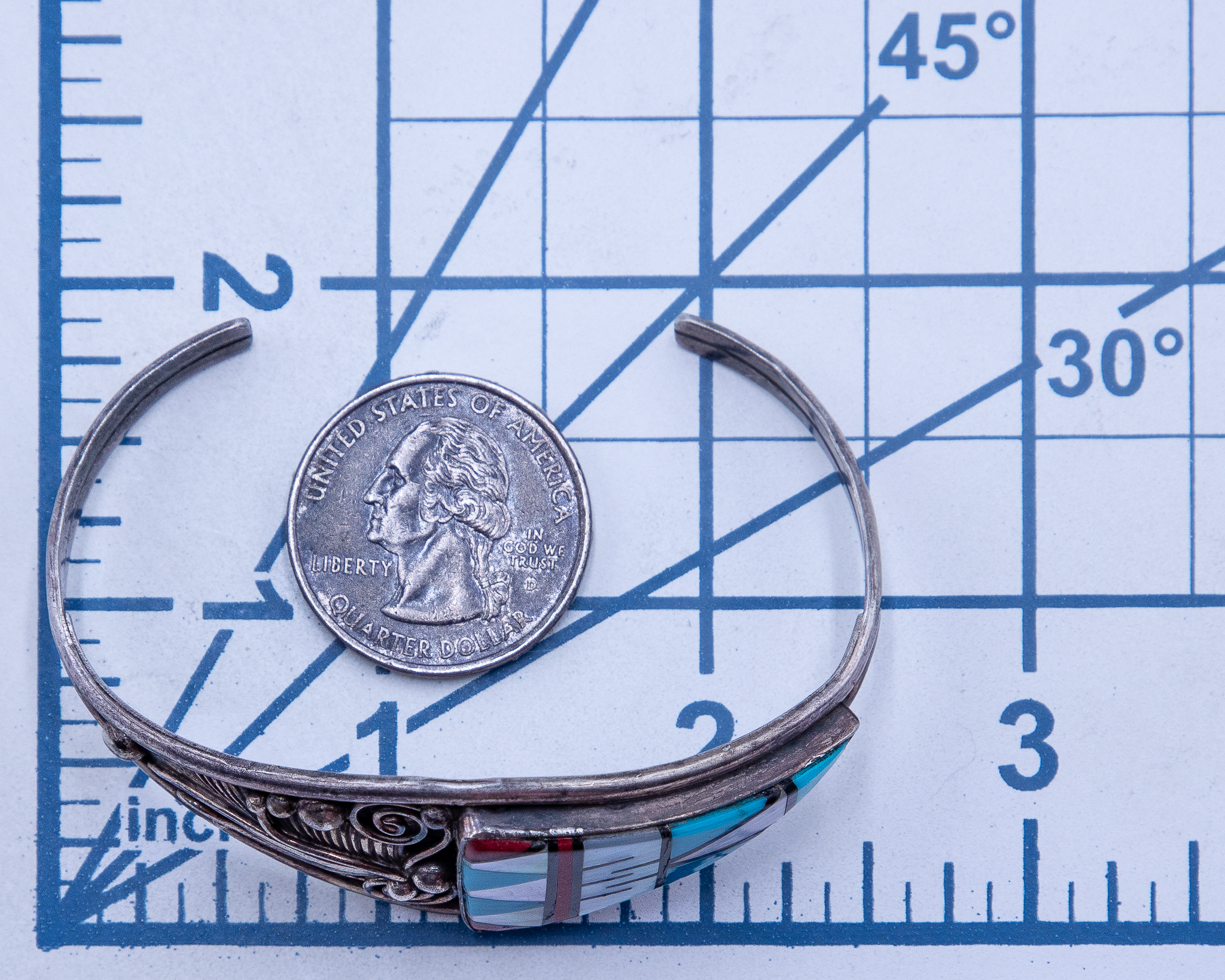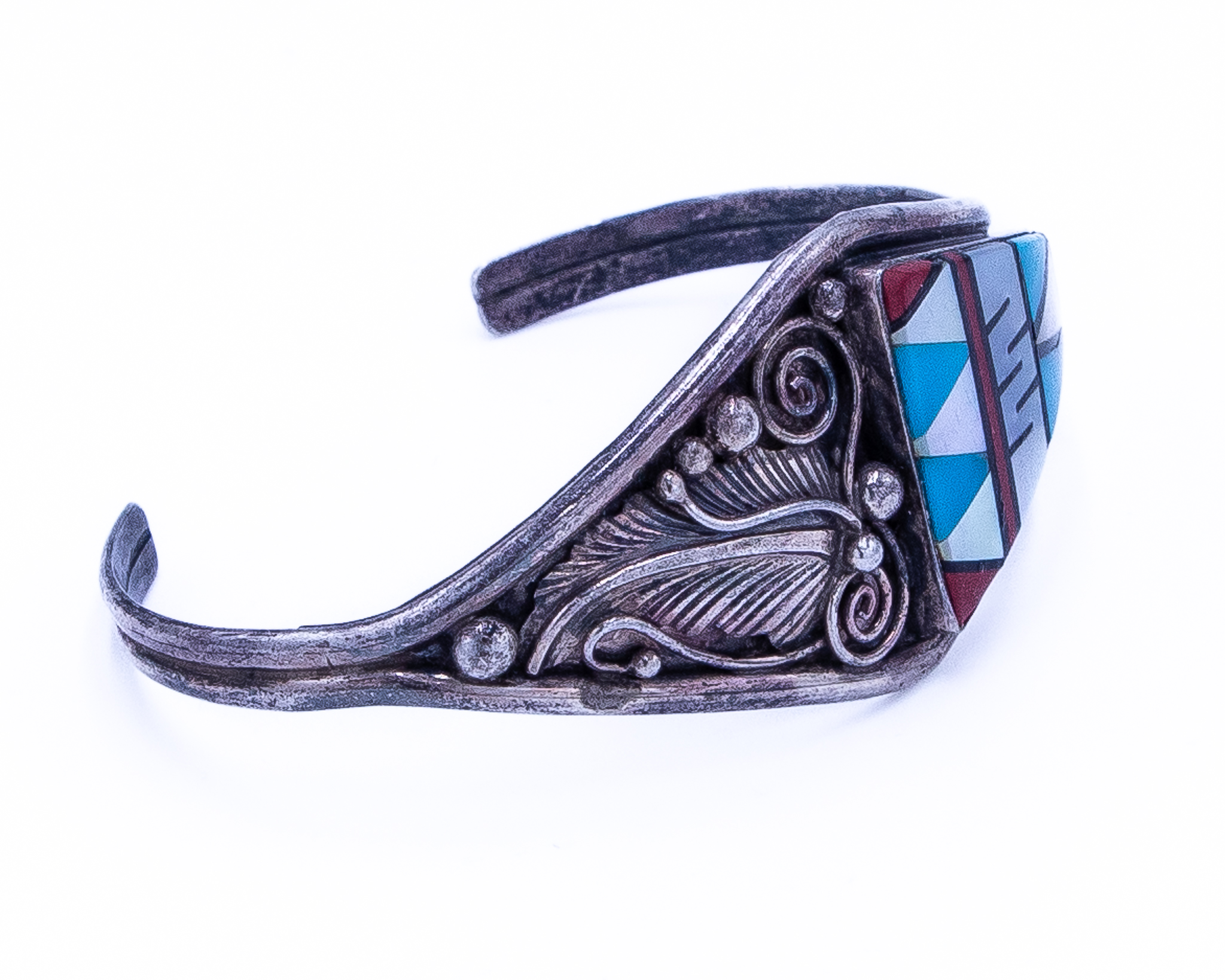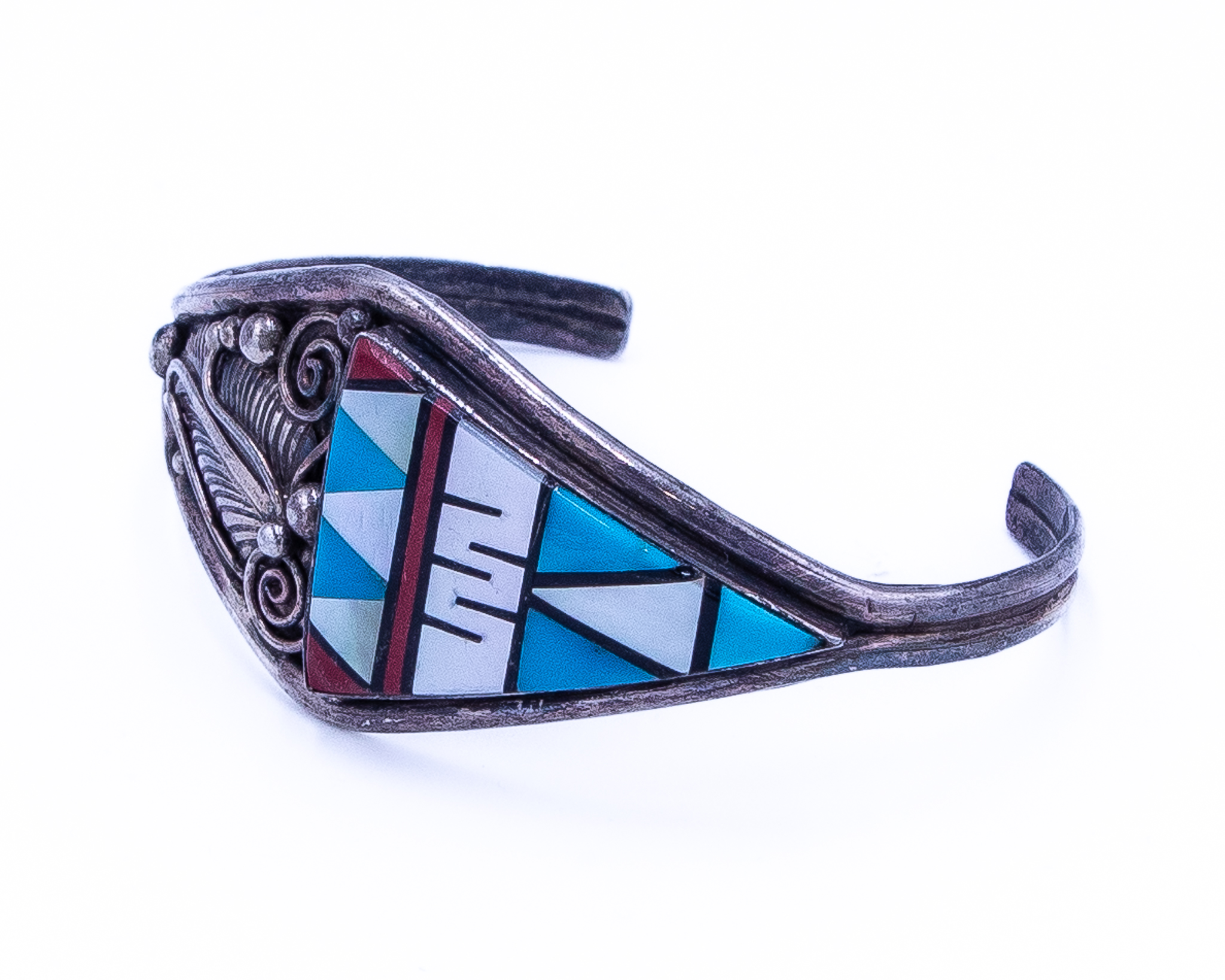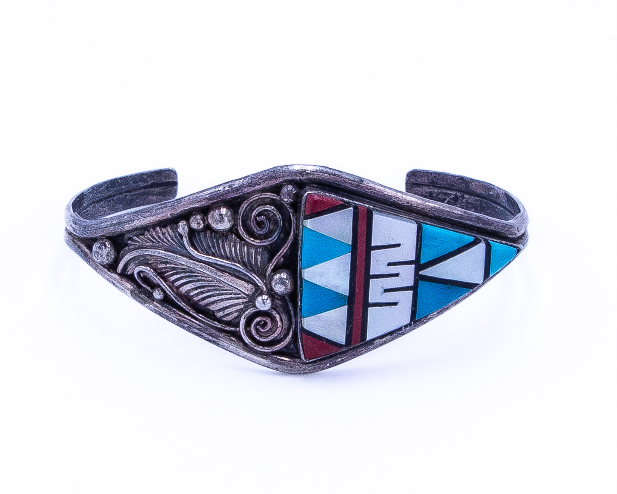 Aubrey Smith Navajo Multi Stone Sterling Cuff Bracelet 20g-Turquoise, Mother of Pearl, Coral, Onyx