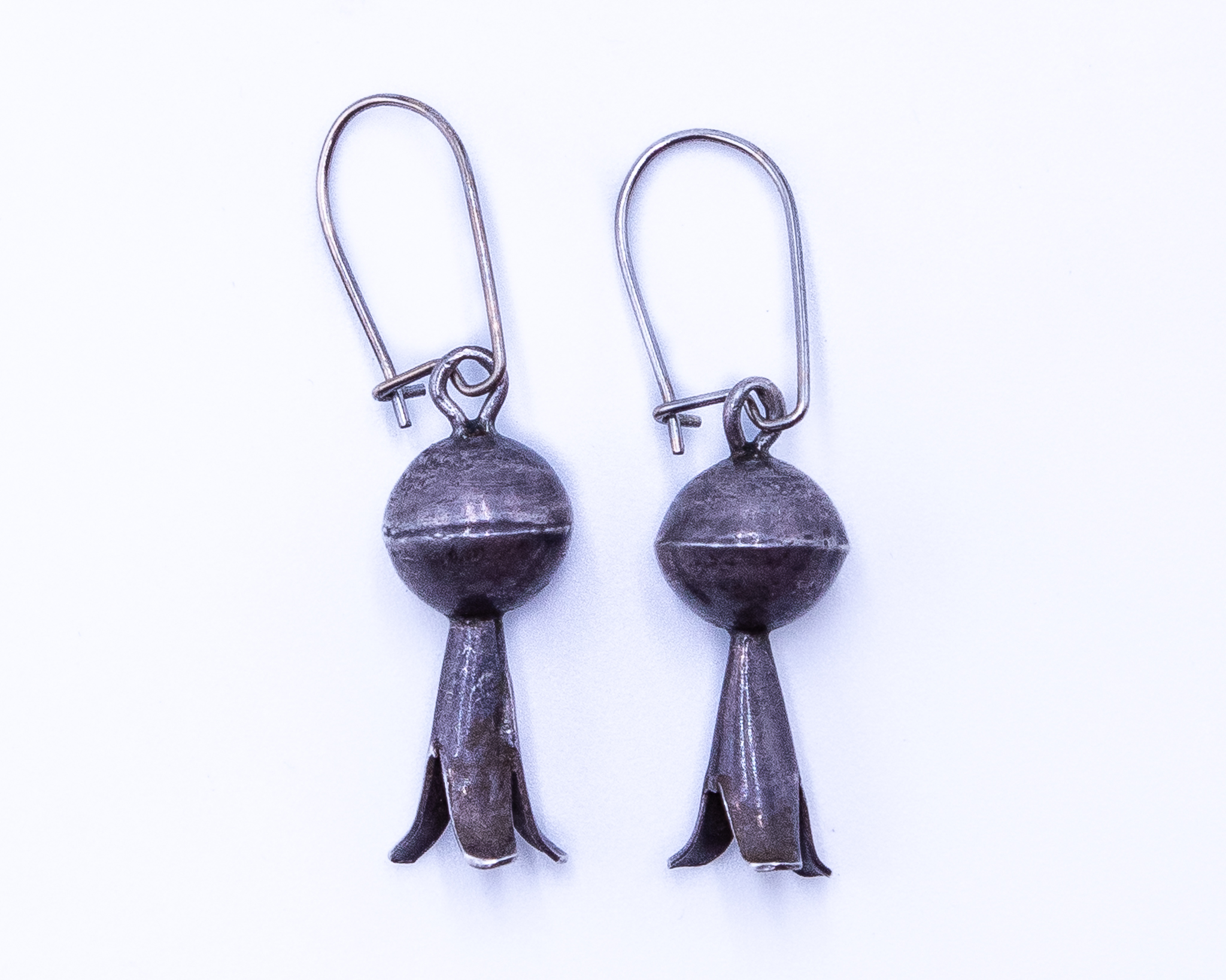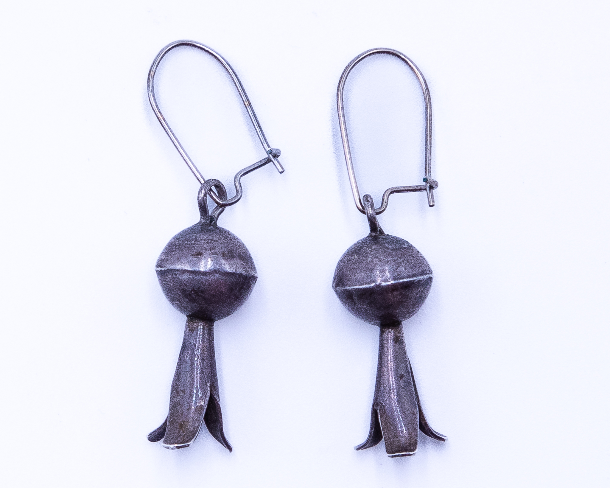 Vintage Navajo Sterling Squash Blossom Kidney Hook Earrings 2.5g