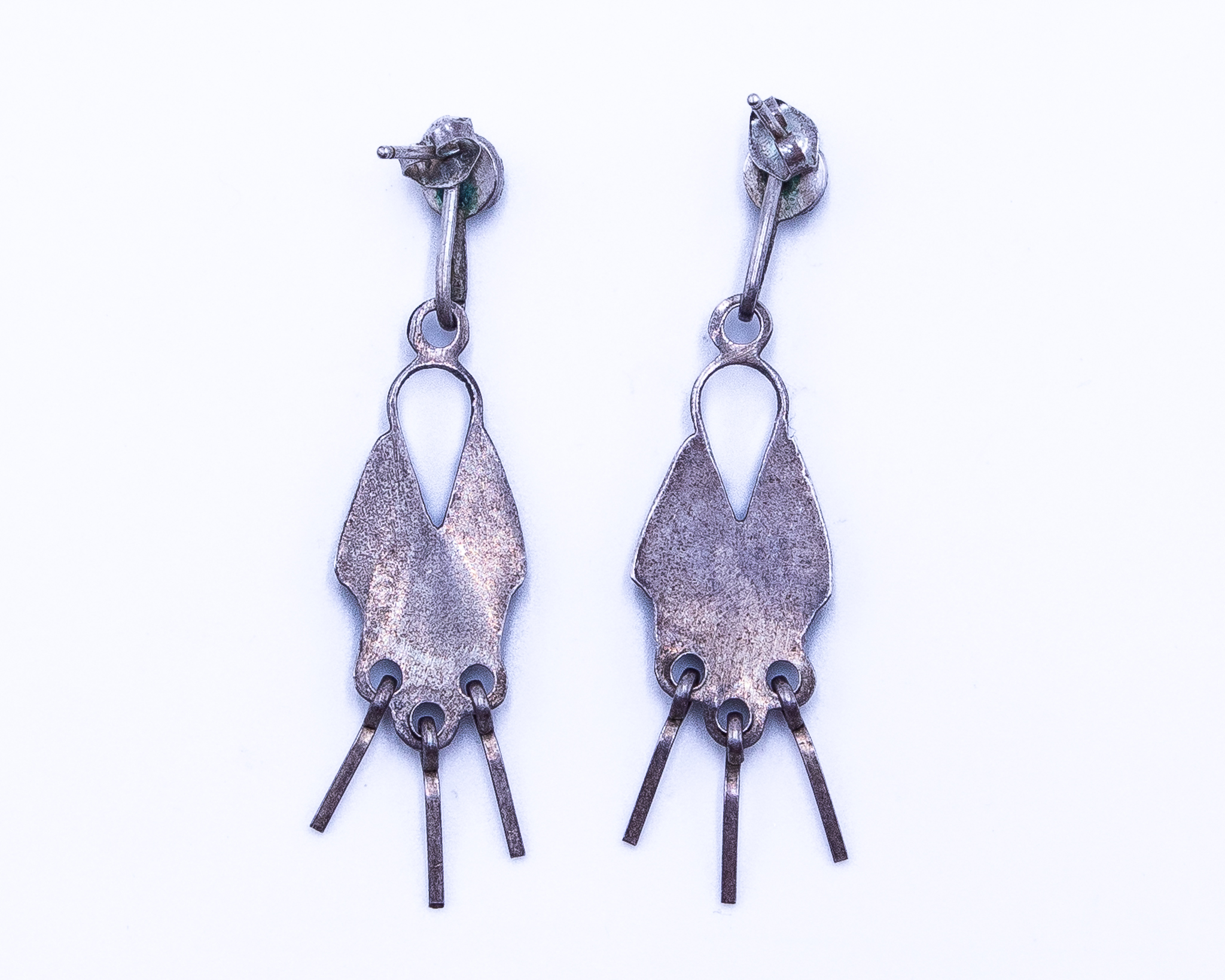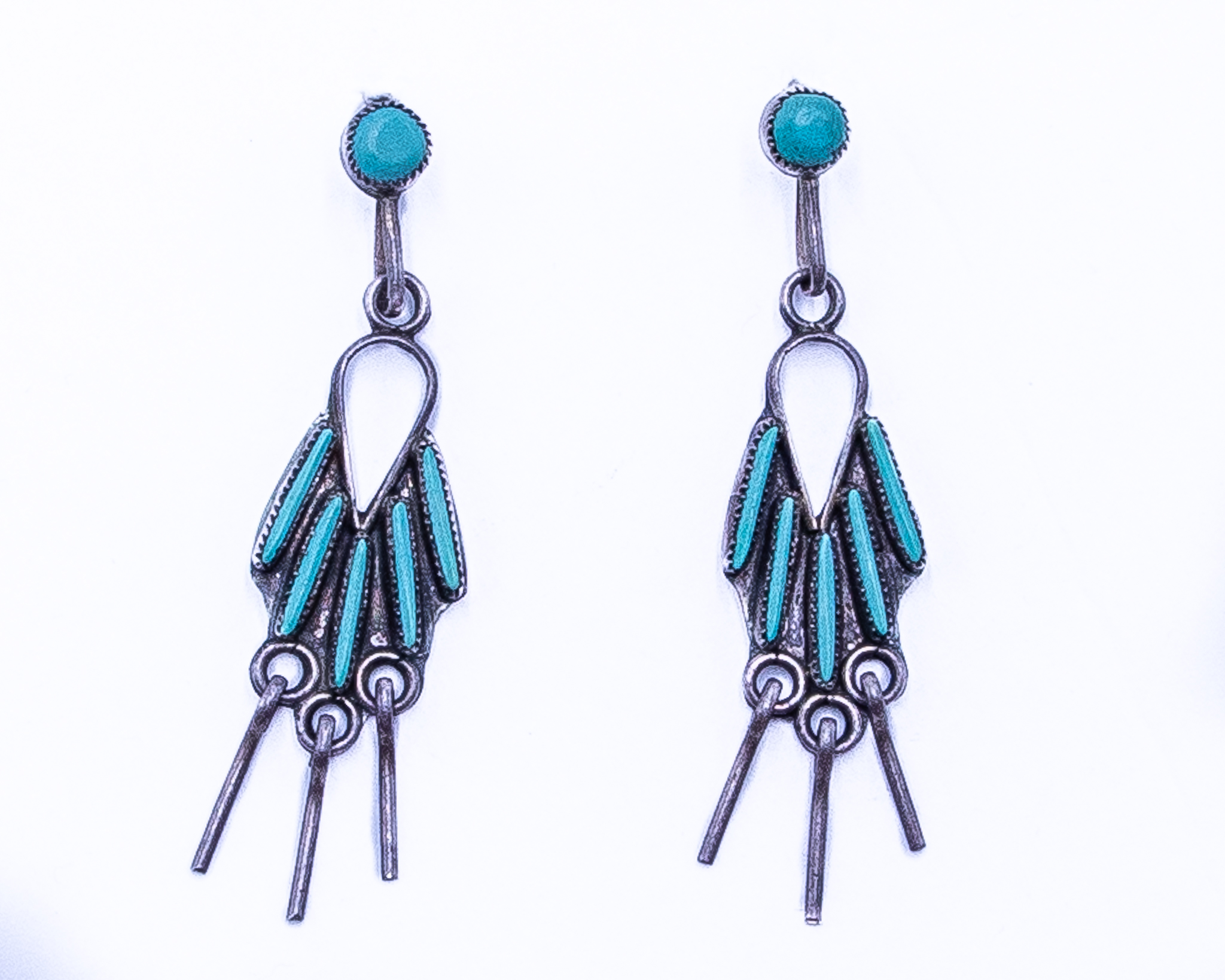 Vintage Zuni Needlepoint Turquoise Sterling Chandelier Dangle Earrings 4.5g