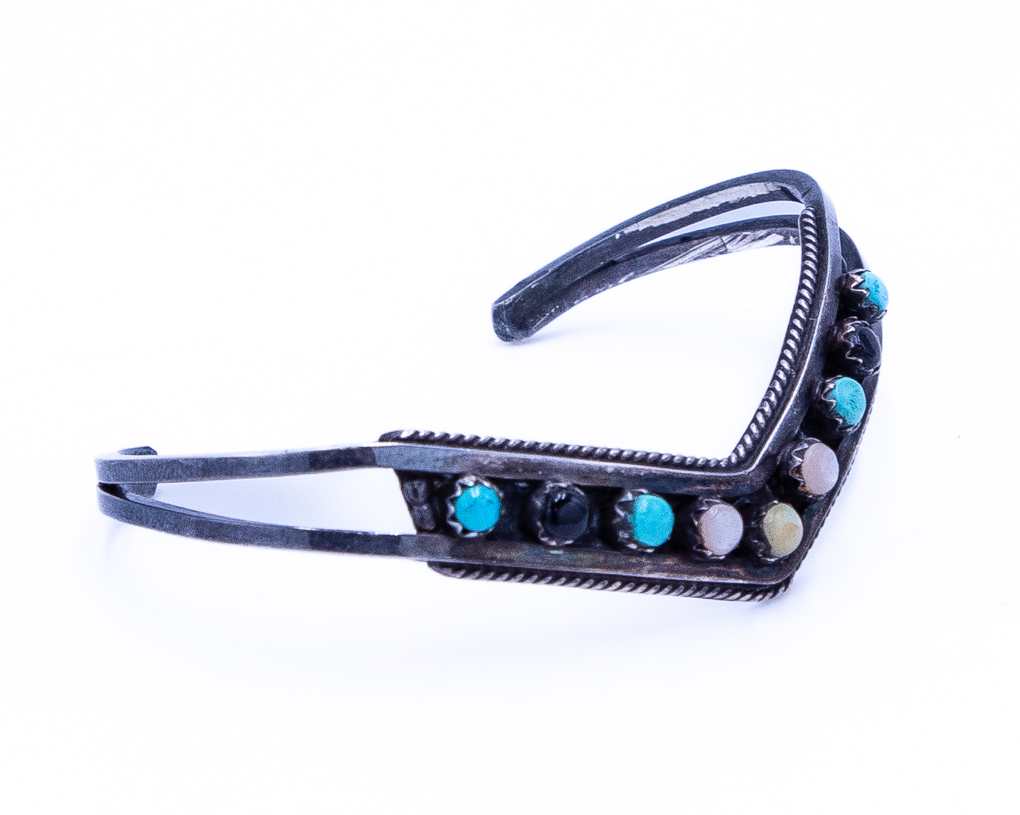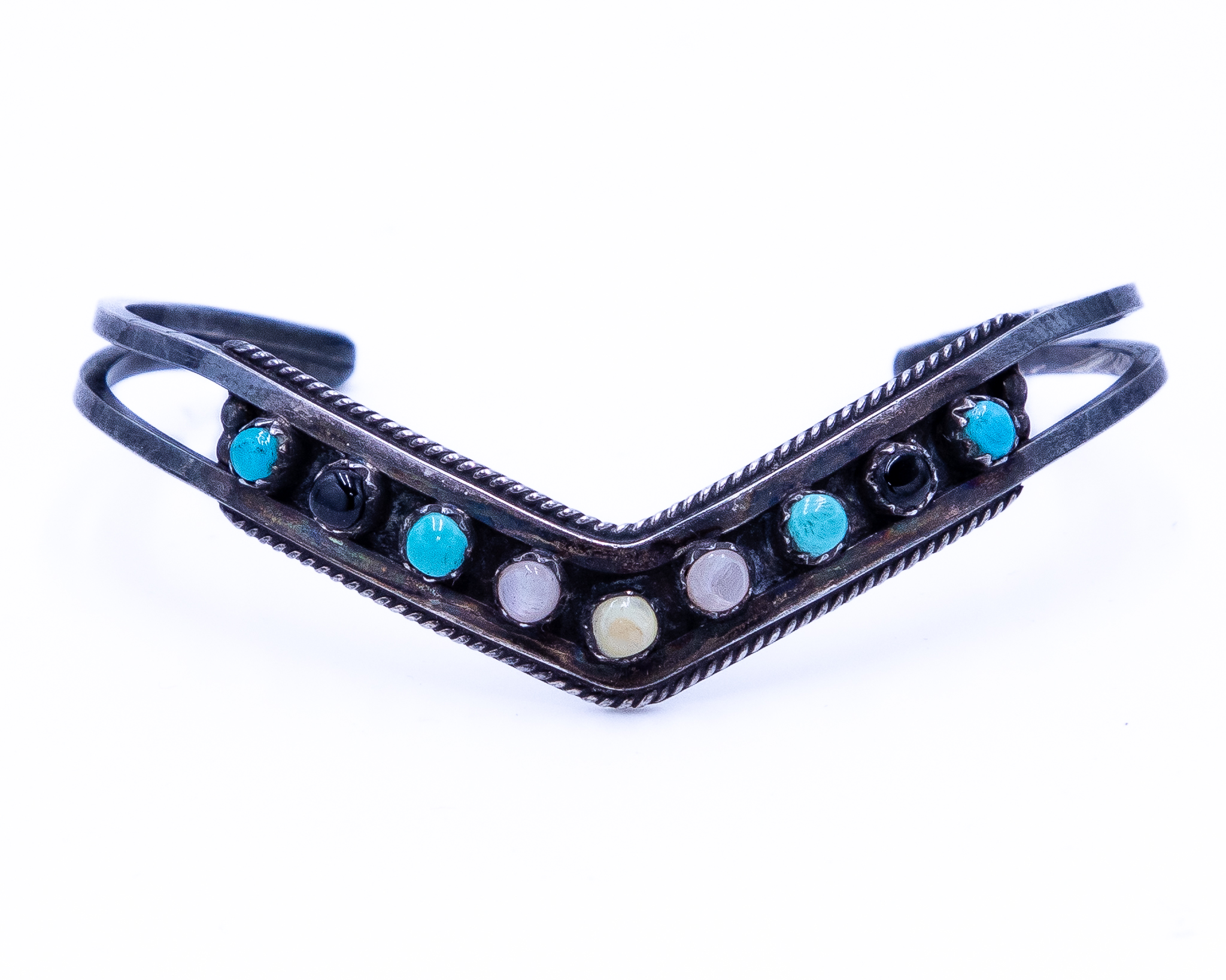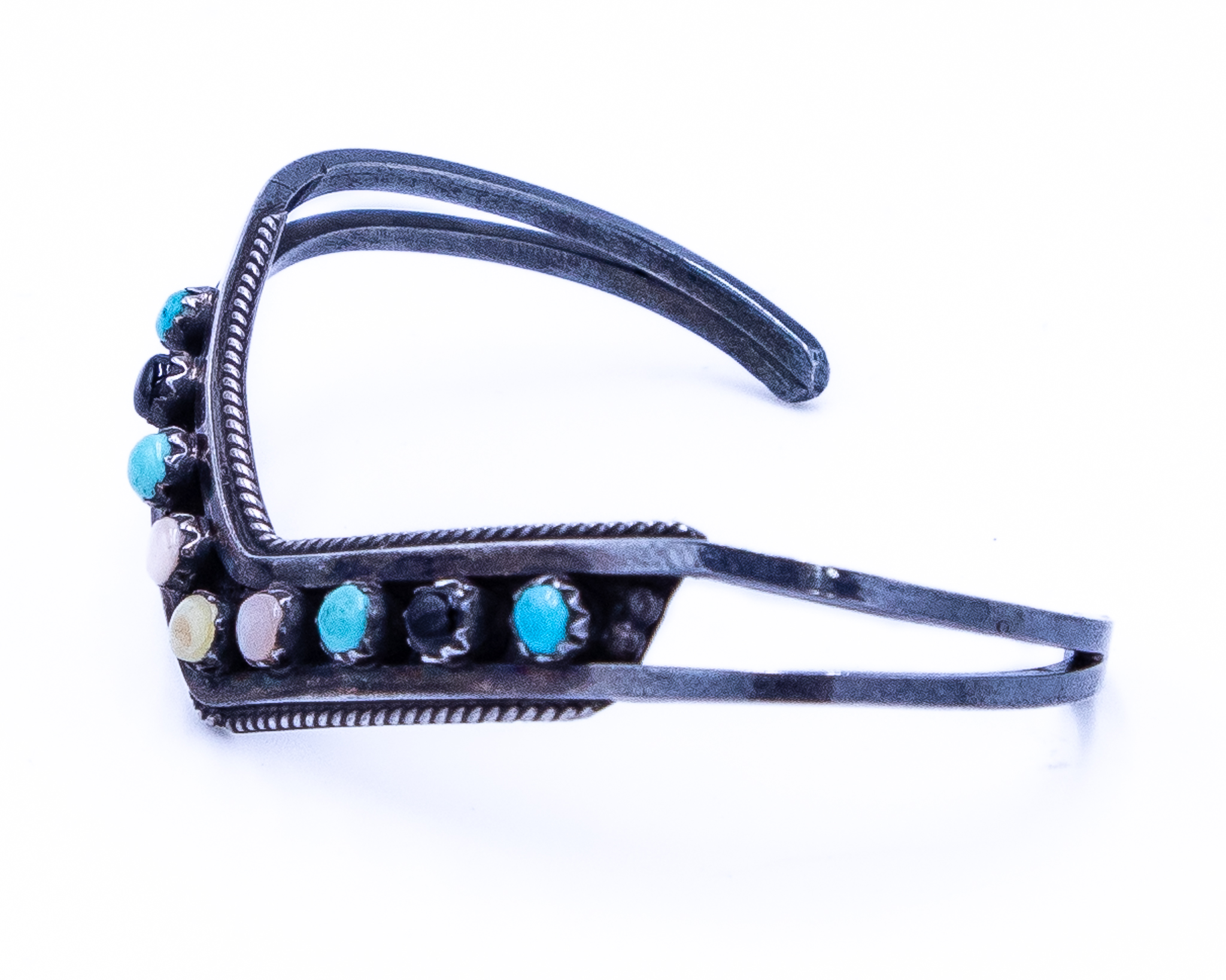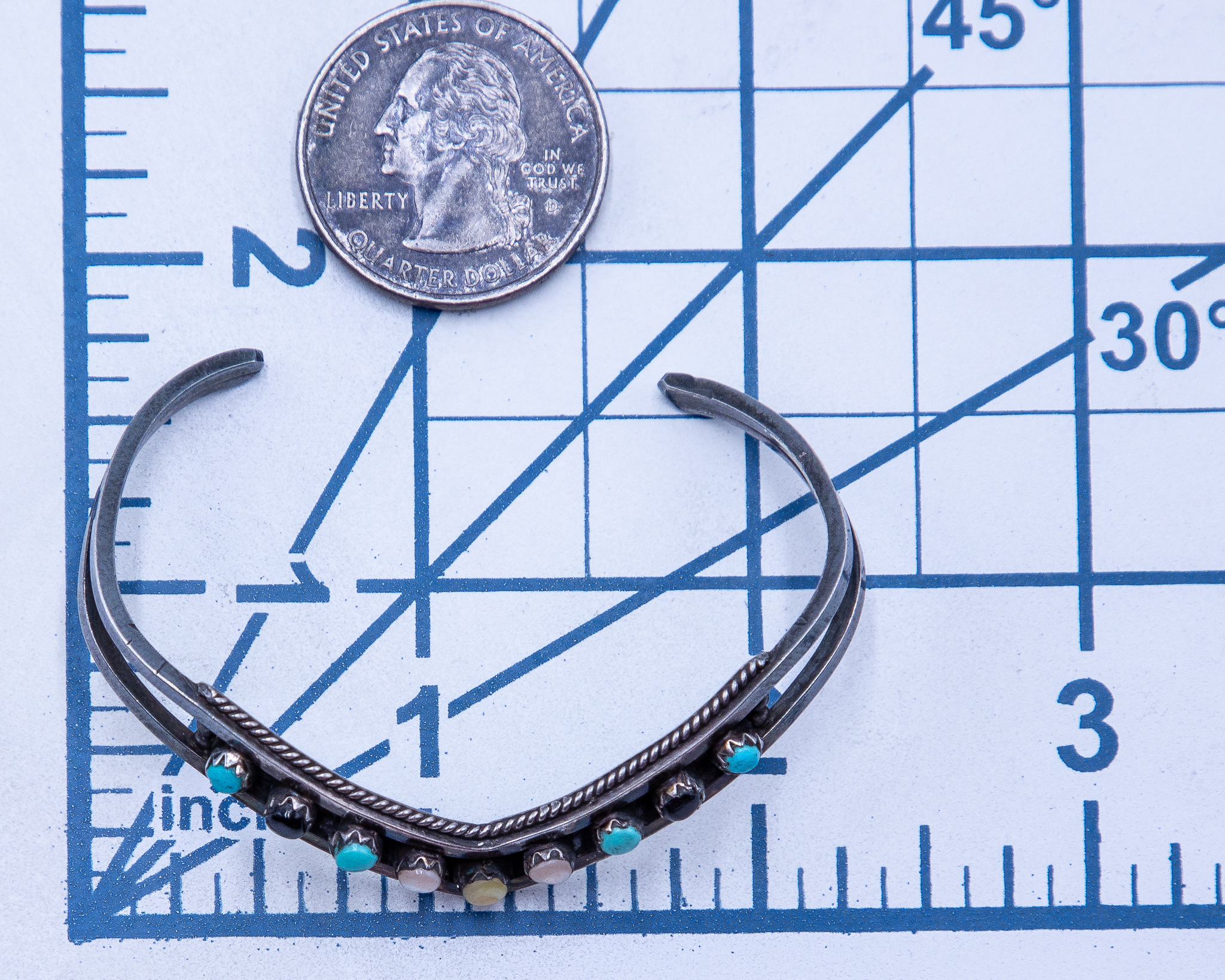 Signed MS Navajo Multi Stone Sterling Cuff Bracelet 10g-Mother of Pearl, Turquoise, Onyx