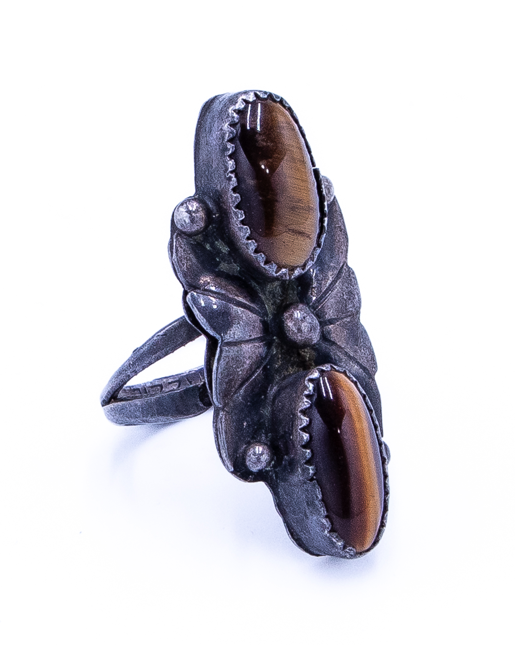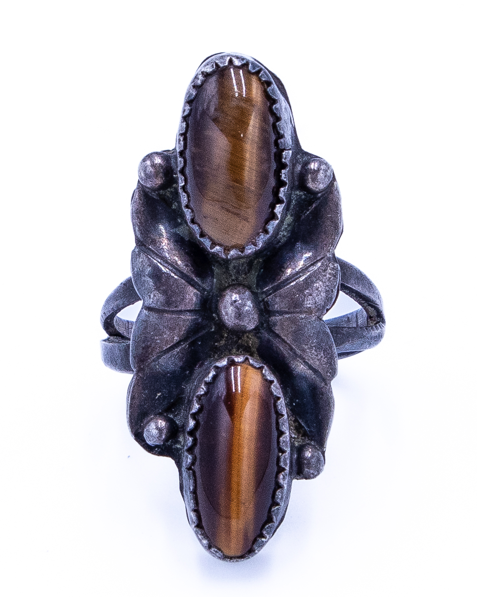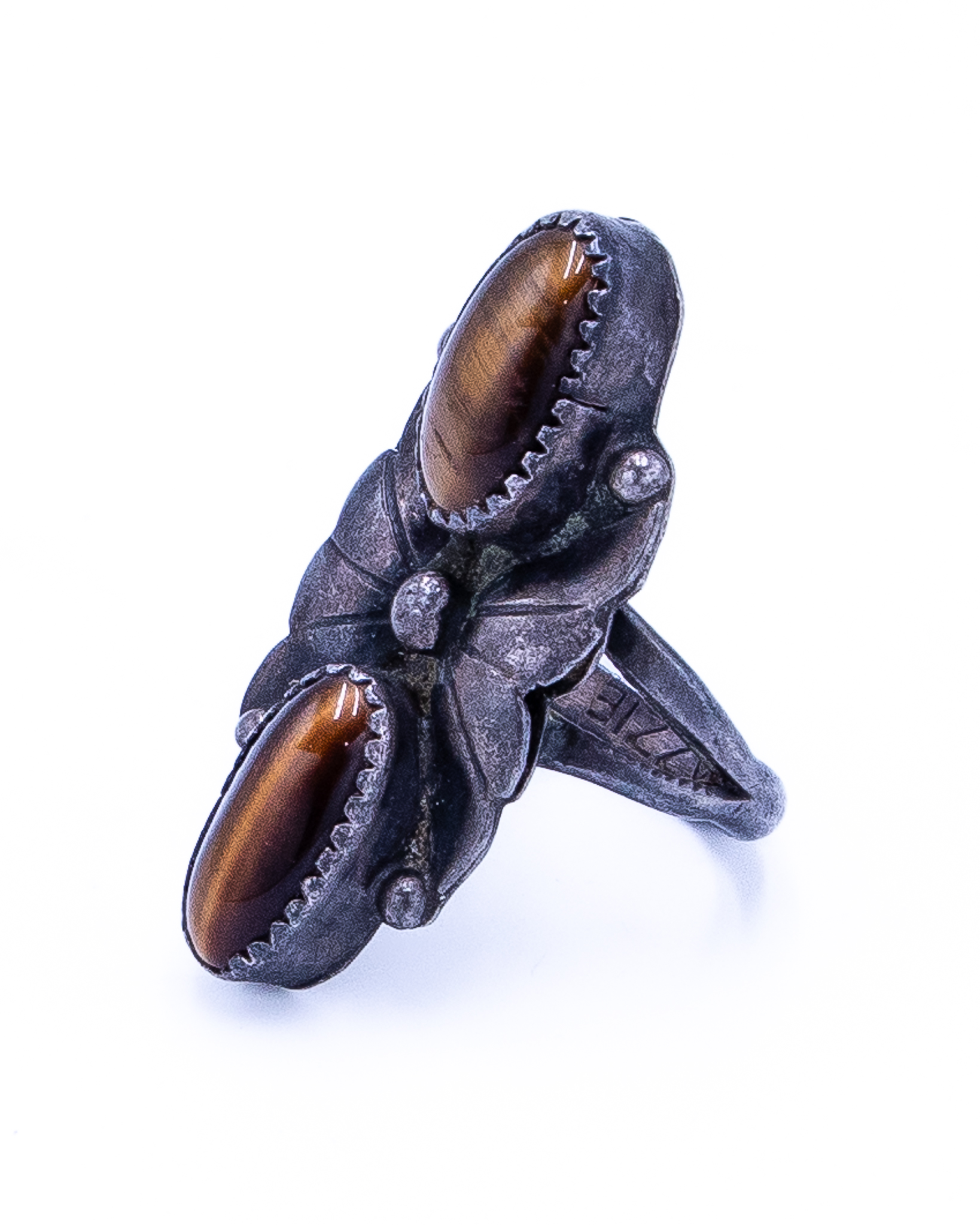 Joe Tom Navajo Tigers Eye Flower Ring Sz 7.25, 8g