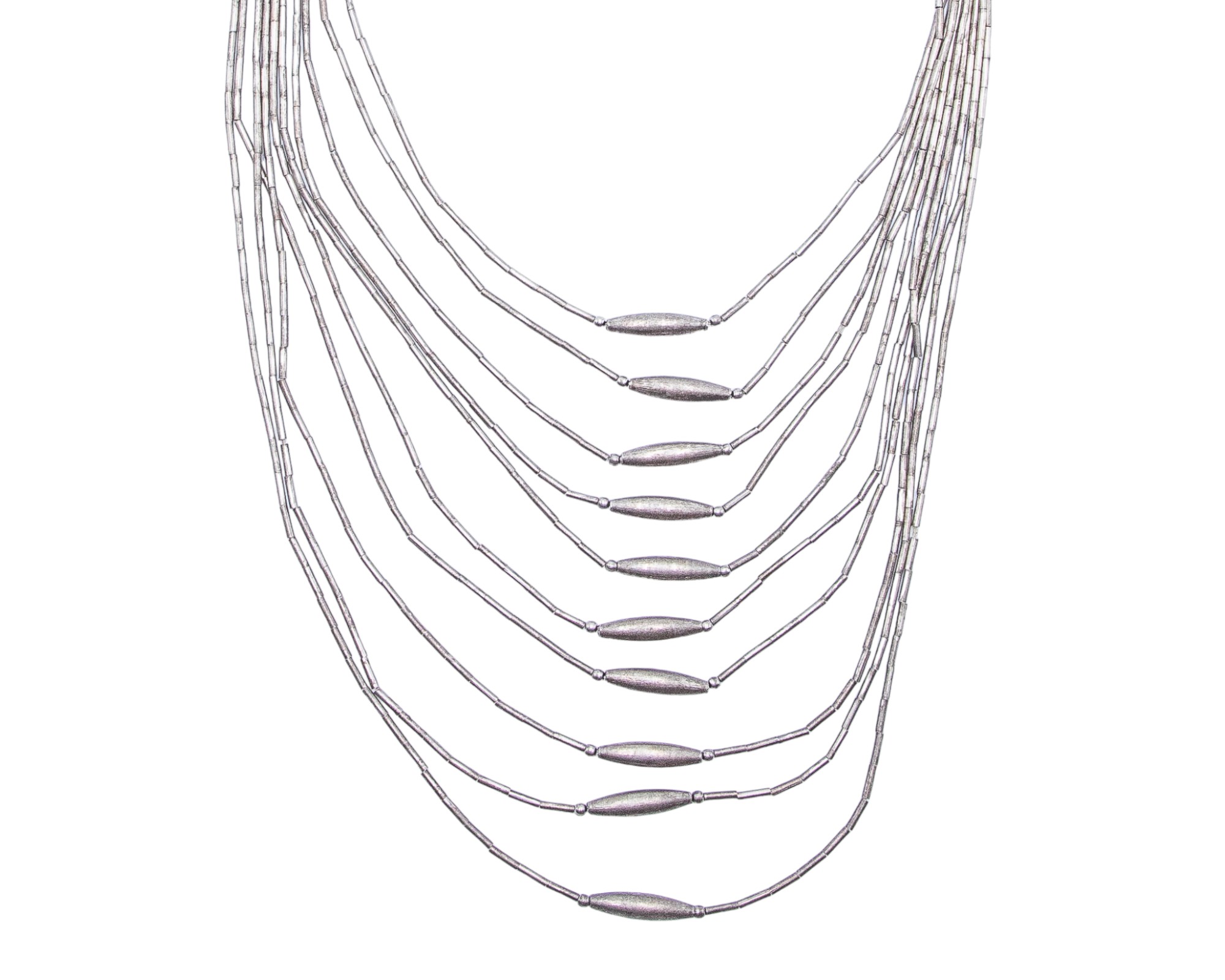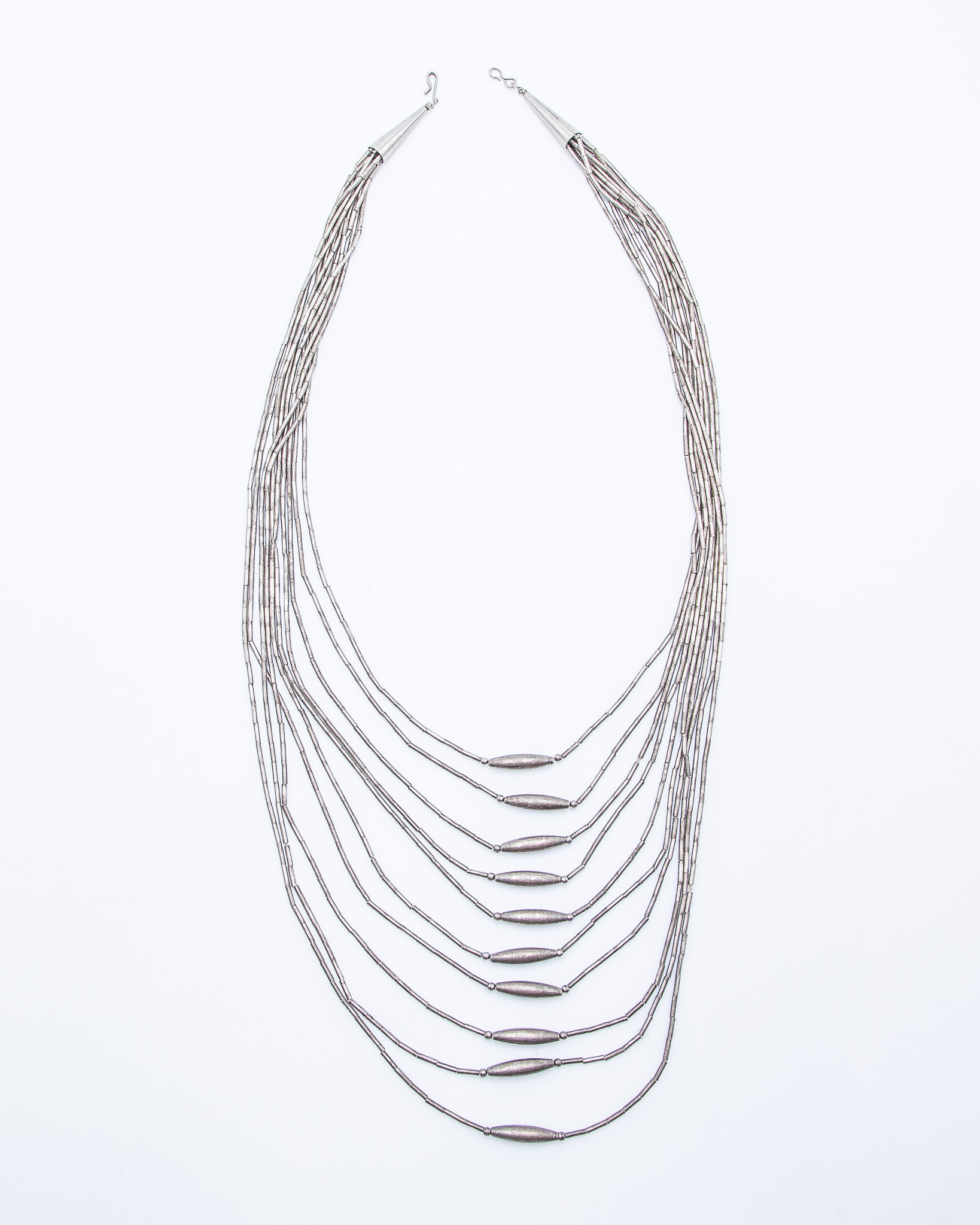 Vintage Navajo Heavy 10-Strand Sterling Liquid Silver Cocoon Necklace 51.5g