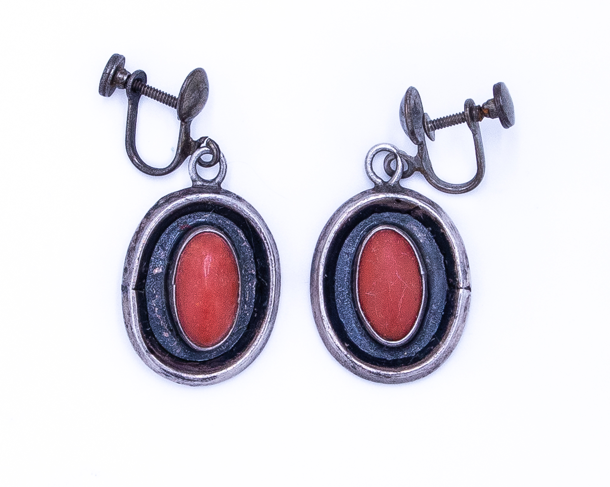 Vintage Navajo Coral Sterling Shadow Box Earrings 13g