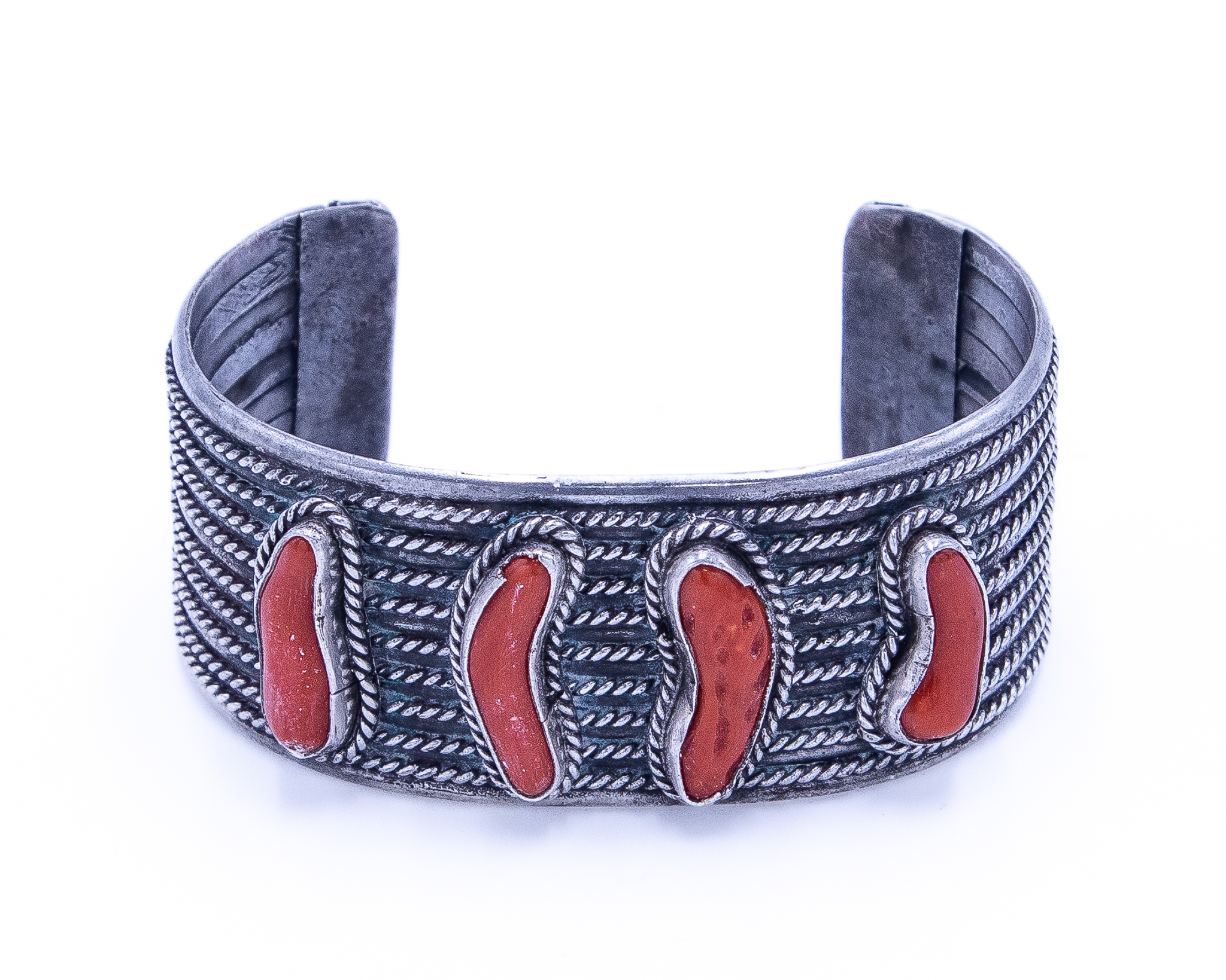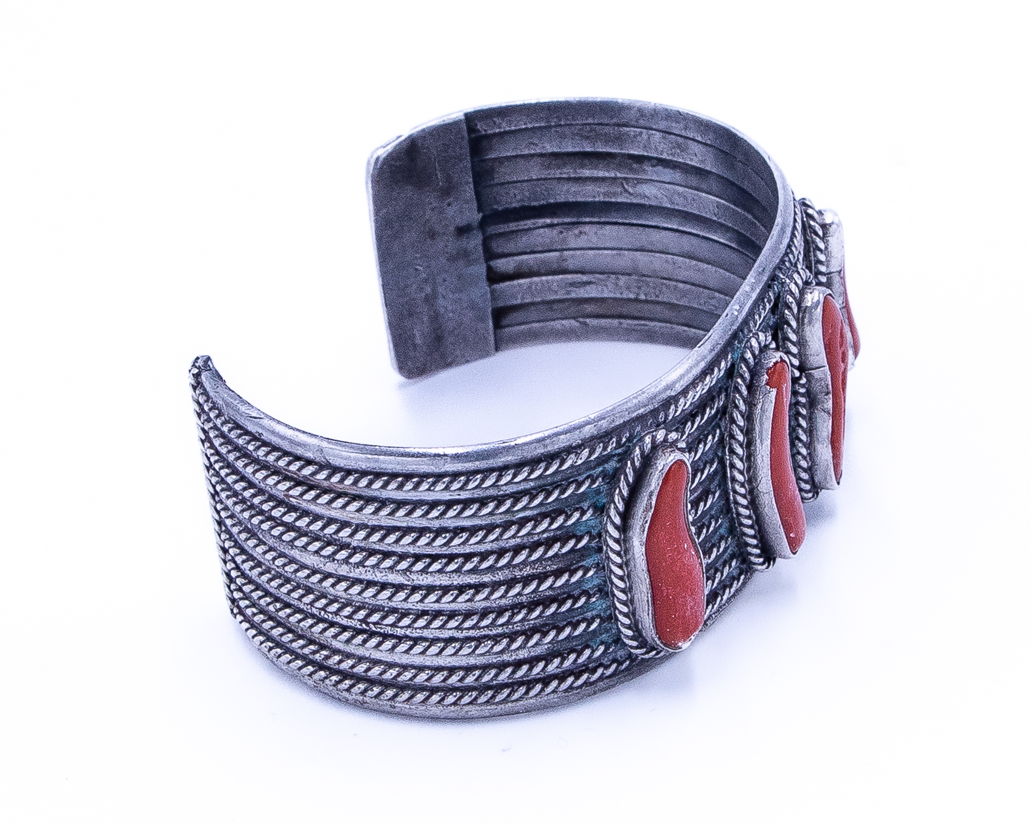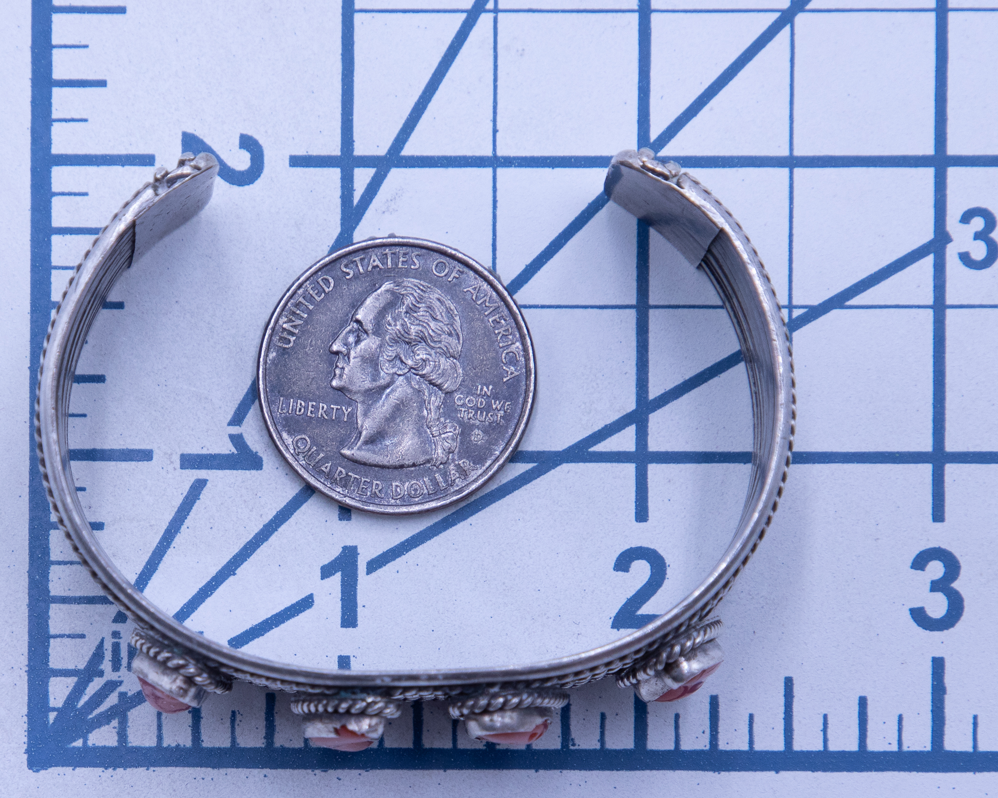 Vintage Navajo Coral Sterling Cuff Bracelet 59g
