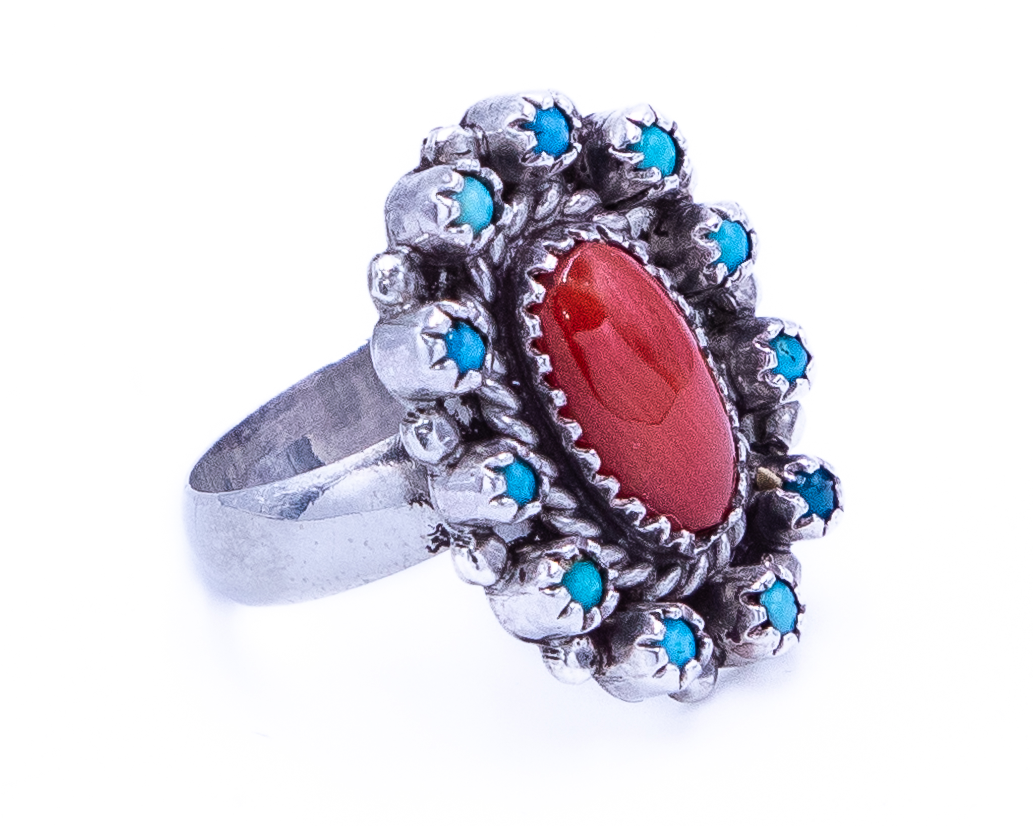 Navajo Coral Turquoise Orit Ring Sz 6.25, 5.5g -Cleaned