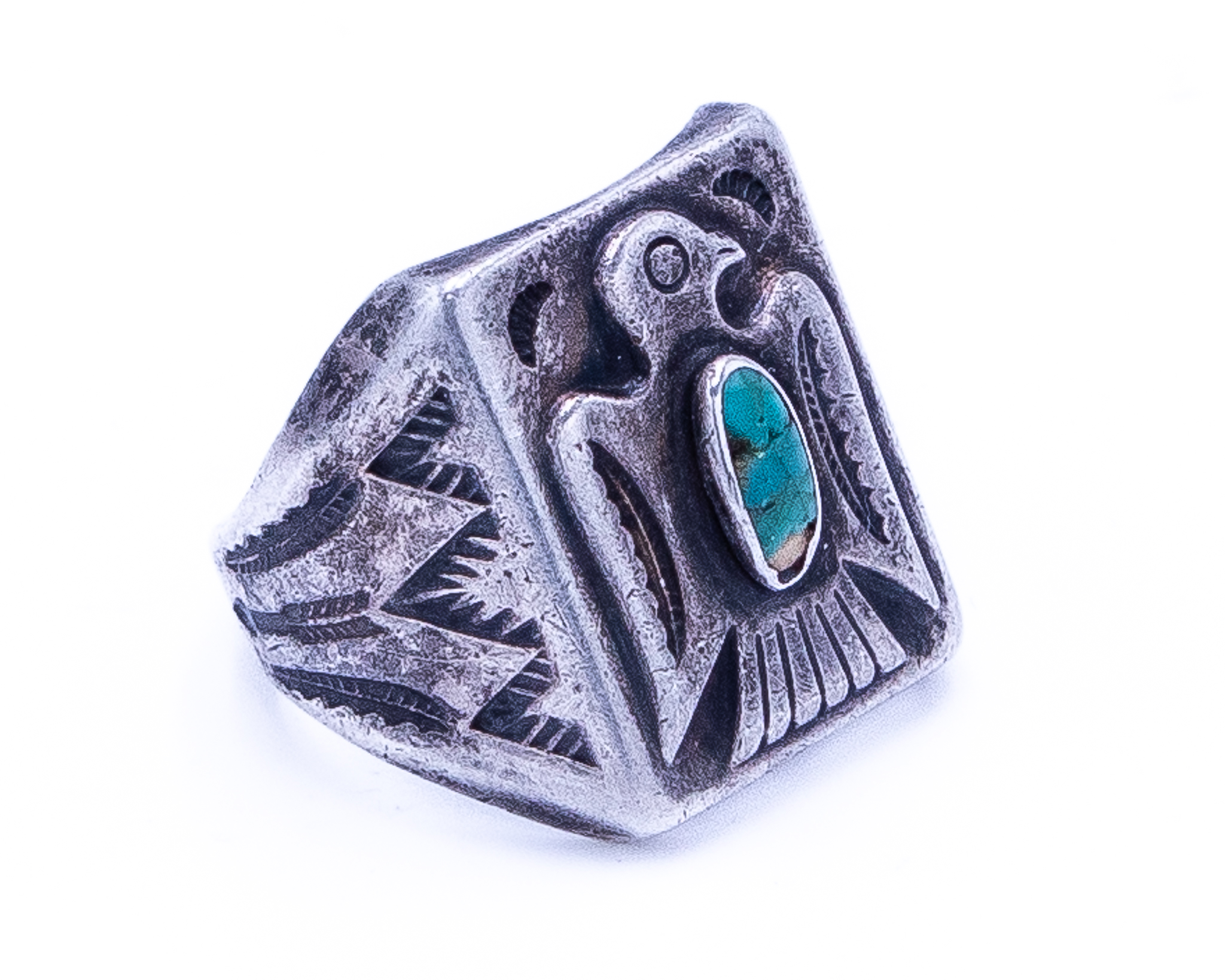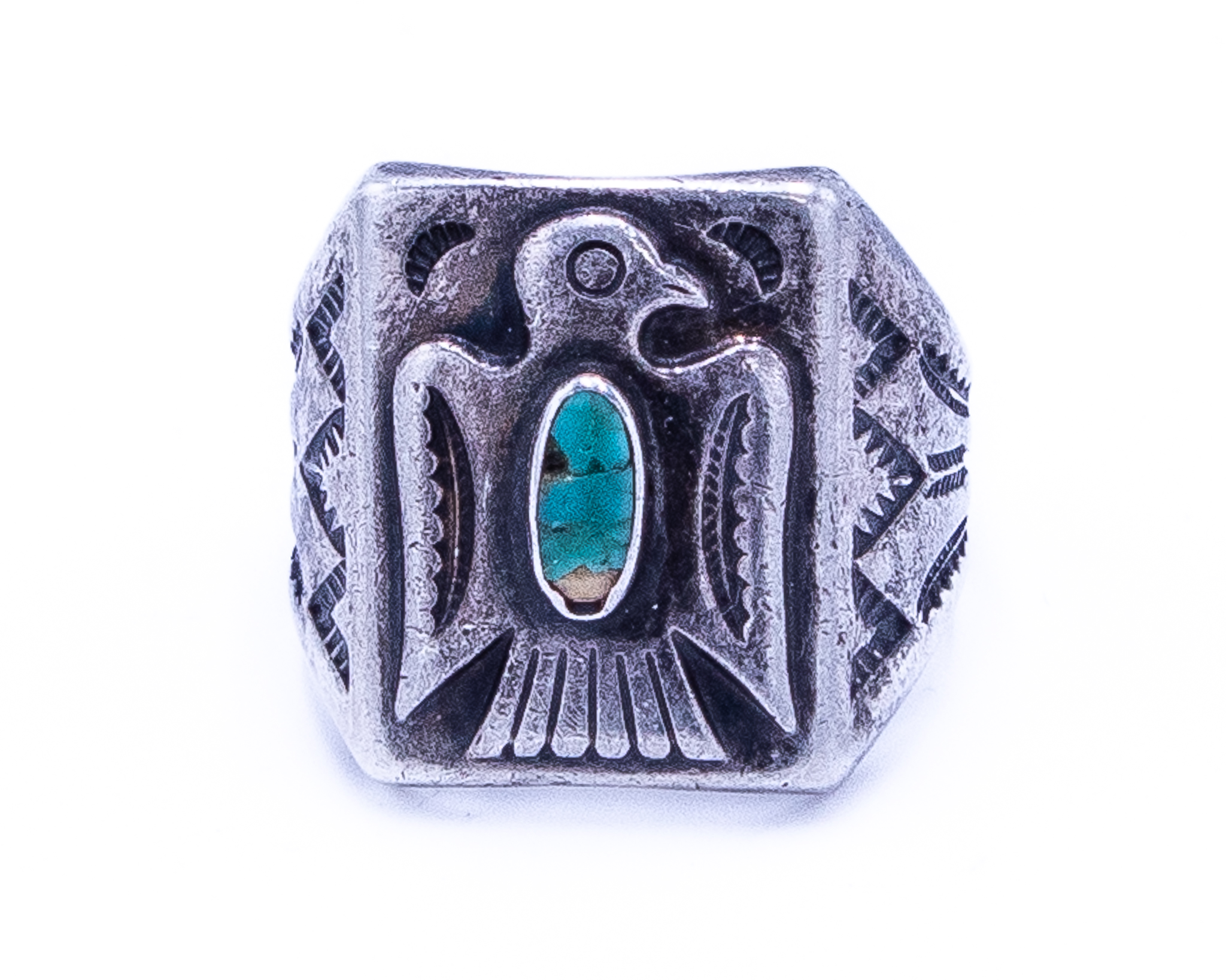 Bell Trading Post Thunderbird Turquoise Ring Sz 8.75, 11g