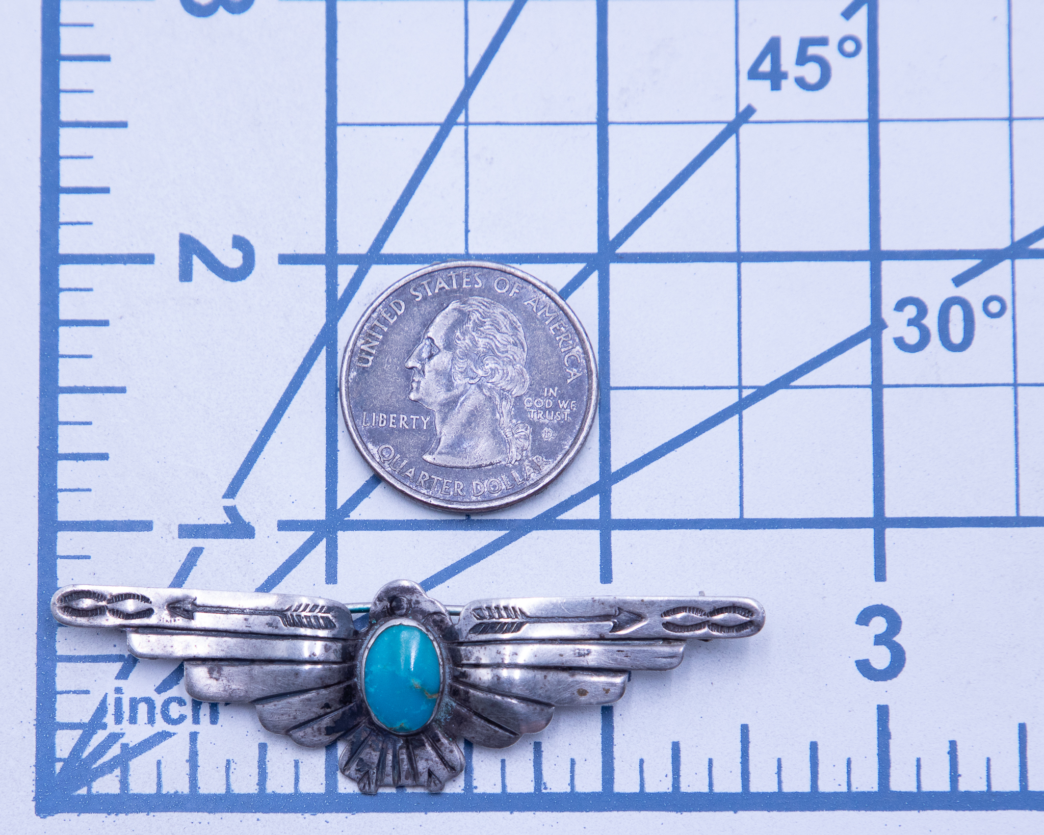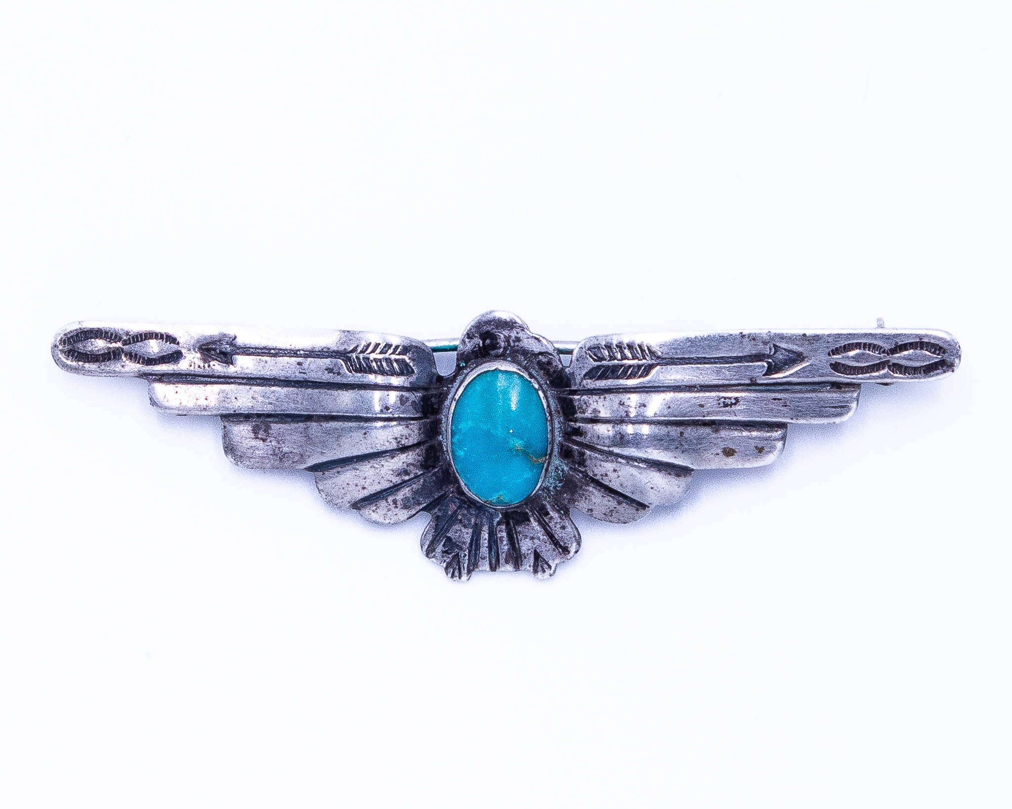 Fred Harvey Era Navajo Turquoise Sterling Thunderbird Brooch