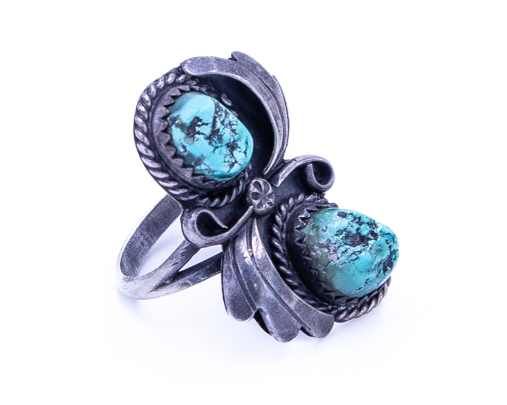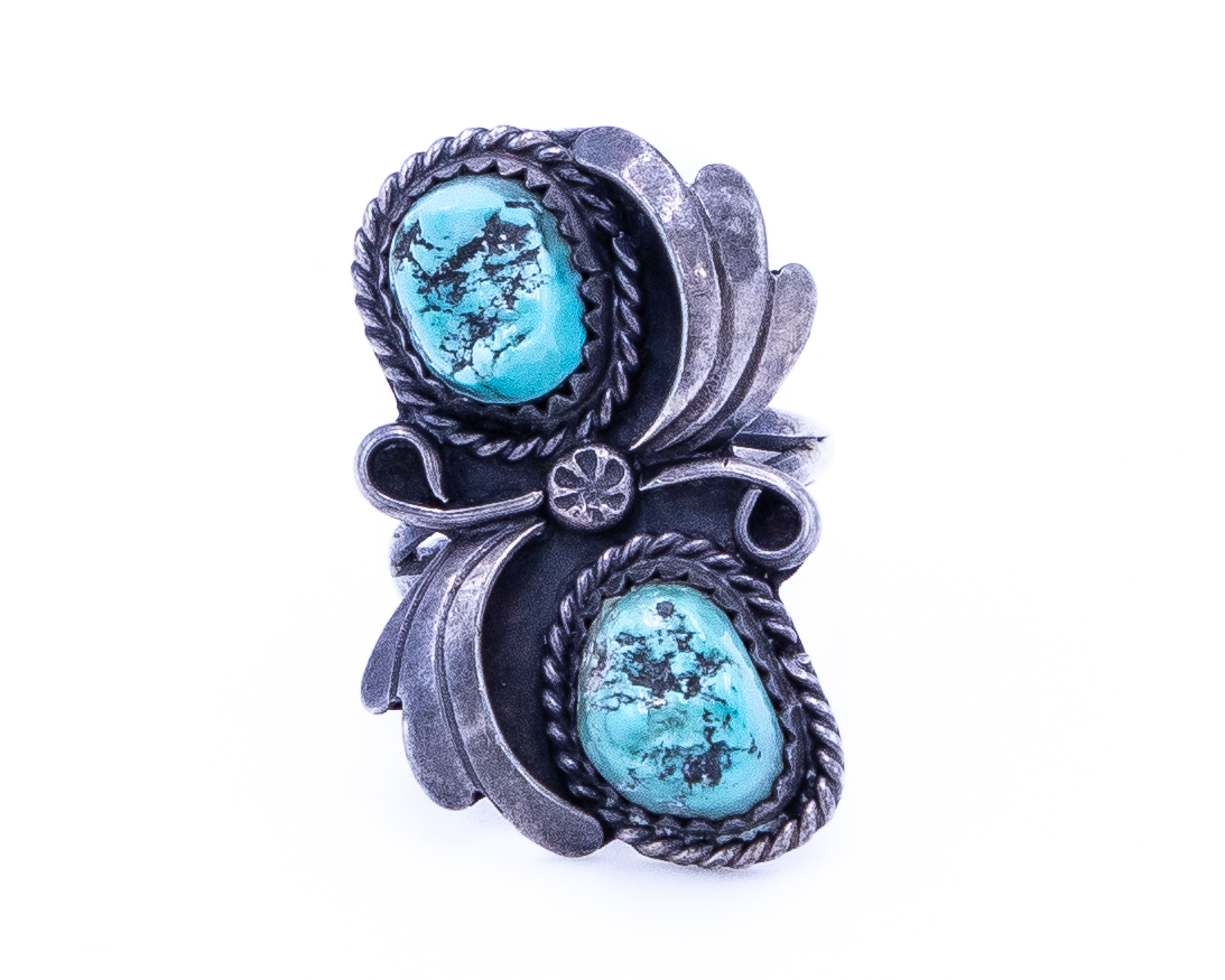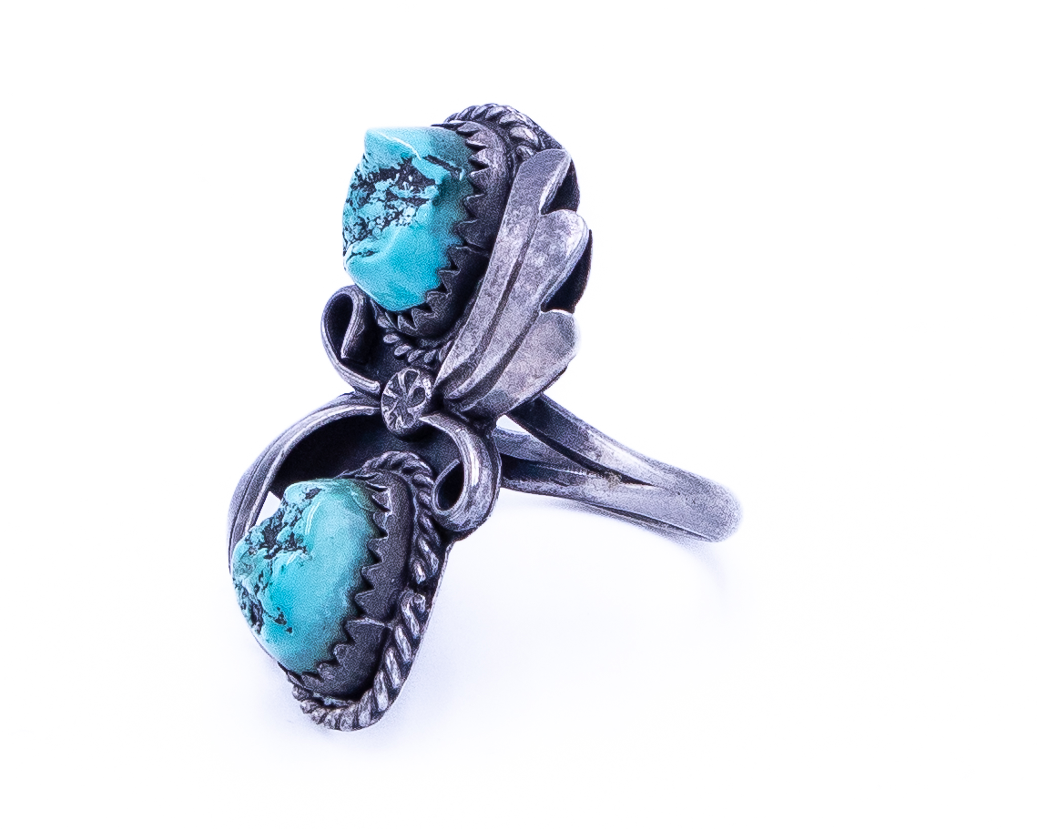 Vintage Navajo Chunk Turquoise Sterling Ring Sz 4.75, 6g