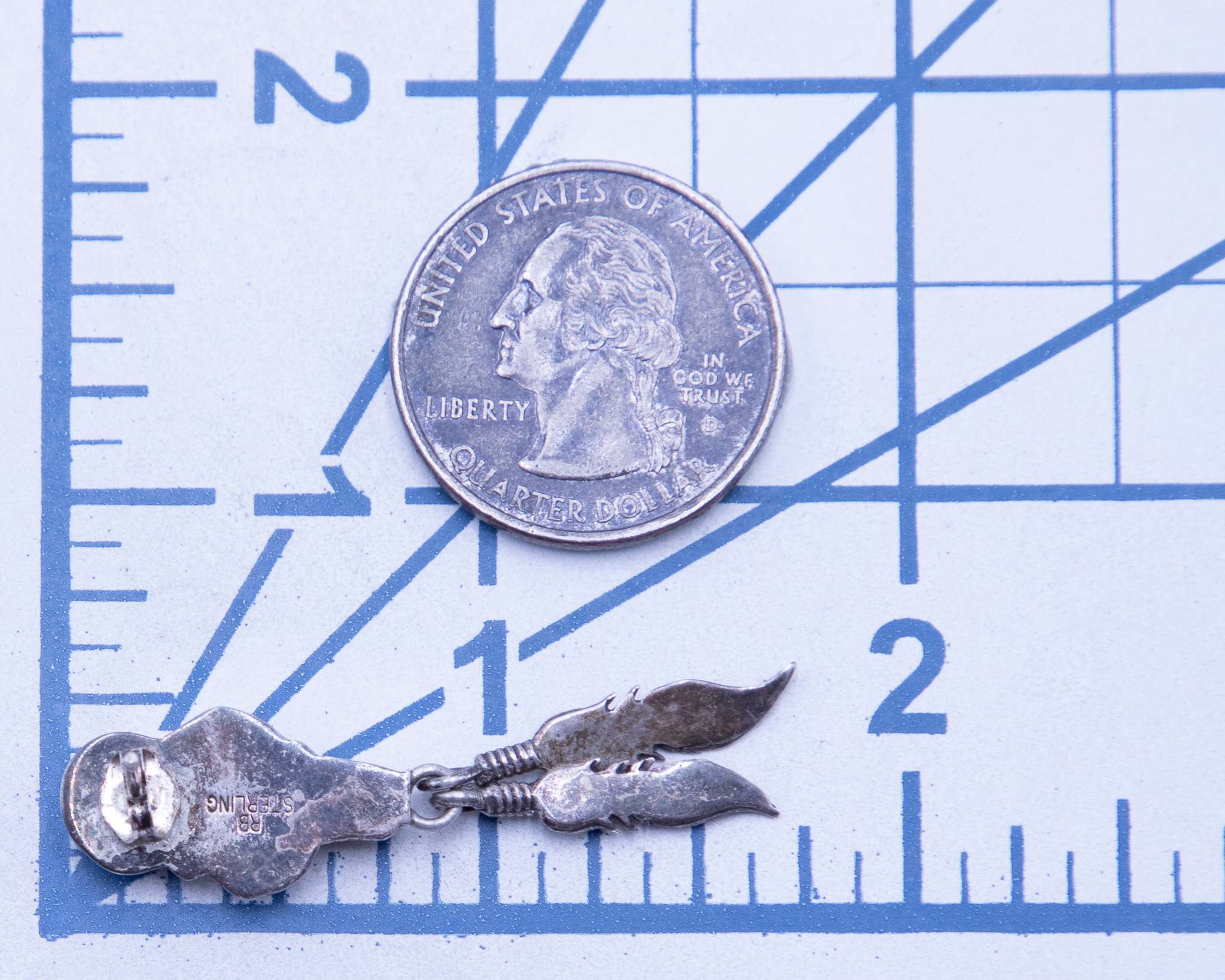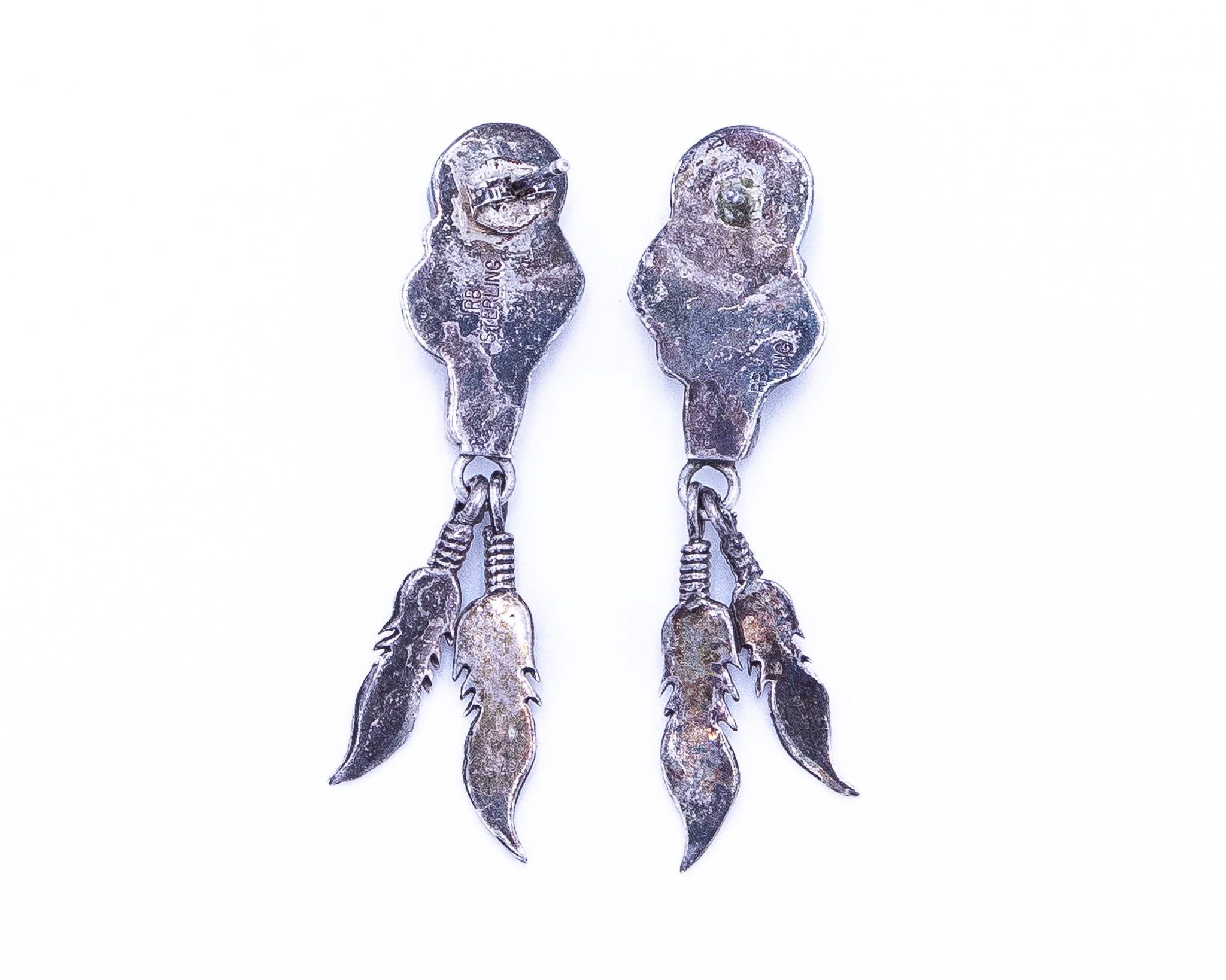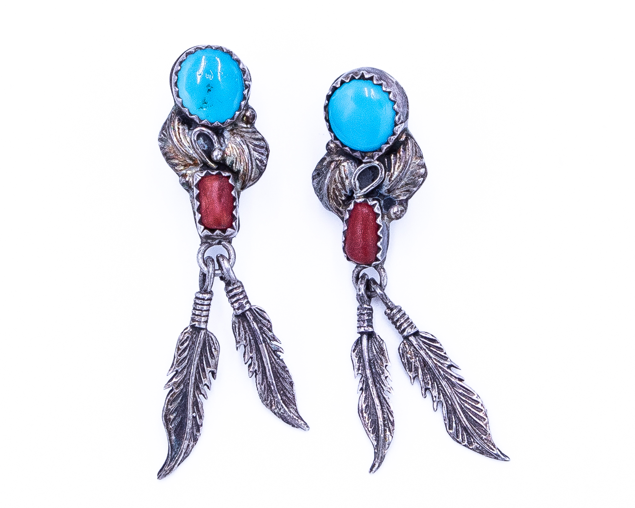 Richard Begay Turquoise Coral Sterling Feather Dangle Earrings 6g
