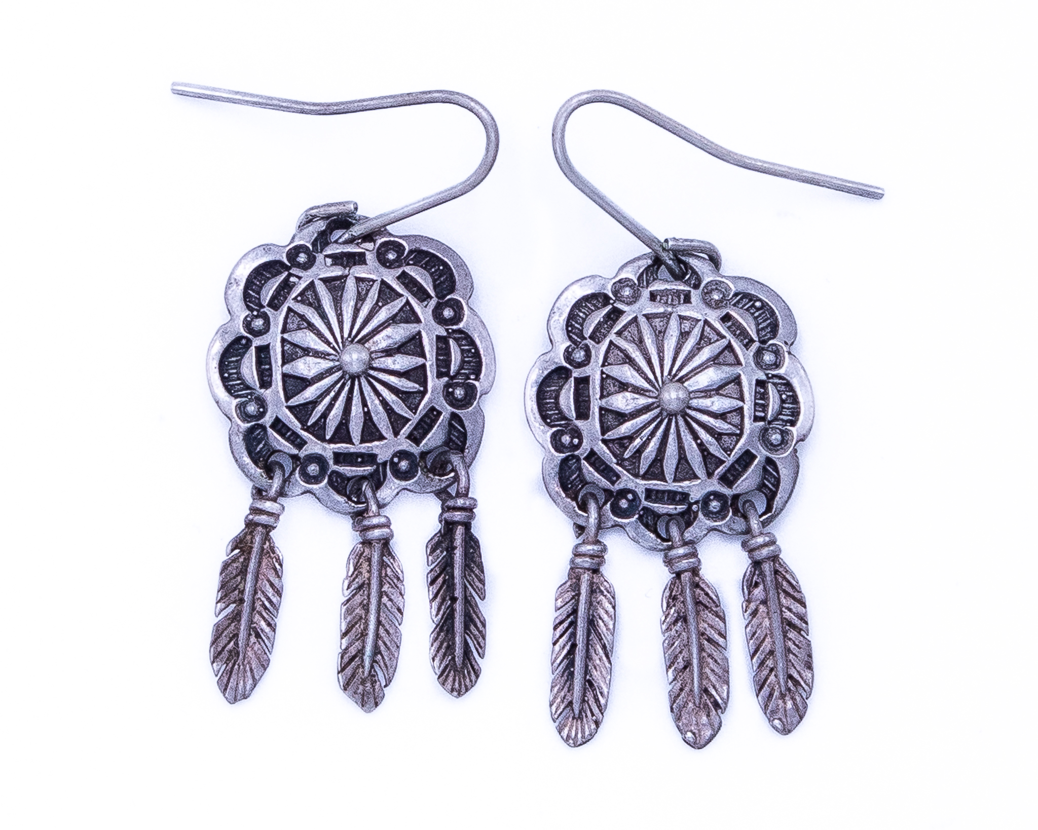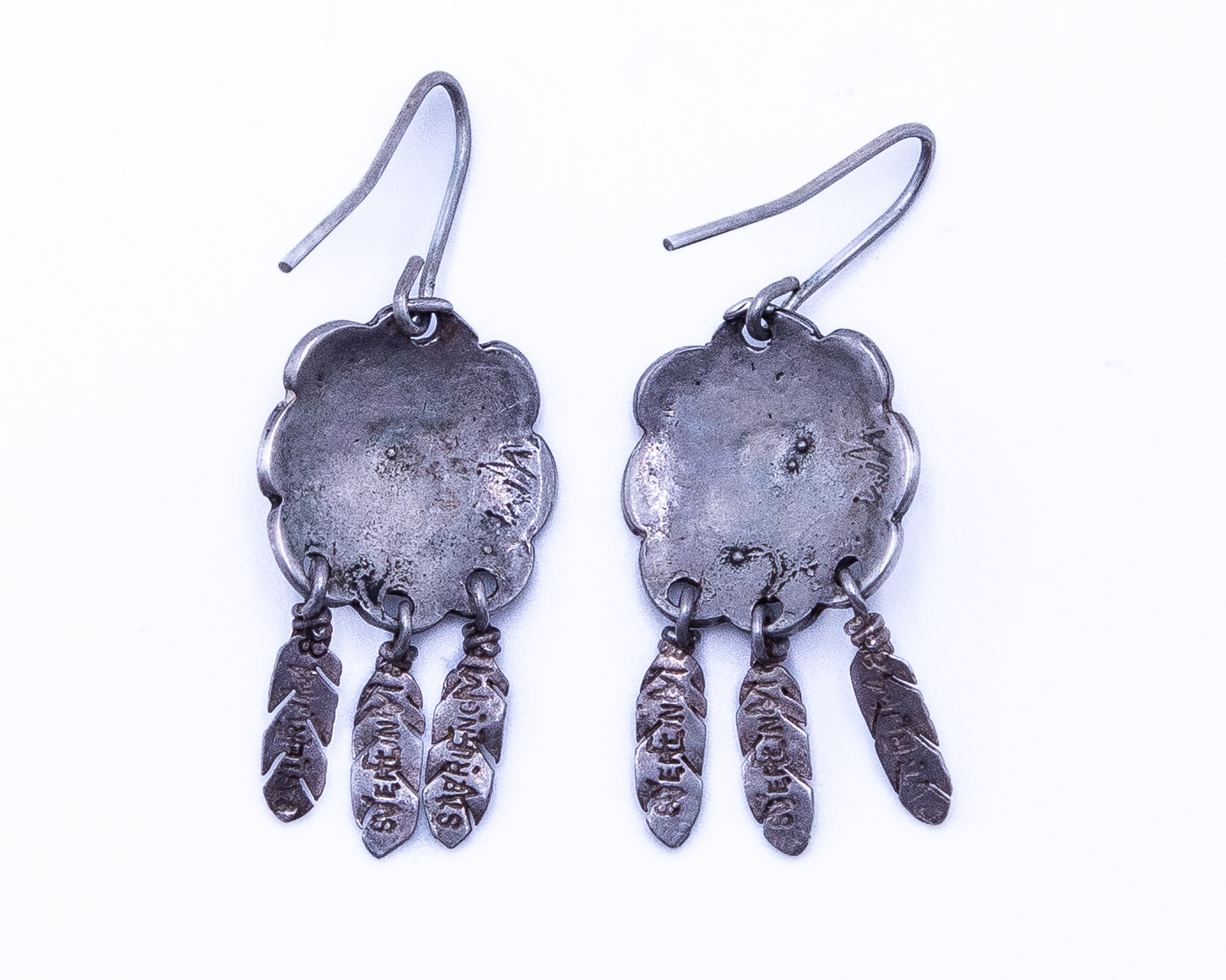 Vintage Native American Sterling Feather Dangle Earrings 4.5g
