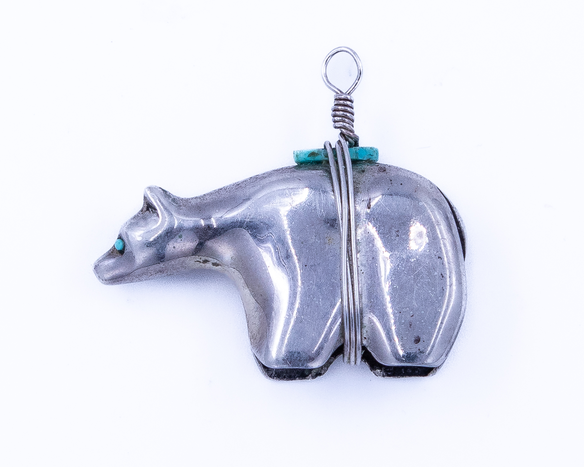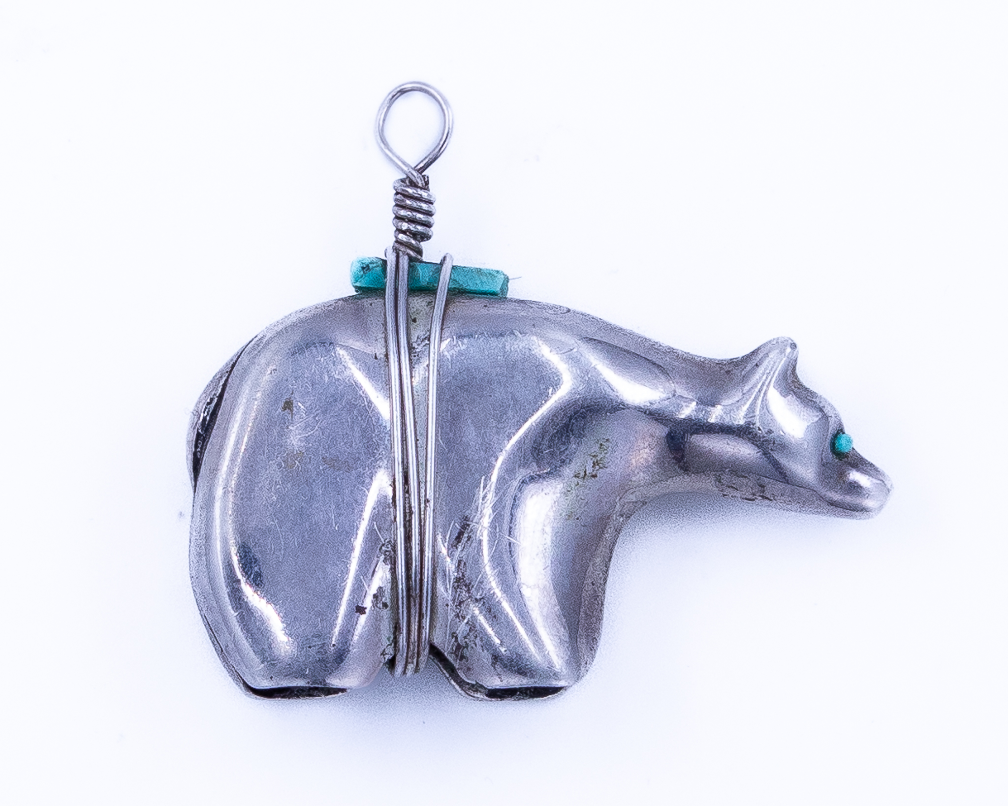 Vintage Navajo Turquoise Sterling Bear Fetish Pendant 28g
