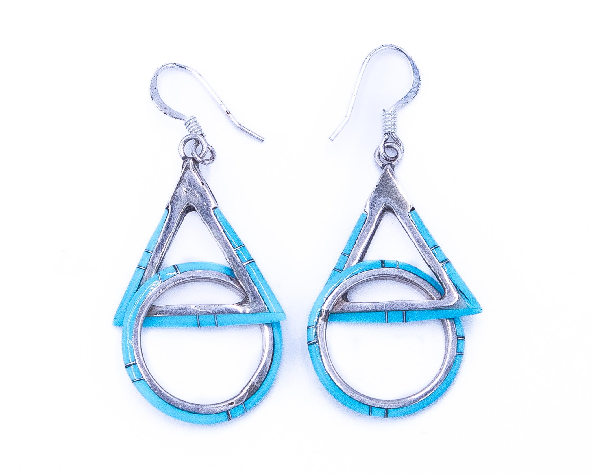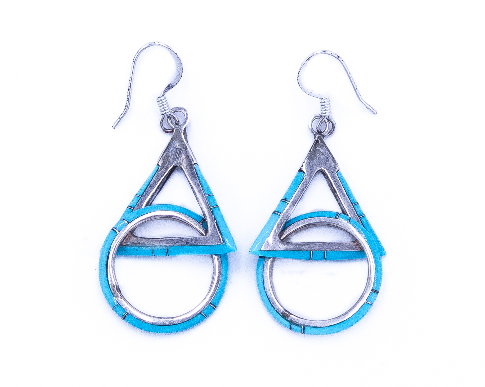 Native American Turquoise Sterling Inlay Dangle Earrings 4g