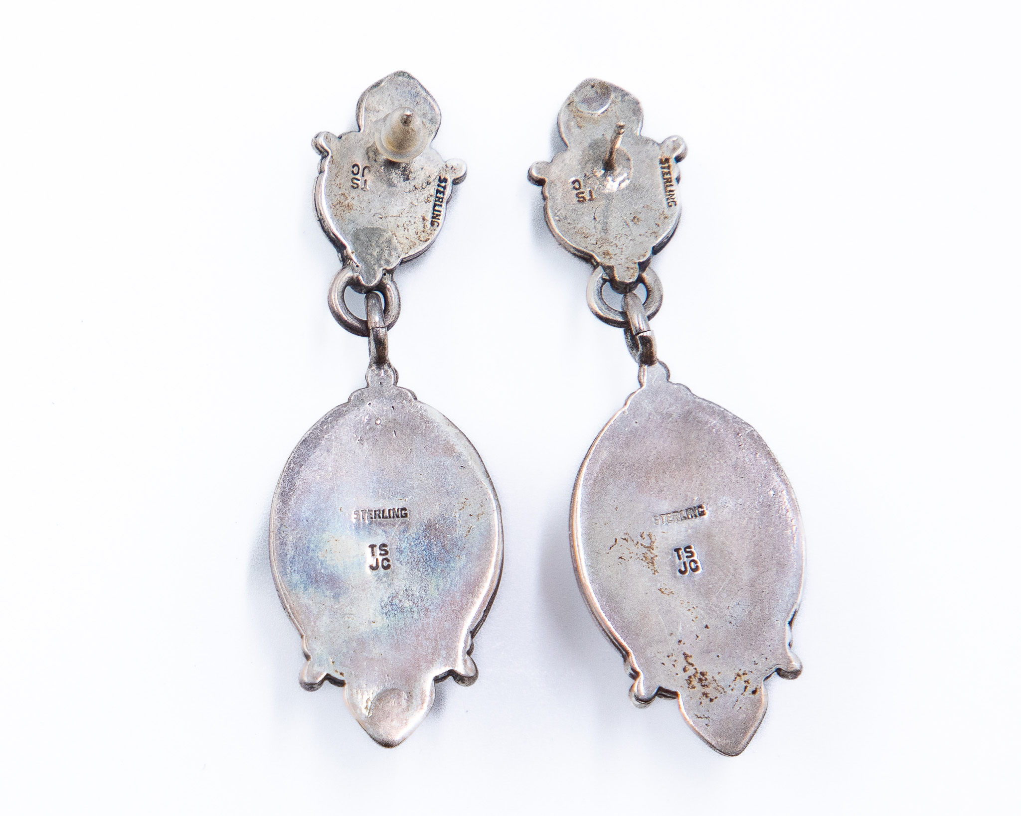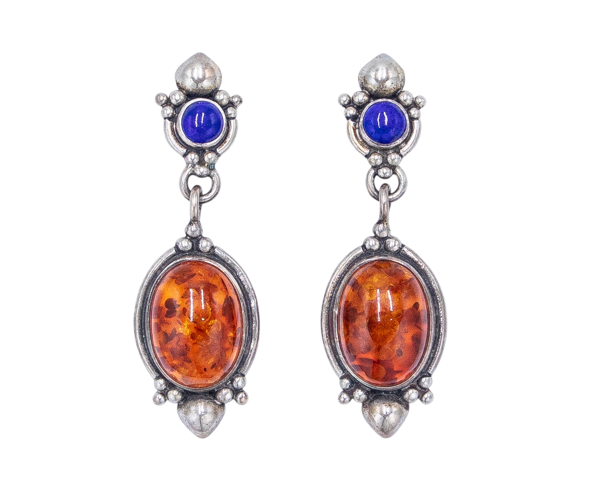 Tom & Jenny Schlecht Vintage Sterling Amber Lapis Lazuli Earrings 16.9g