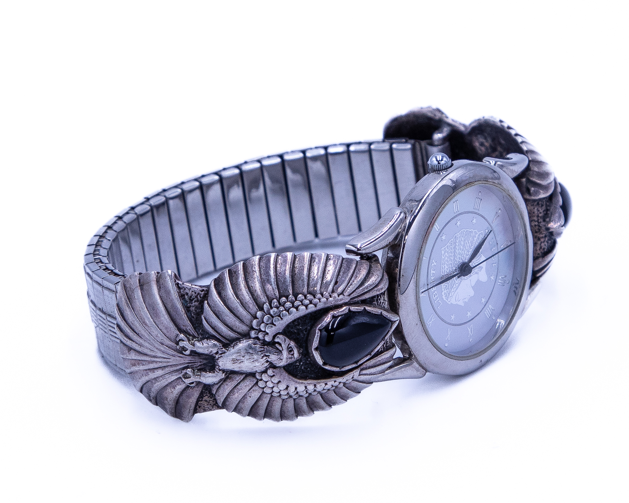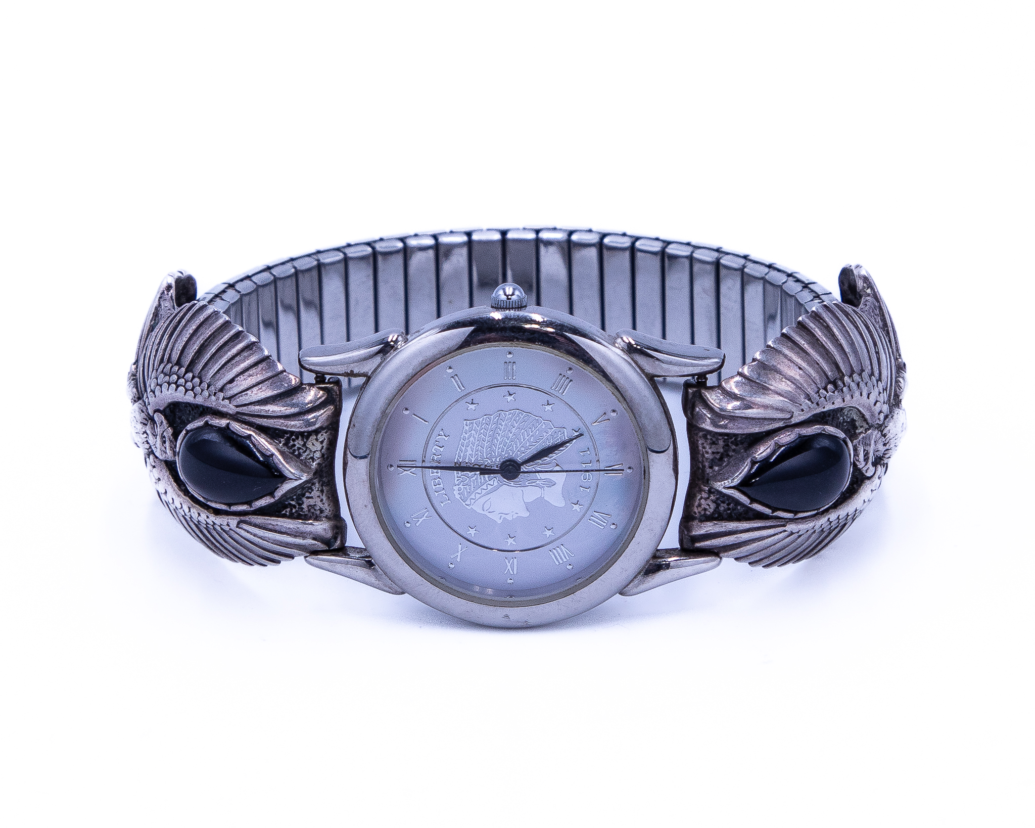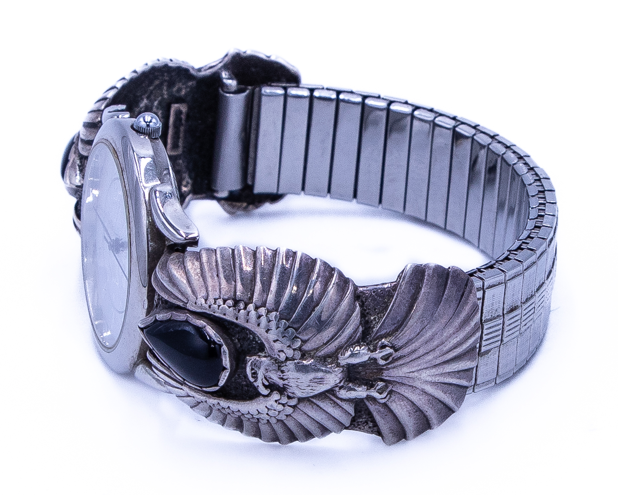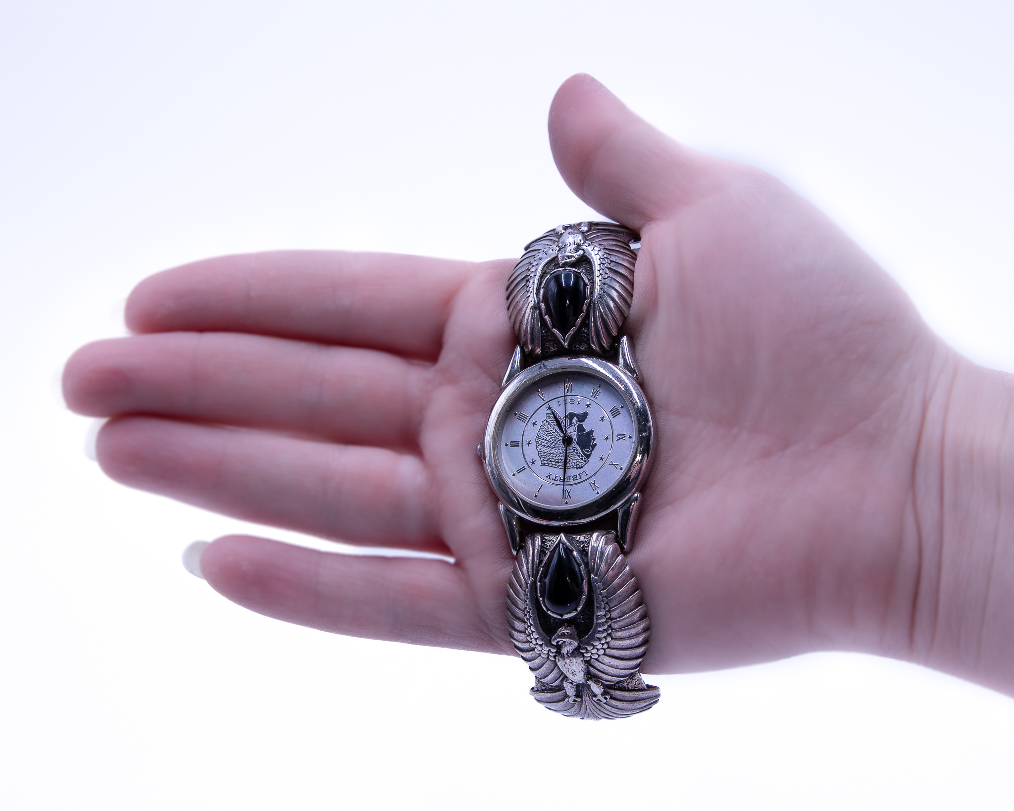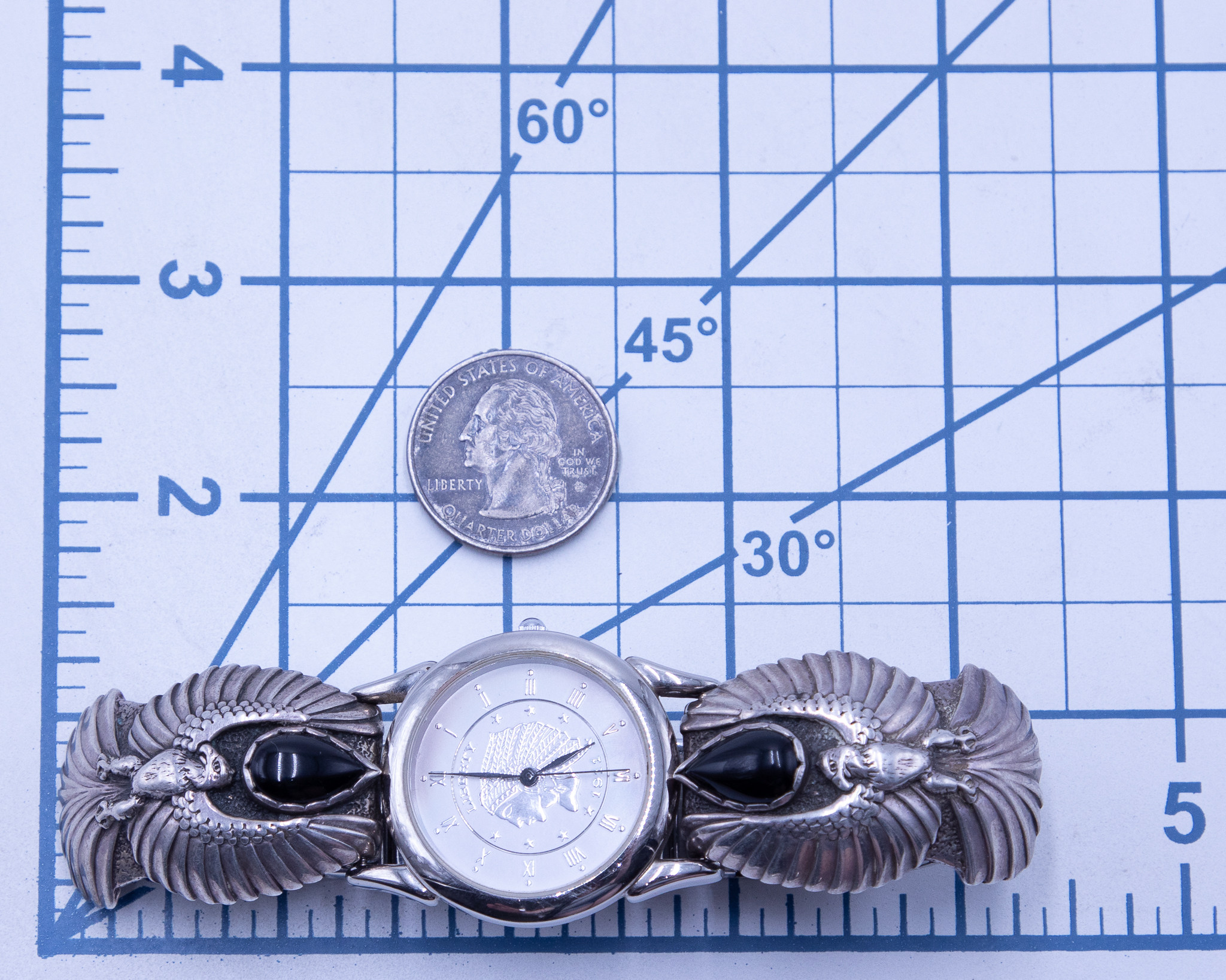Vintage Southwest Traditions GMP100 Onyx Sterling Stainless Watch 79g-Japan Watch