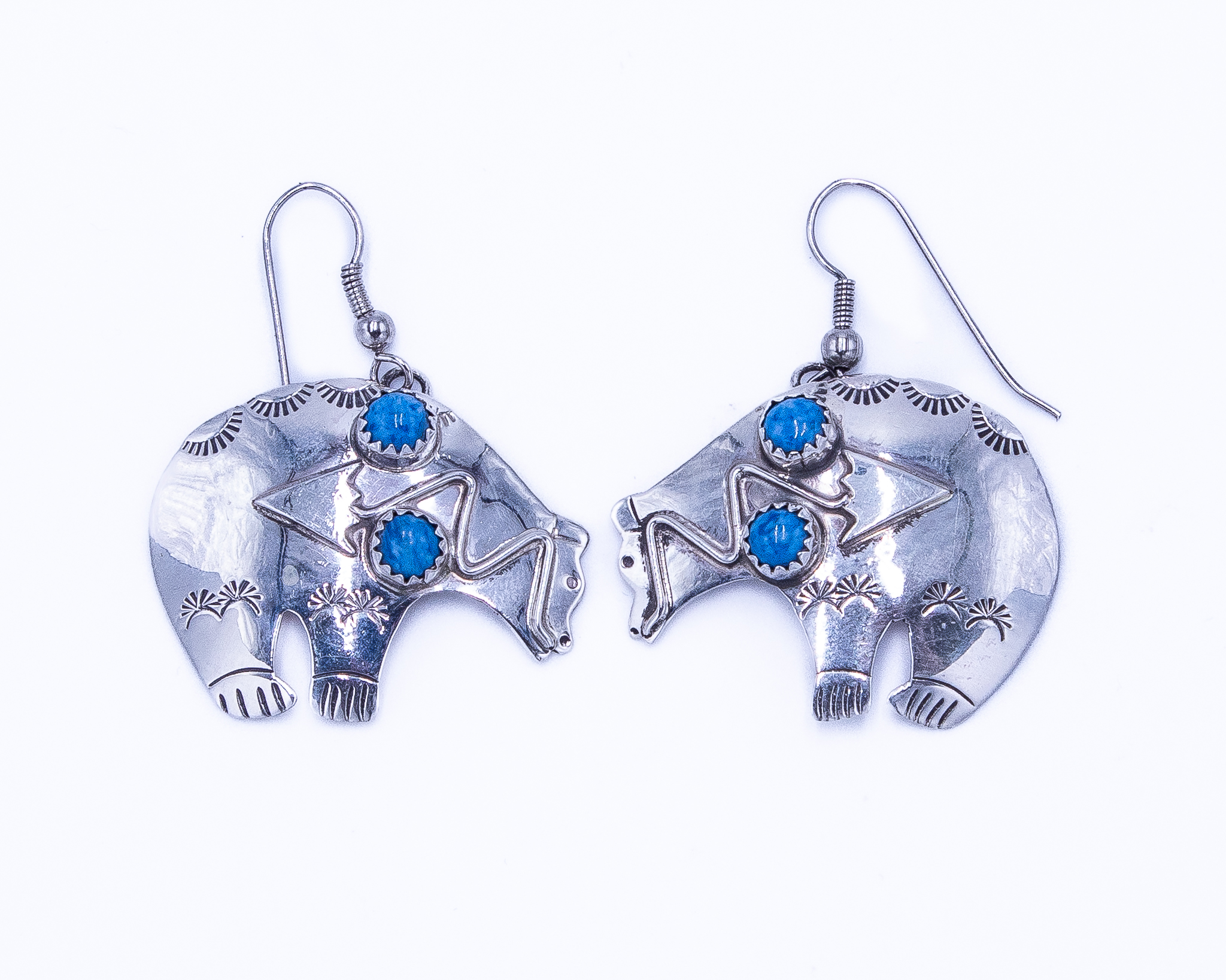 Jeff Largo Navajo Sterling Bear Hook Earrings 9g