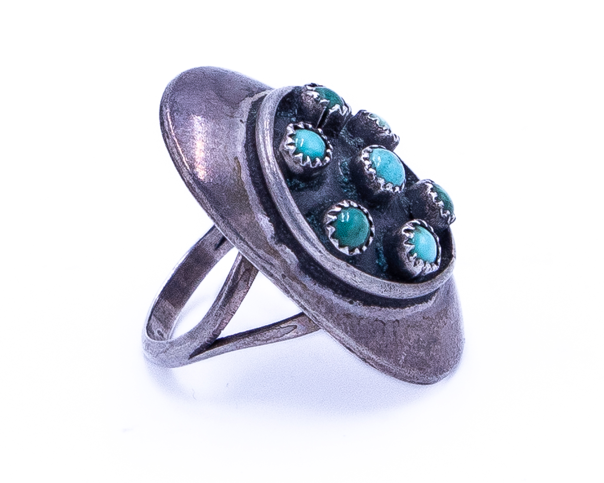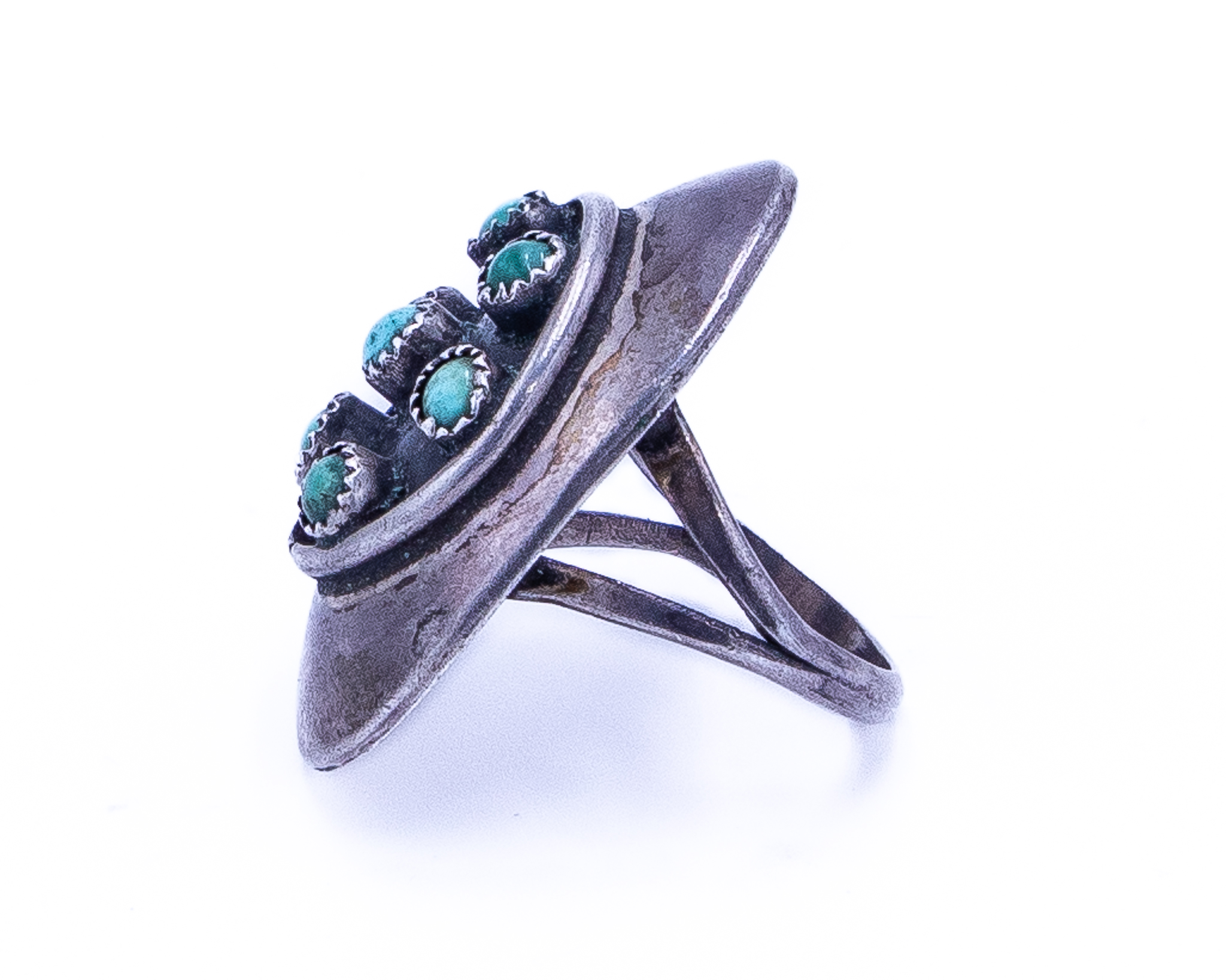 Vintage Navajo Green Blue Turquoise Sterling Ring Sz 5.75, 8g