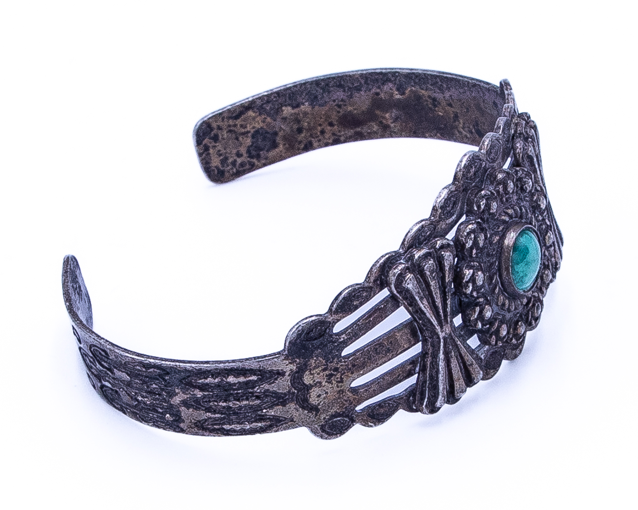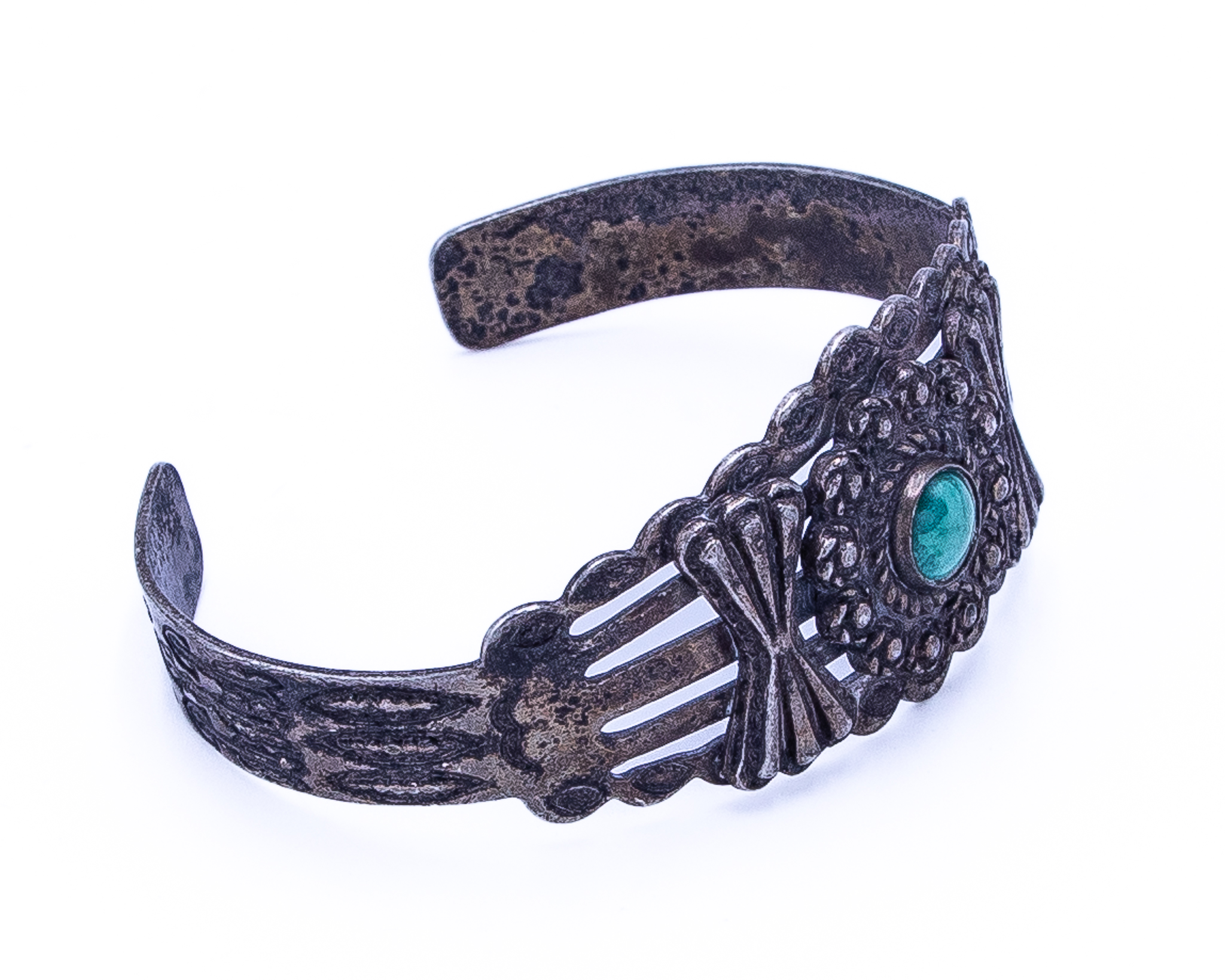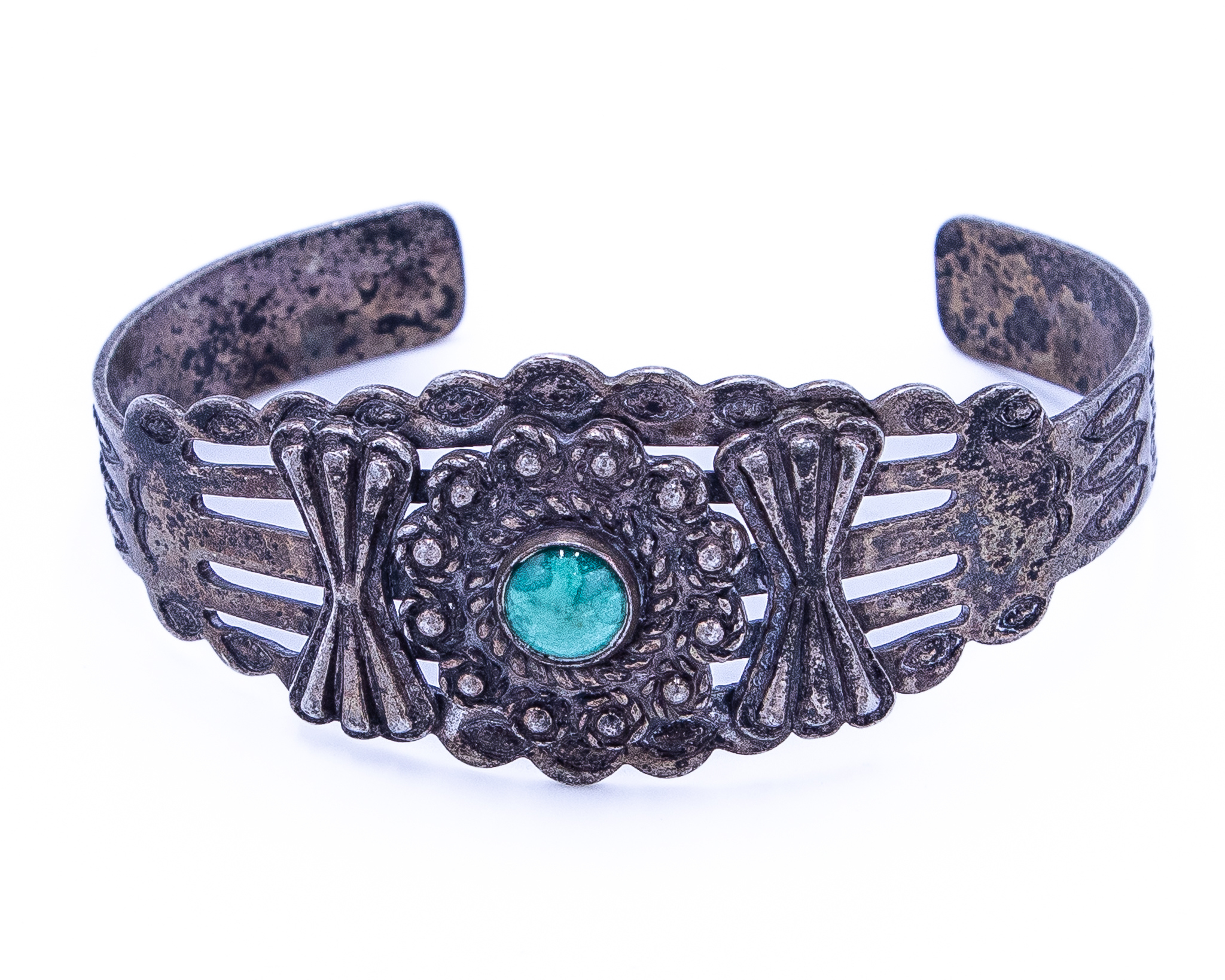 Fred Harvey Era Navajo Green Turquoise Sterling Cuff Bracelet 23g