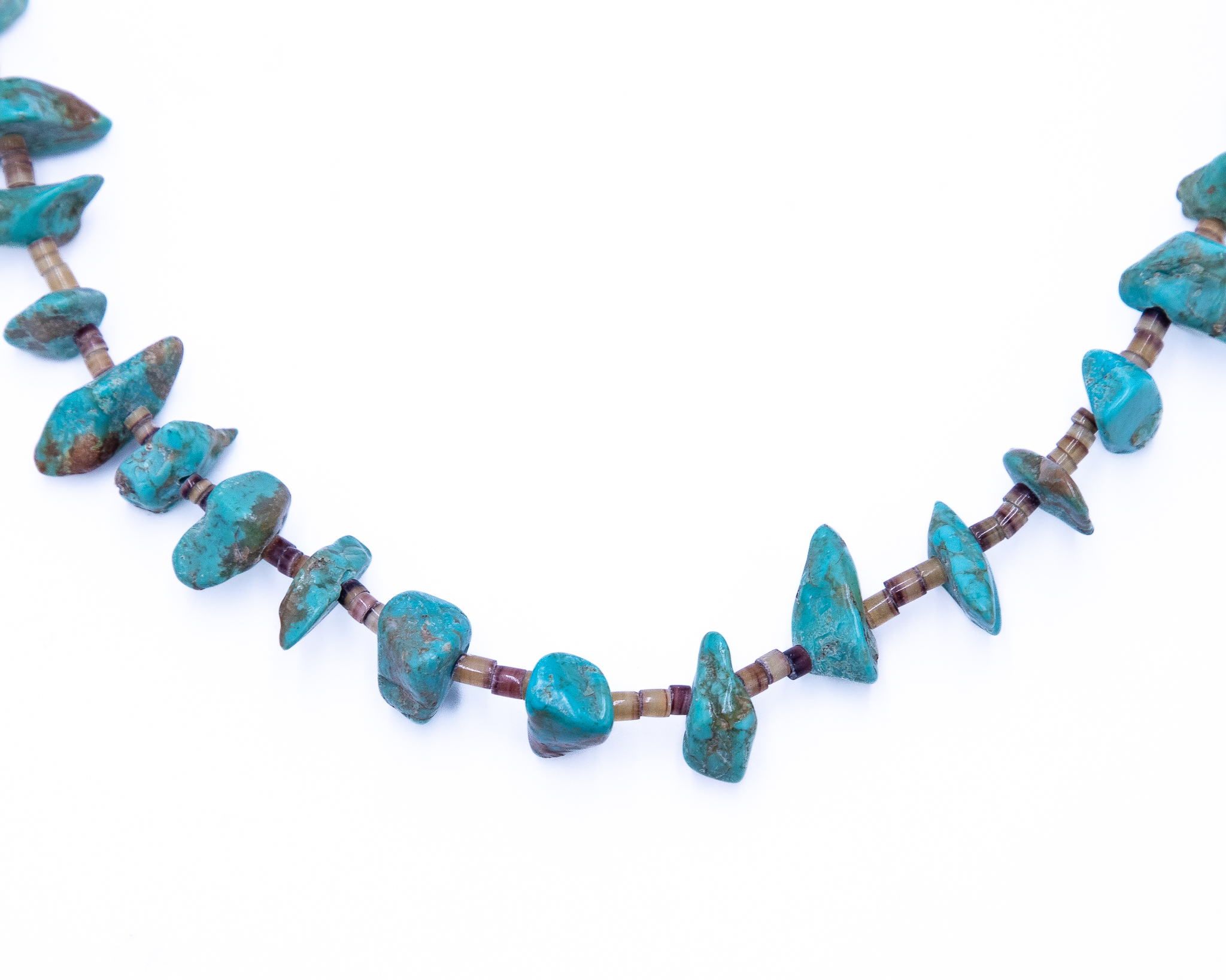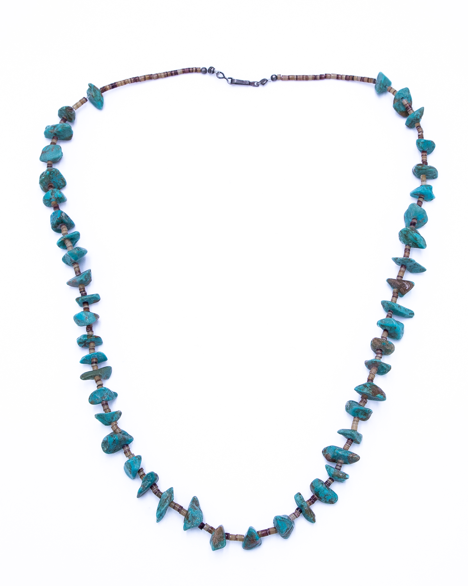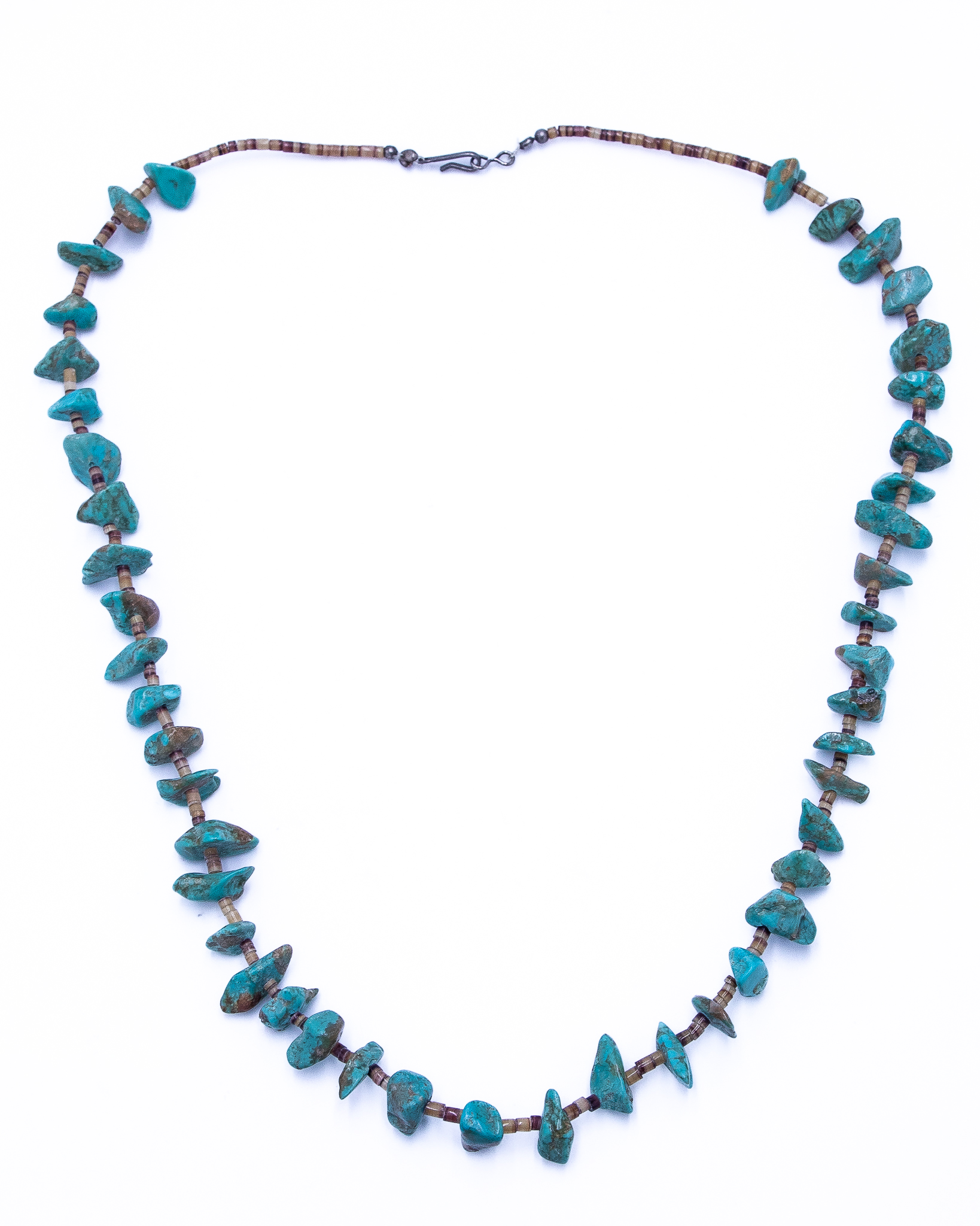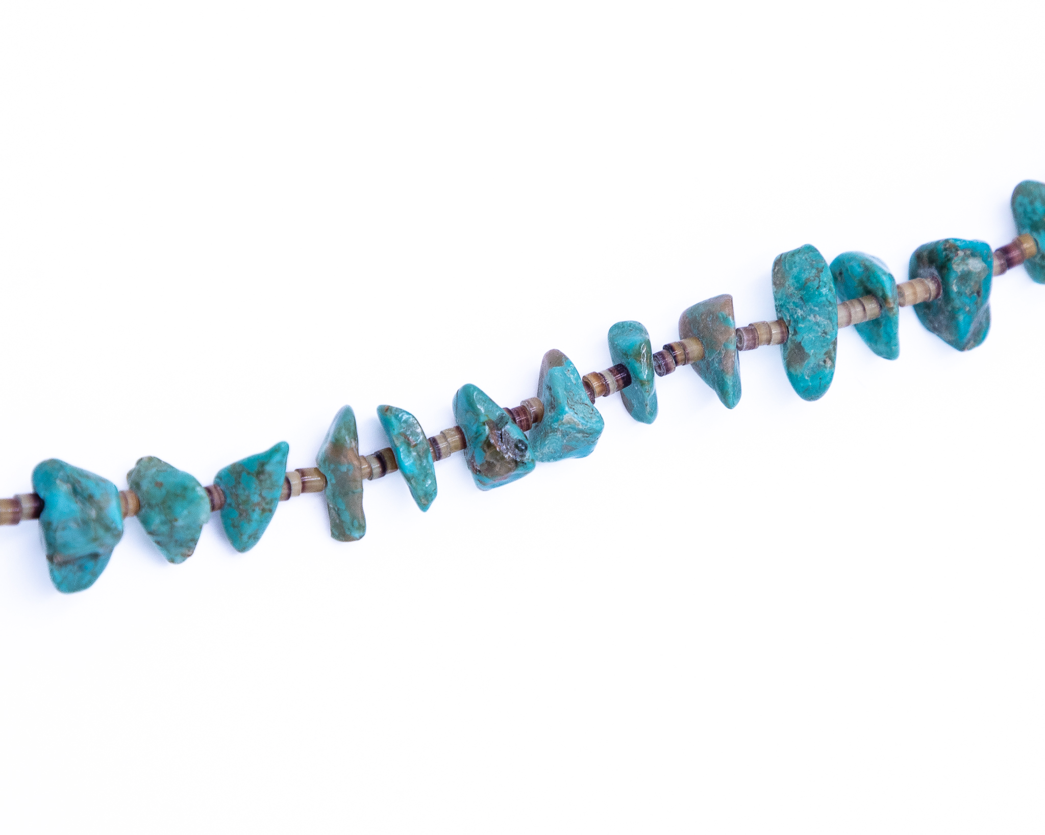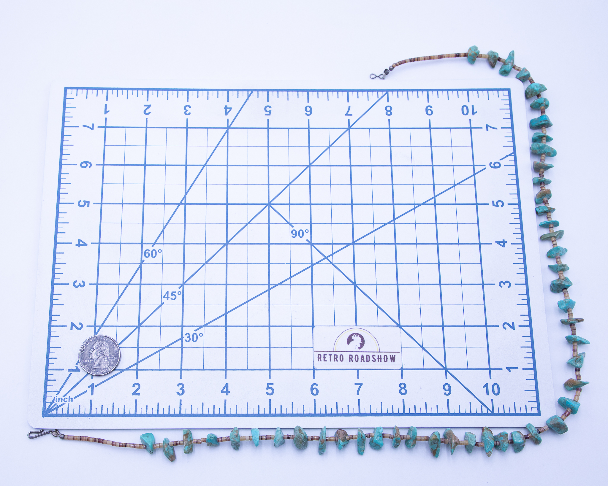 Vintage Turquoise Chunk Sterling Heishi Necklace 38.5g