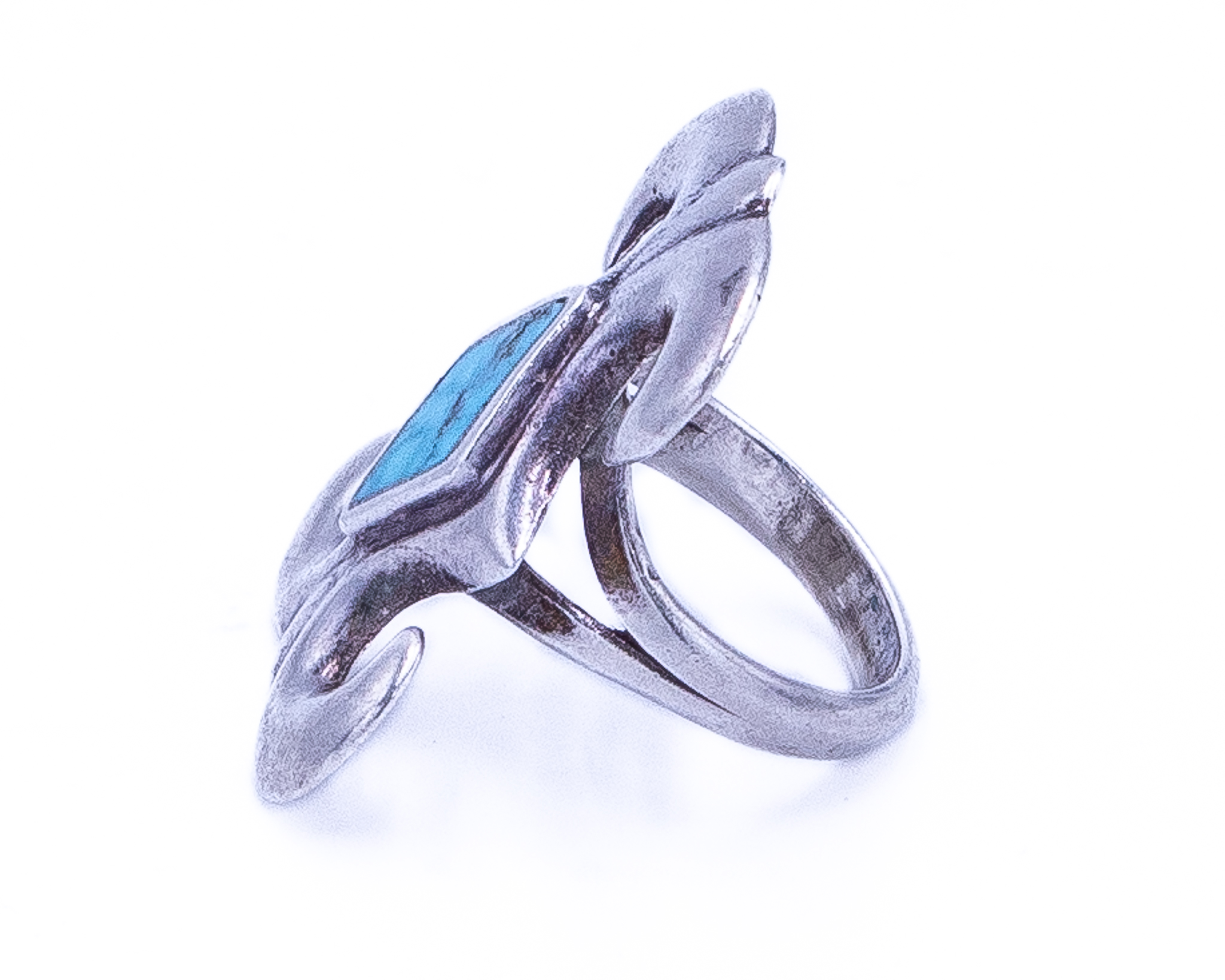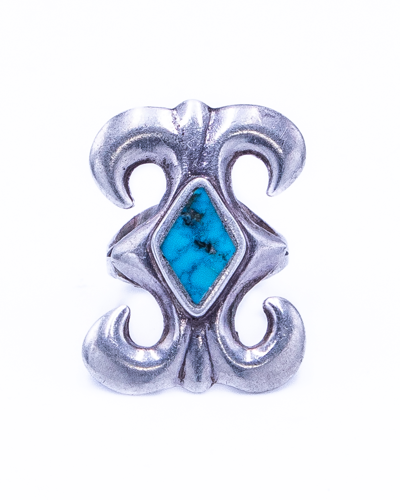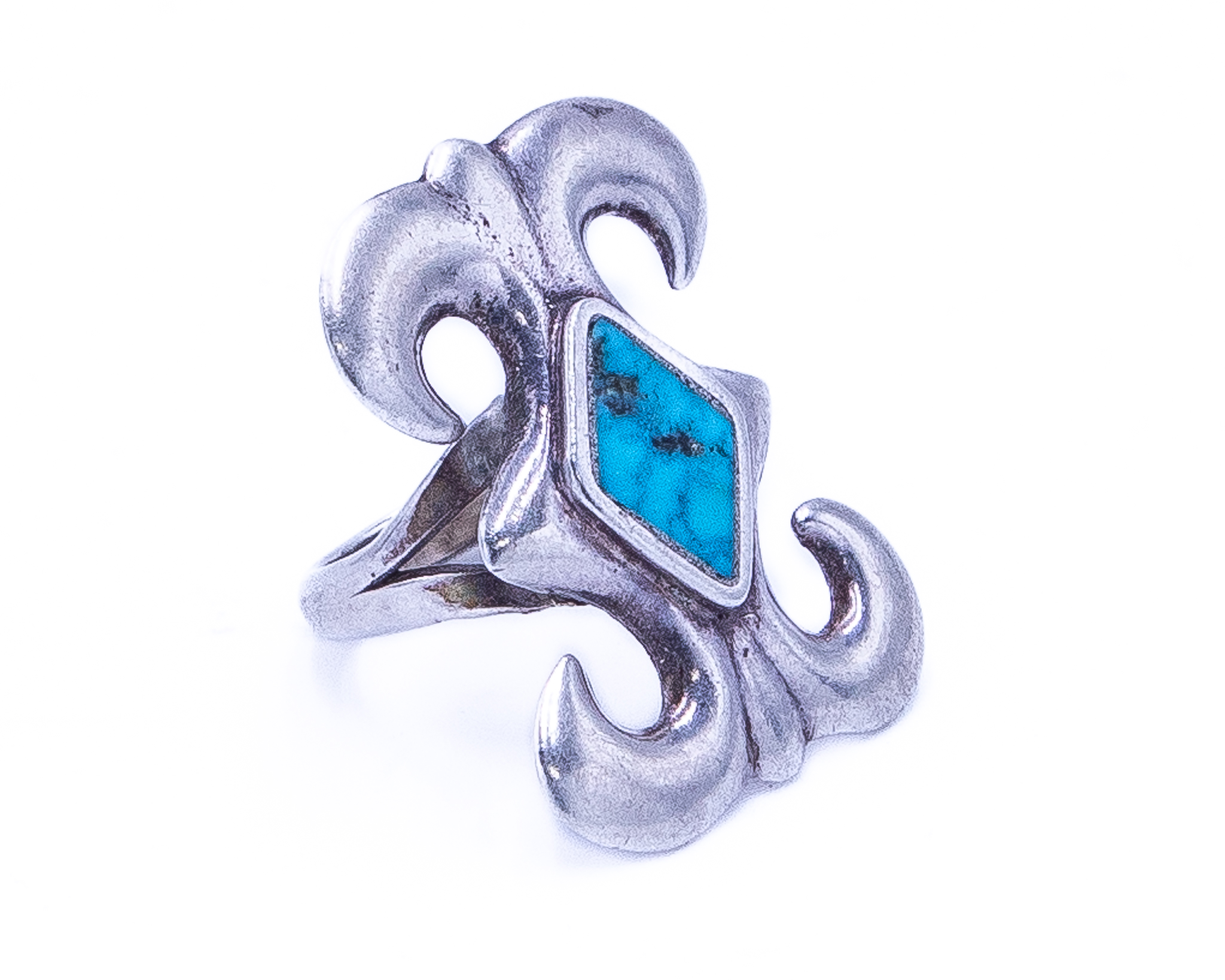 Vintage Navajo Turquoise Sandcast Sterling Ring Sz 5, 8g