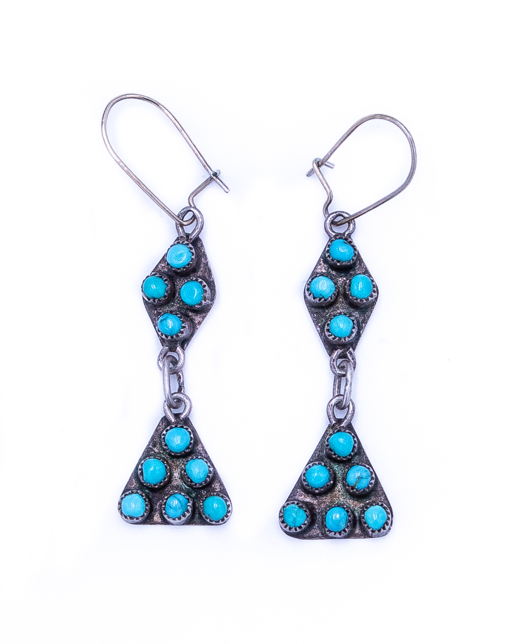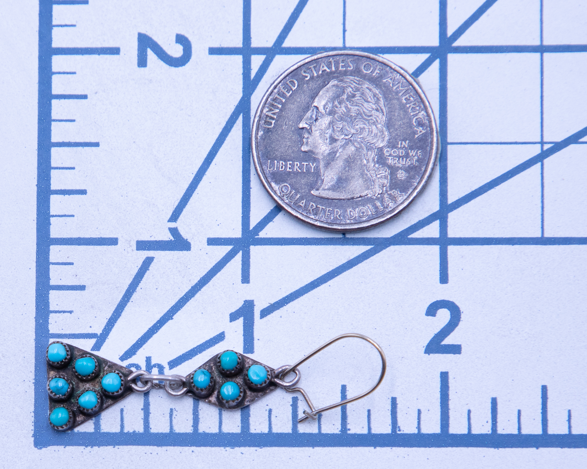 Vintage Zuni Snake Eye Turquoise Cluster Sterling Earrings 3g