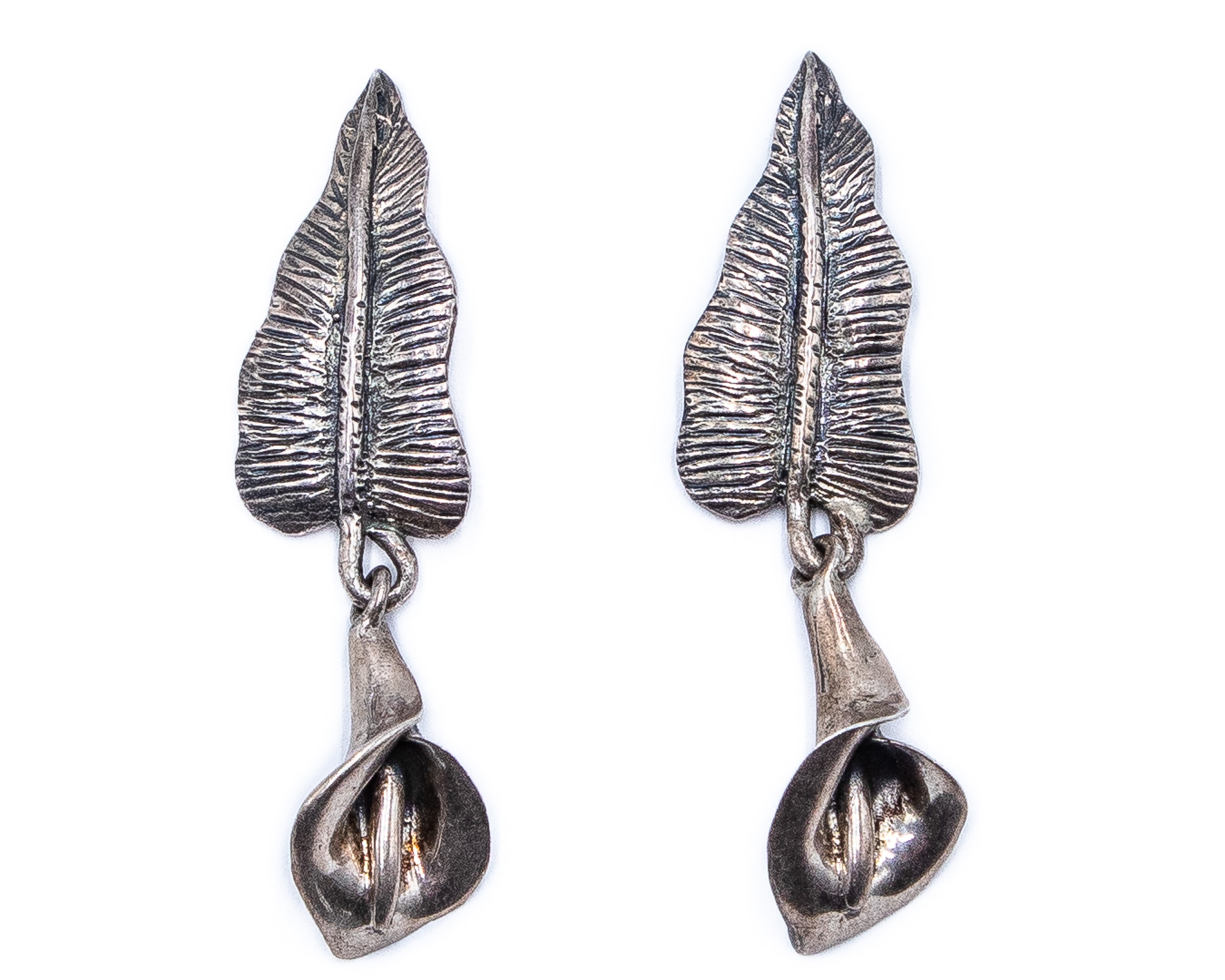 Rare Emilia Castillo TO-85 950 Sterling Calla Lily Dangle Earrings 13.6g