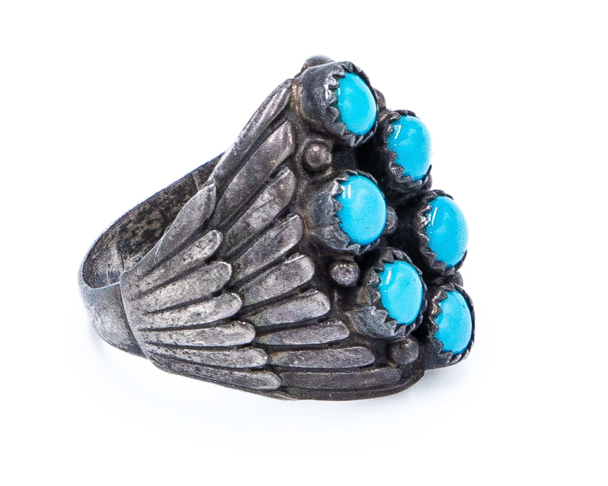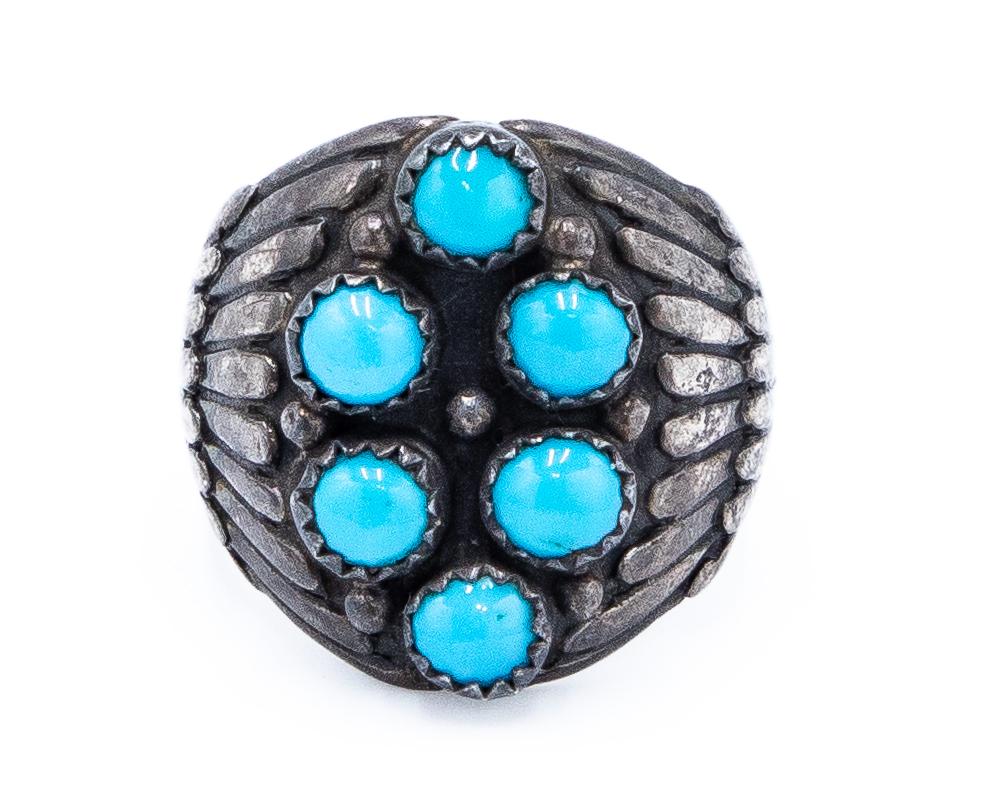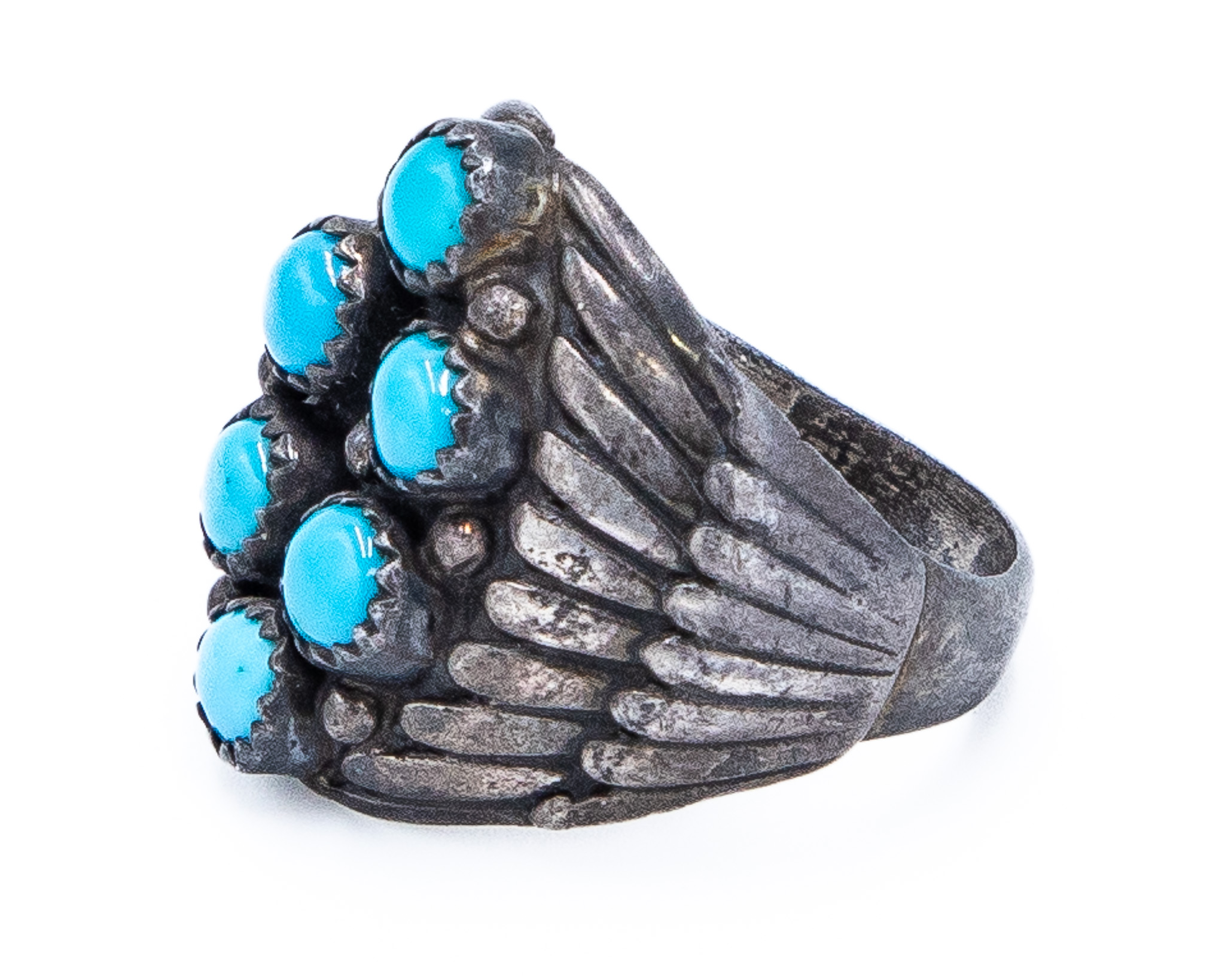 First American Traders Gallup Feather Turquoise Cluster Vintage Sterling Ring Sz 10 16.2g