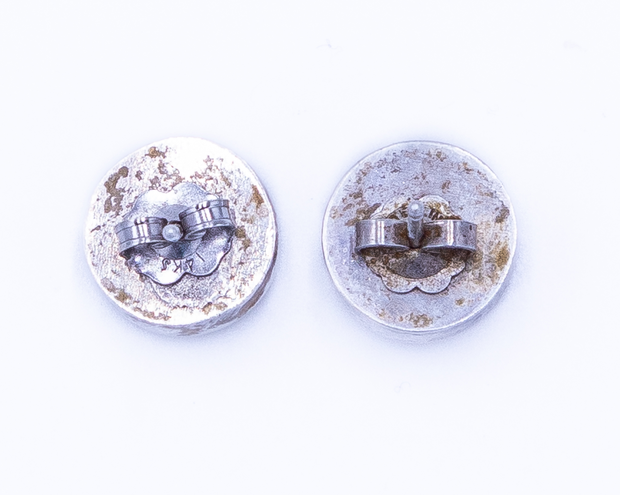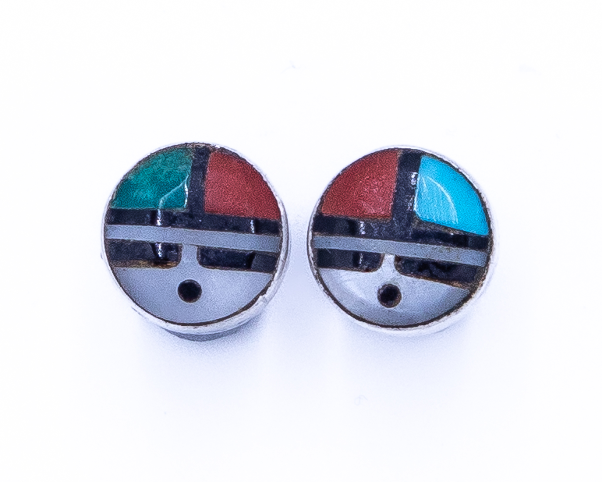Vintage Zuni Multi Stone Sterling Sunface Inlay Earrings-Mother of Pearl, Turquoise, Coral, Onyx