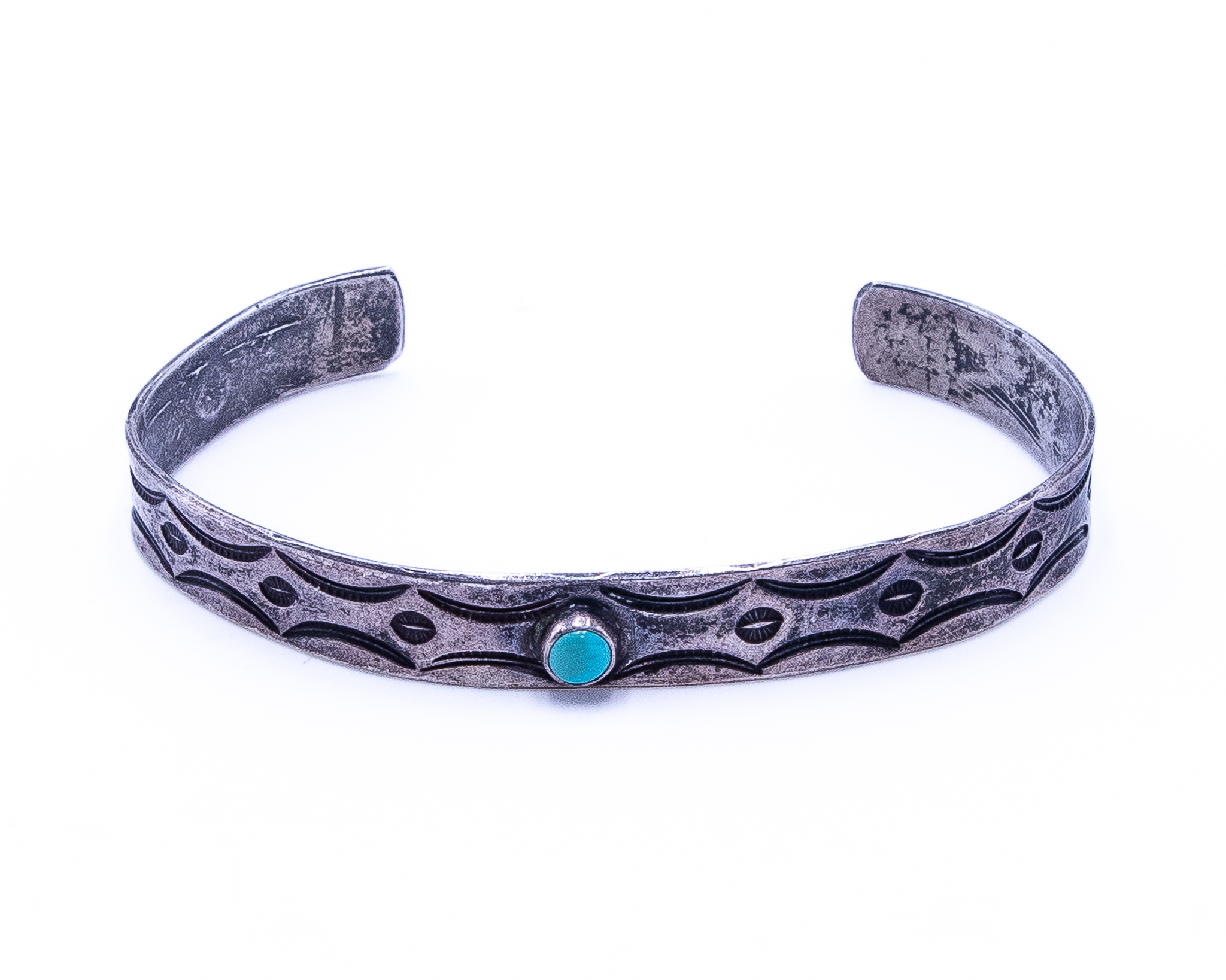 Fred Harvey Era Navajo Turquoise Sterling Cuff Bracelet