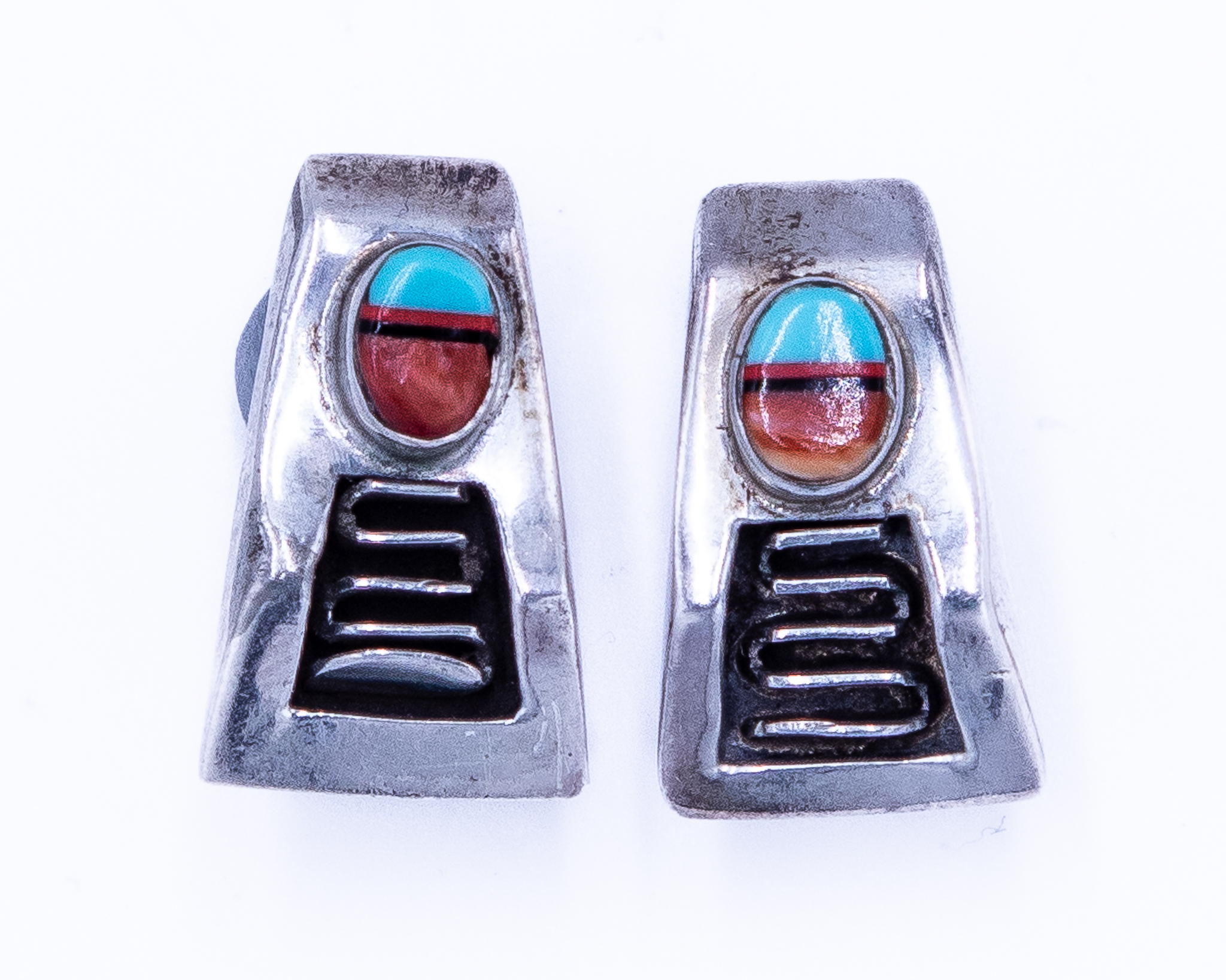 Vintage Zuni Multi Stone Sterling Earrings 6g-Coral, Onyx, Turquoise