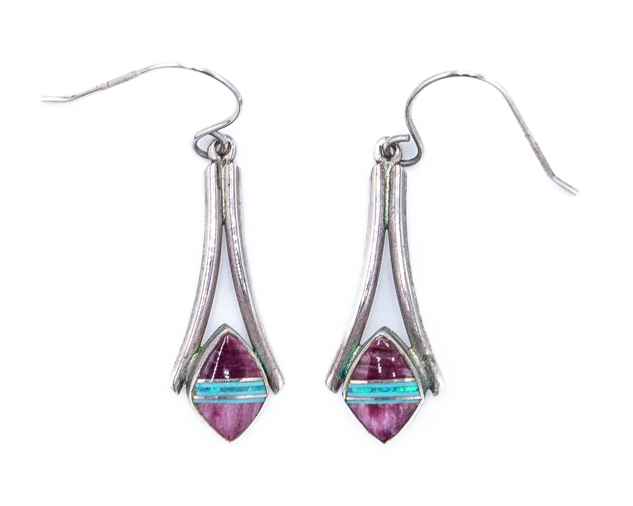 Kenneth Bitsie Navajo Multistone Dangle Sterling Earrings 4.1g – Spiny Oyster, Opal, Turquoise, etc.
