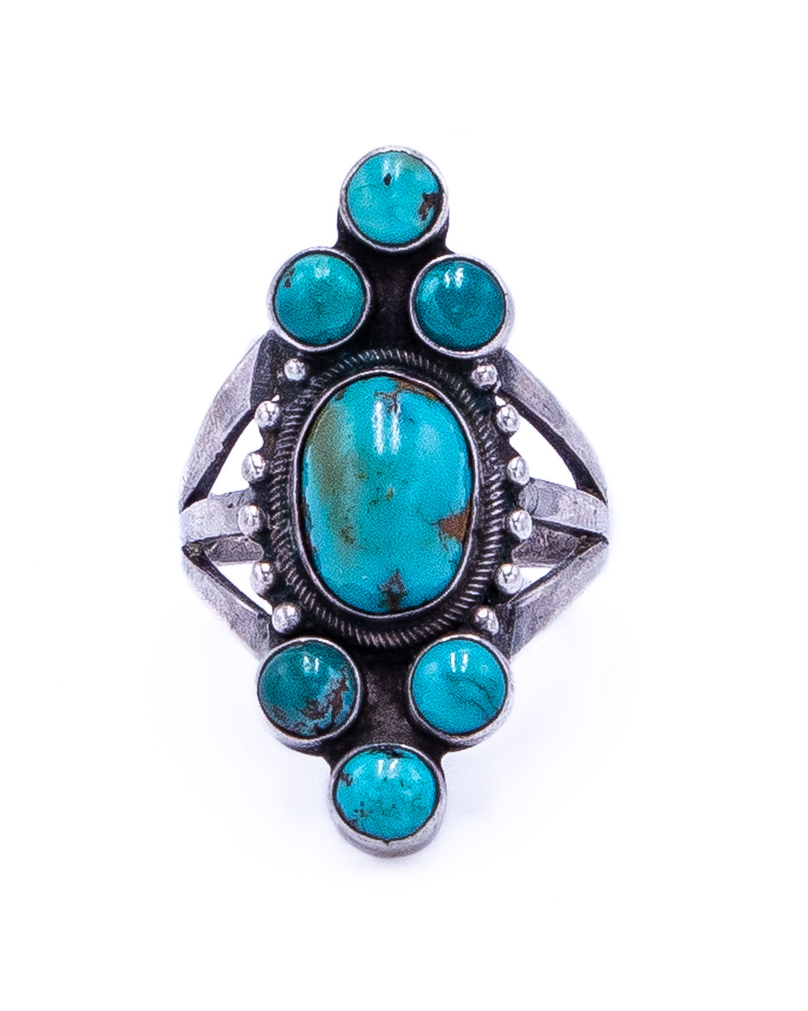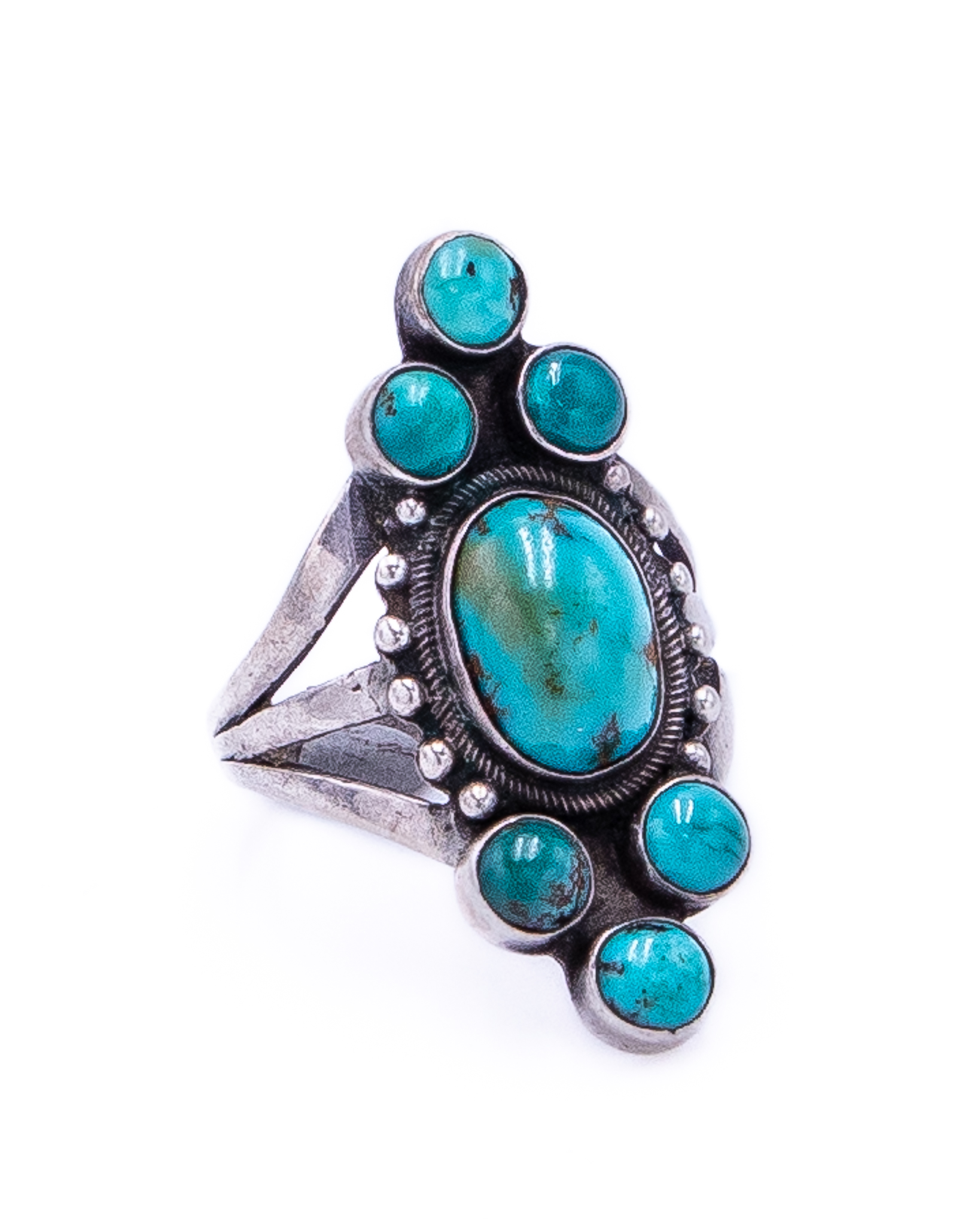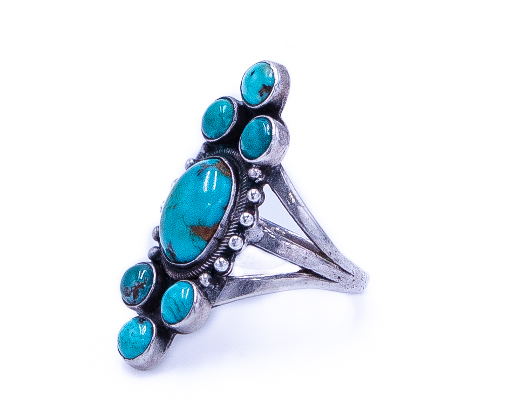 Vintage Zuni Green Blue Turquoise Sterling Ring Sz 6, 5g