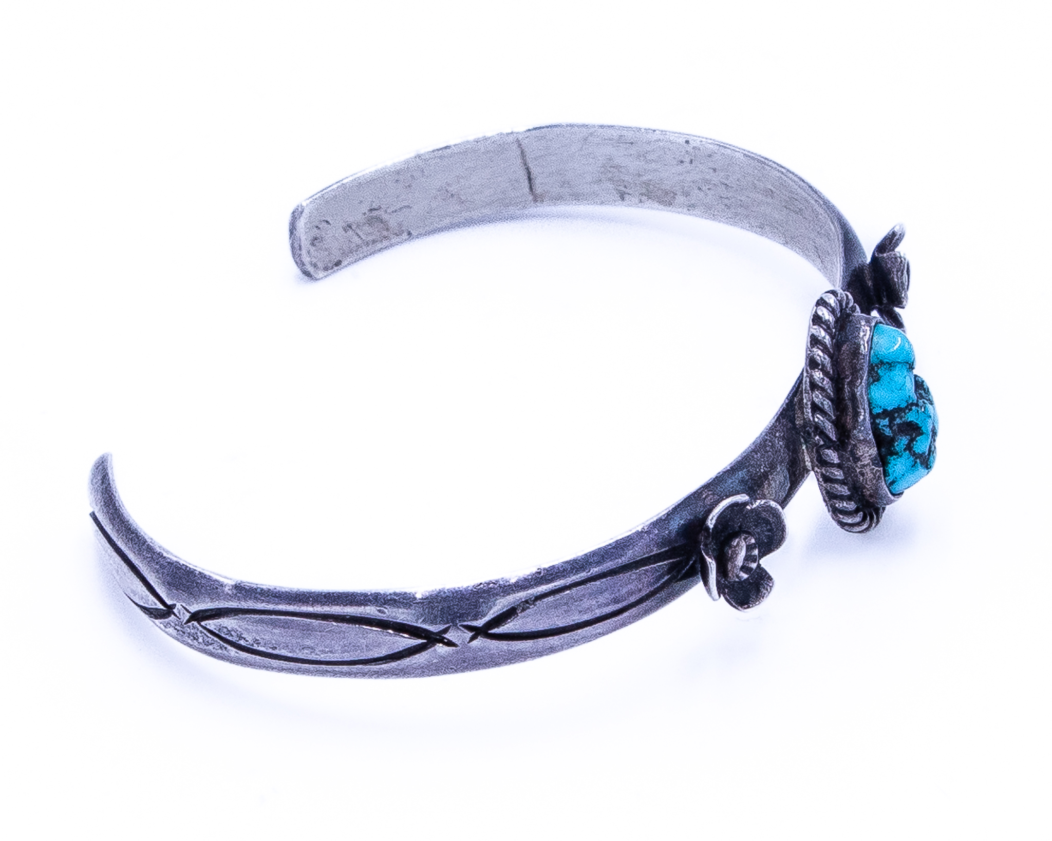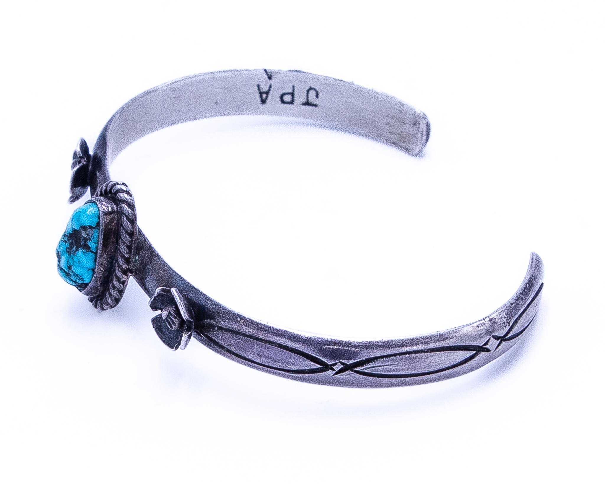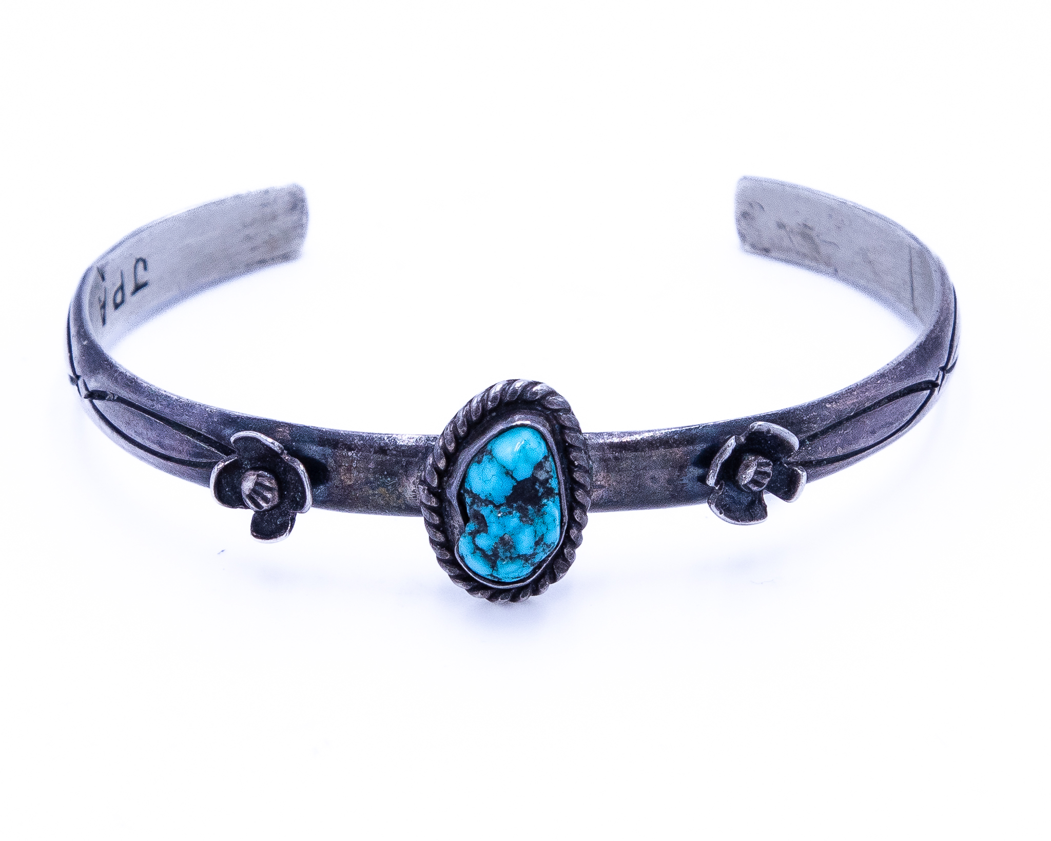 Signed JPA Navajo Turquoise Sterling Blossom Cuff Bracelet 14g