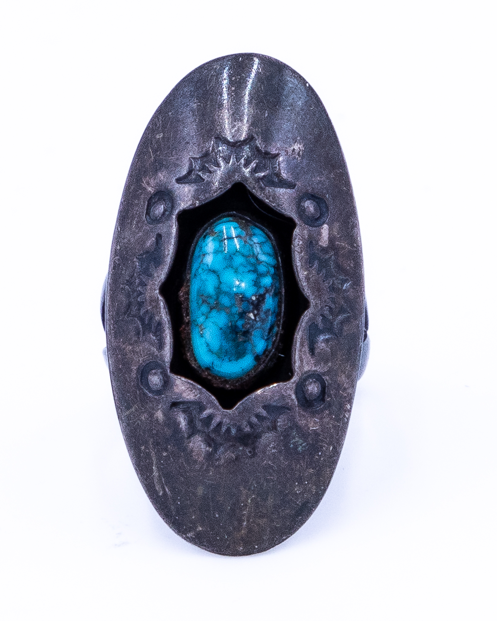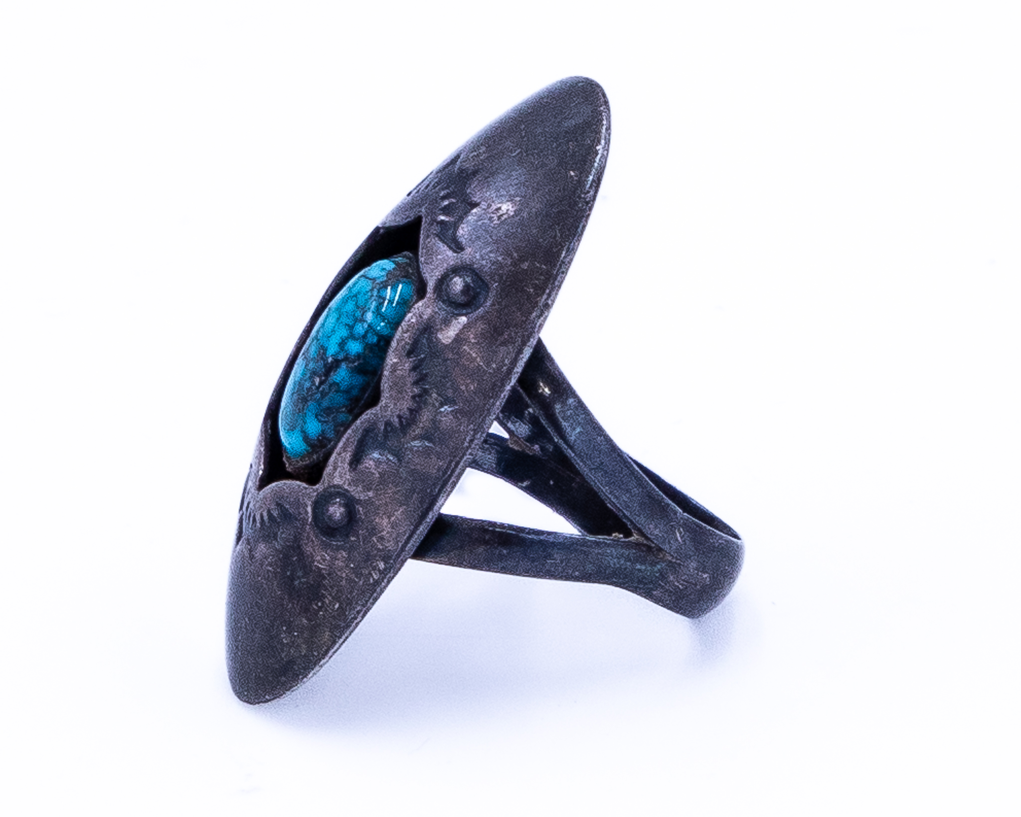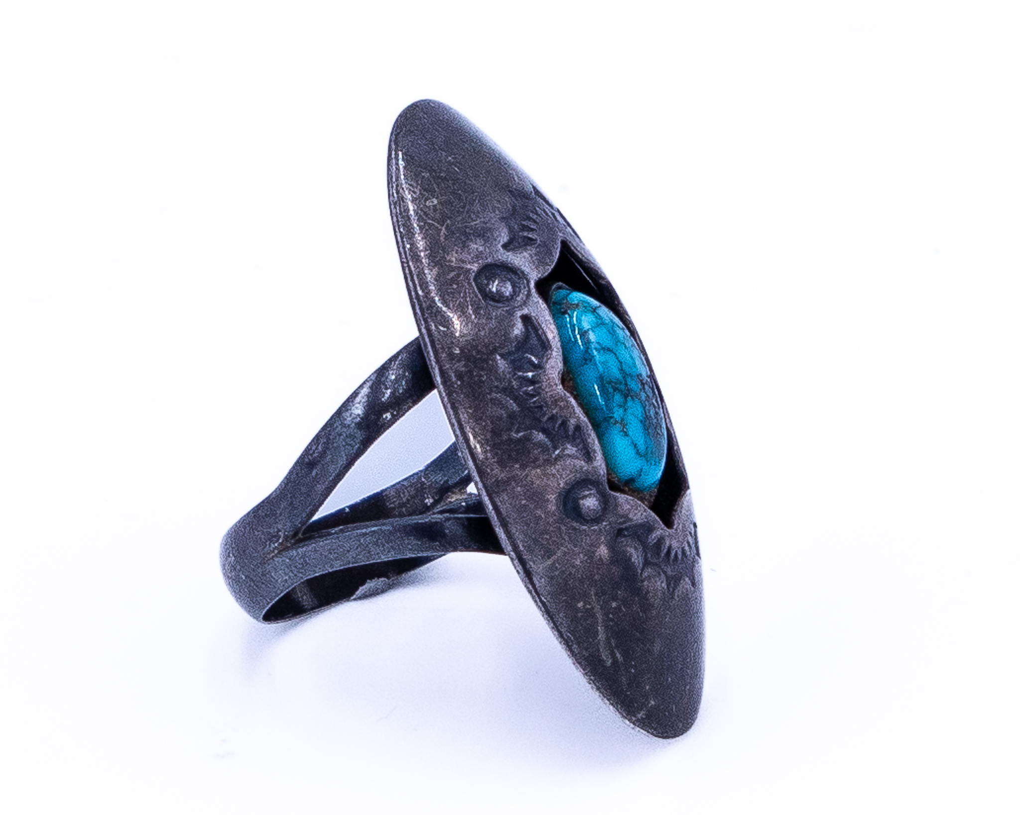 Vintage Navajo Turquoise Sterling Shadow Box Ring Sz 5, 7g