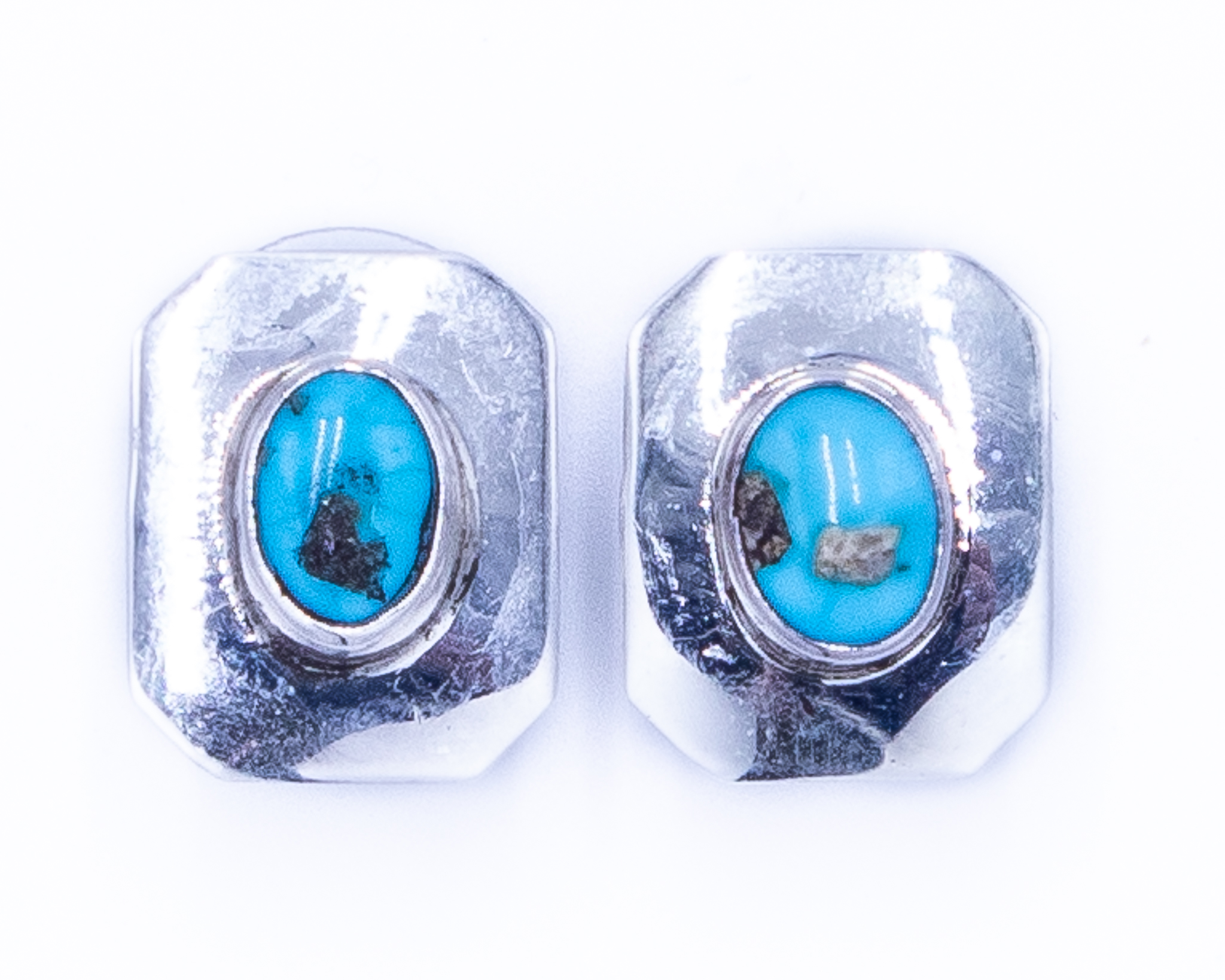 Navajo Turquoise Sterling Square Stud Earrings 3g