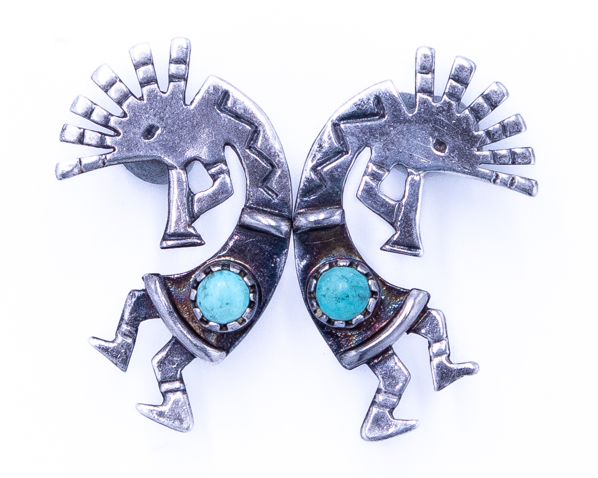 Shubes Manufacturing Inc. Turquoise Sterling Kokopelli Earrings 4g