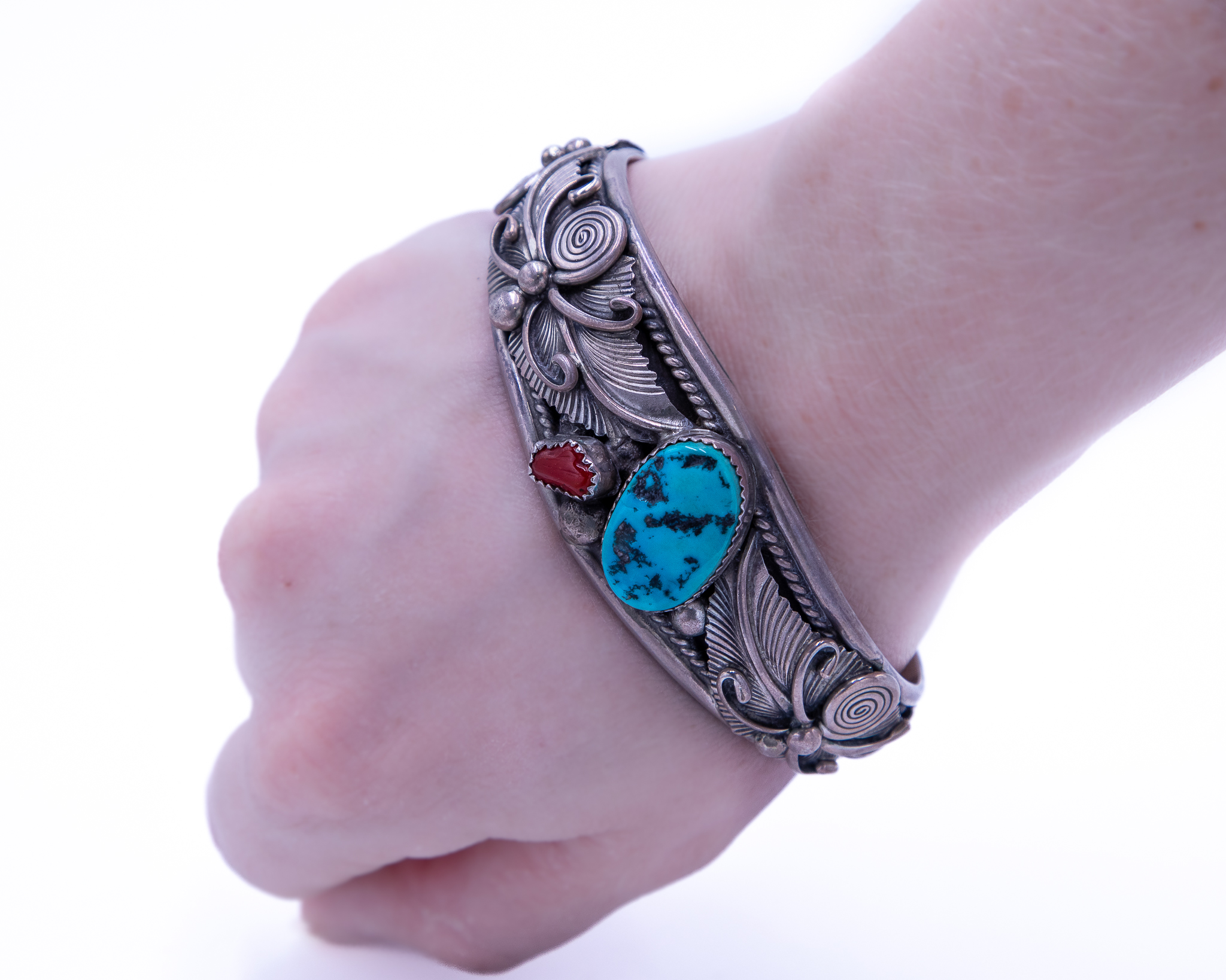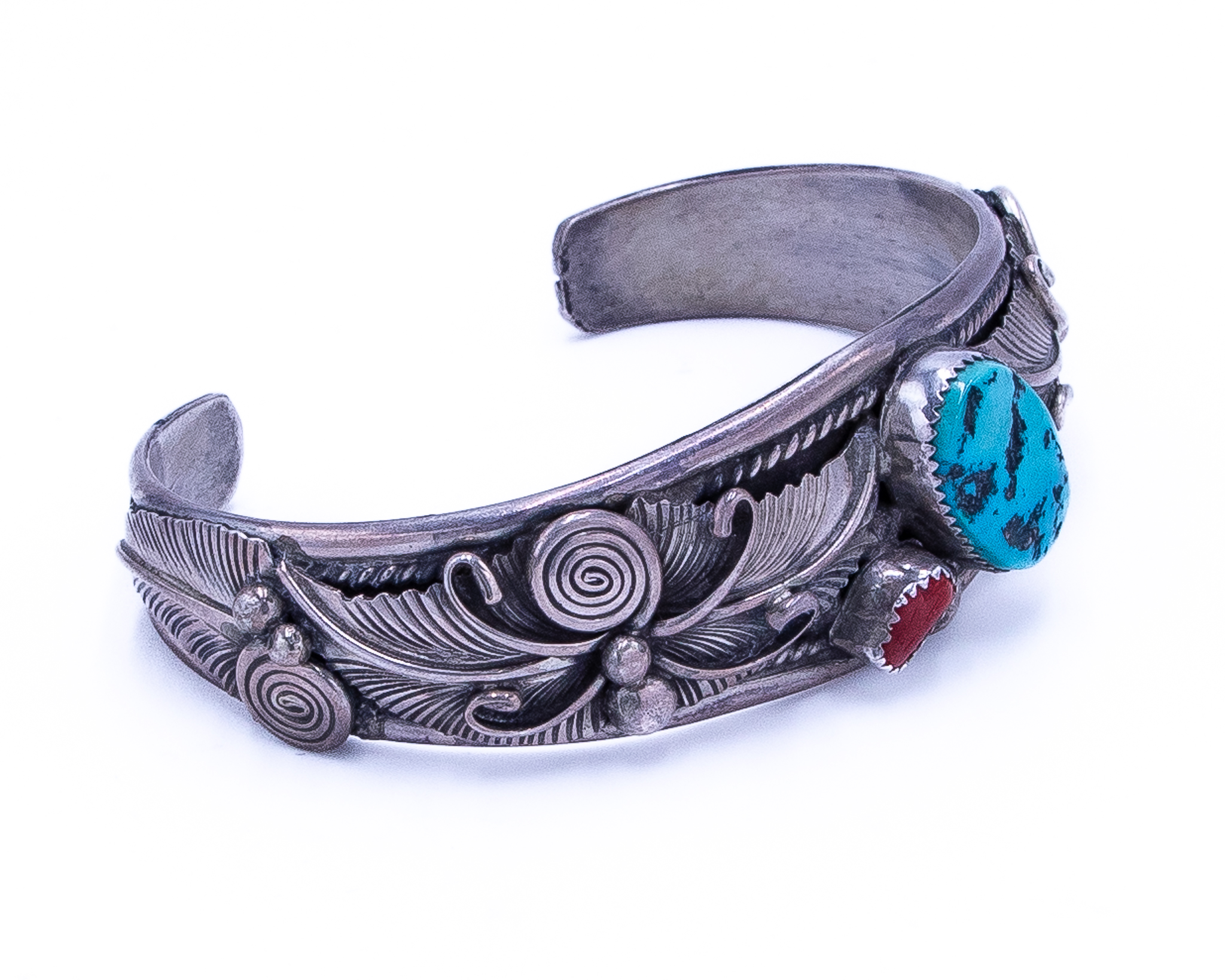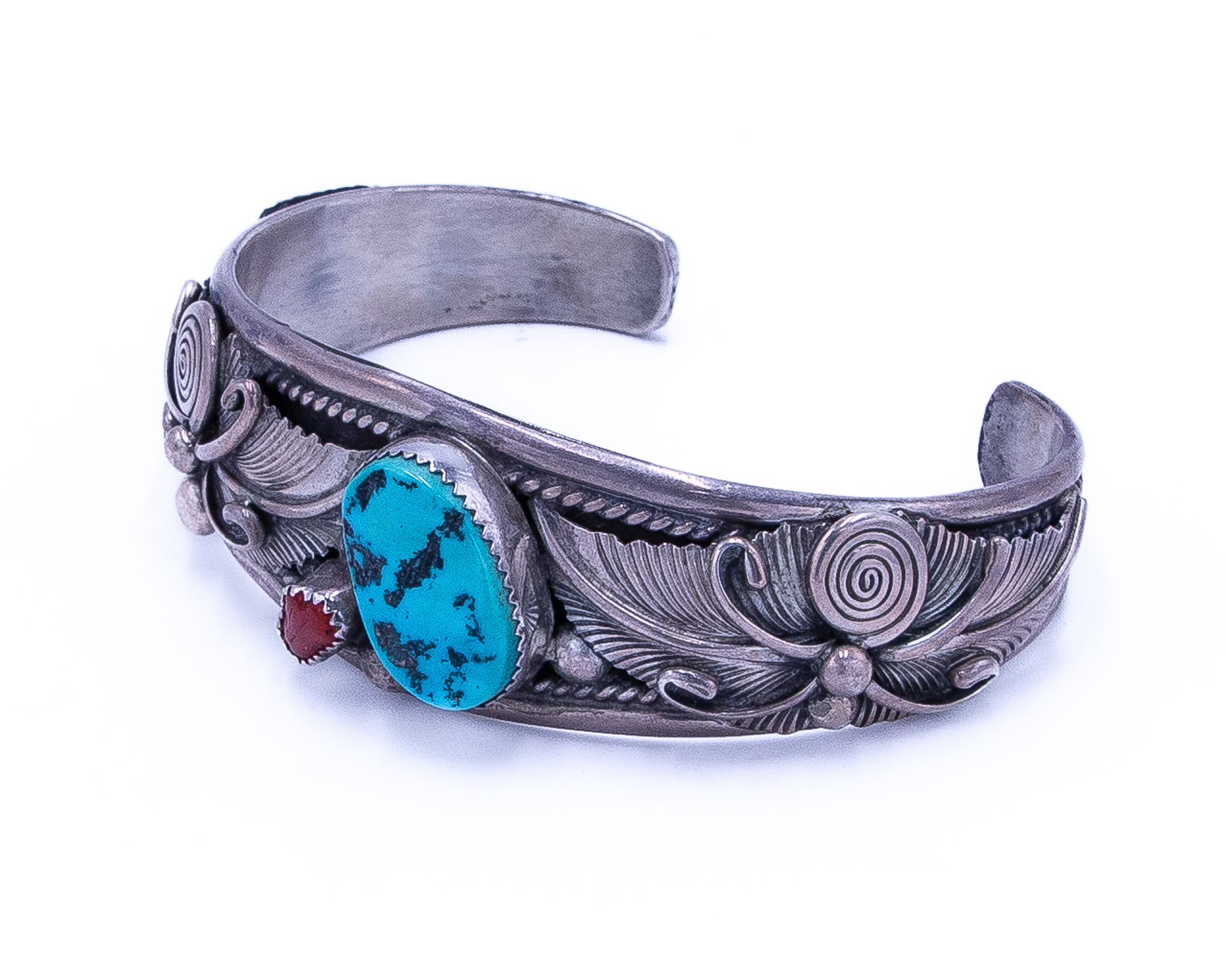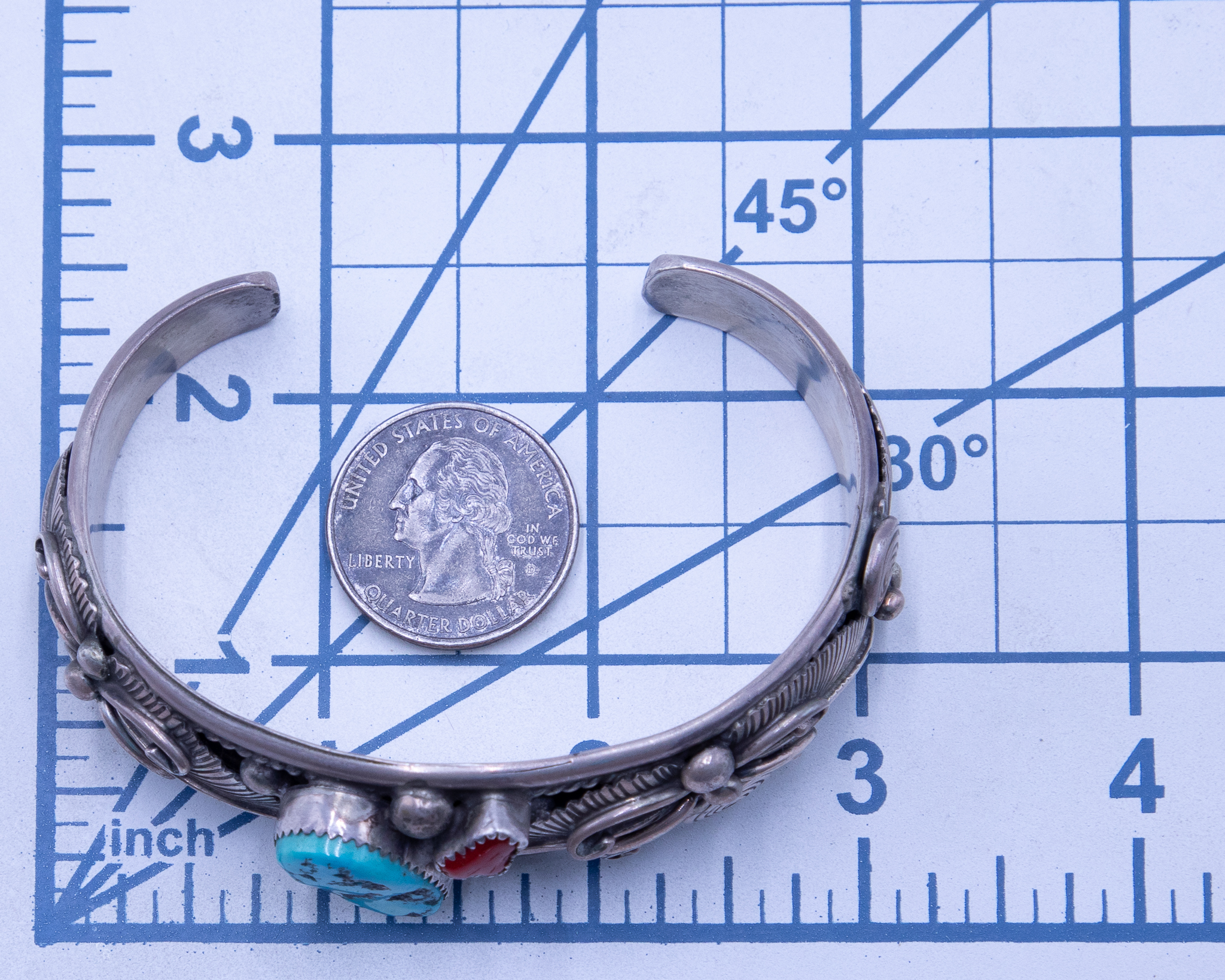 Lester Craid Navajo Turquoise Coral Sterling Cuff Bracelet 59g