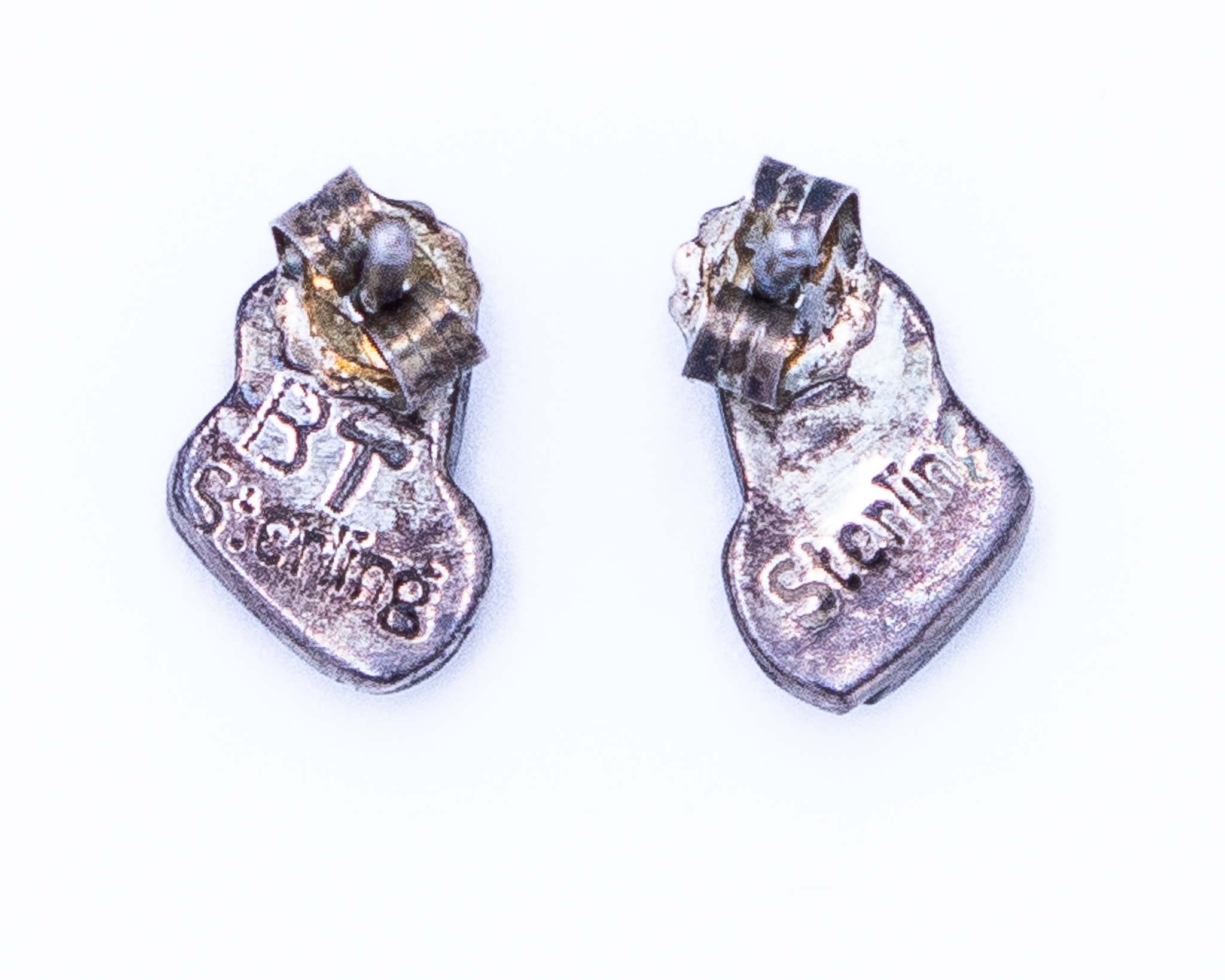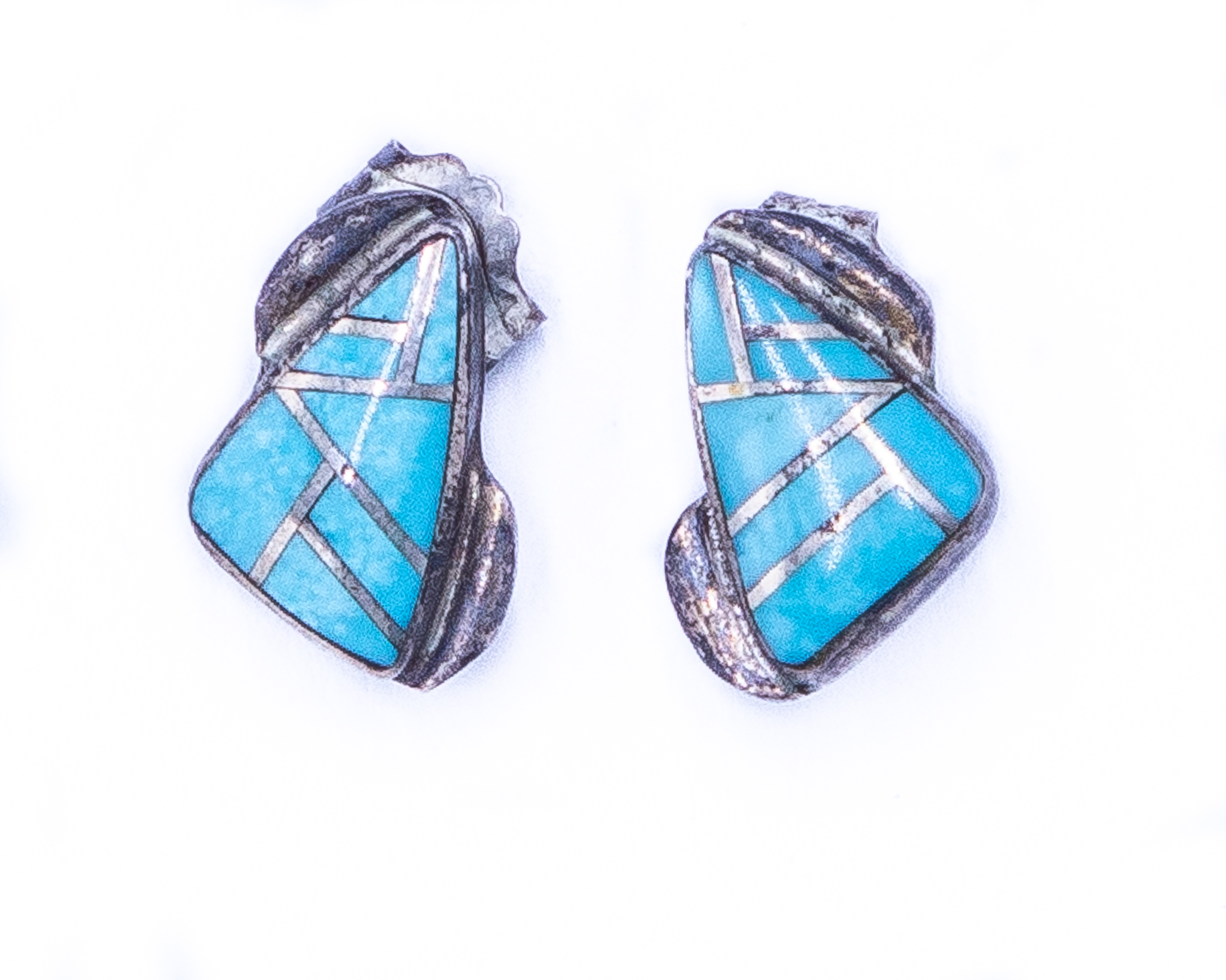 Signed BT Zuni Turquoise Sterling Inlay Earrings 1.5g