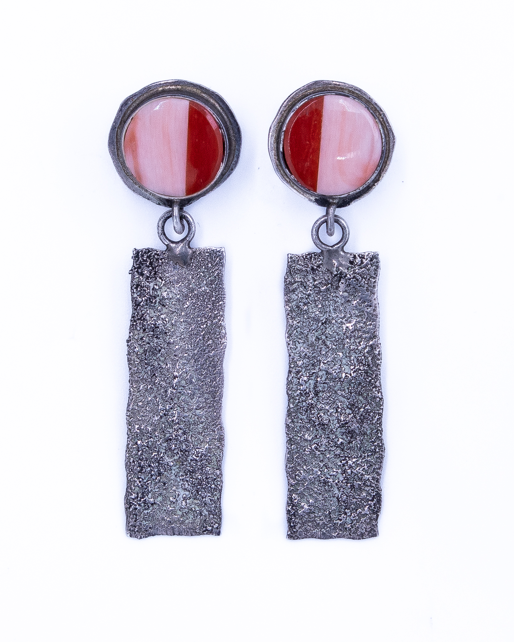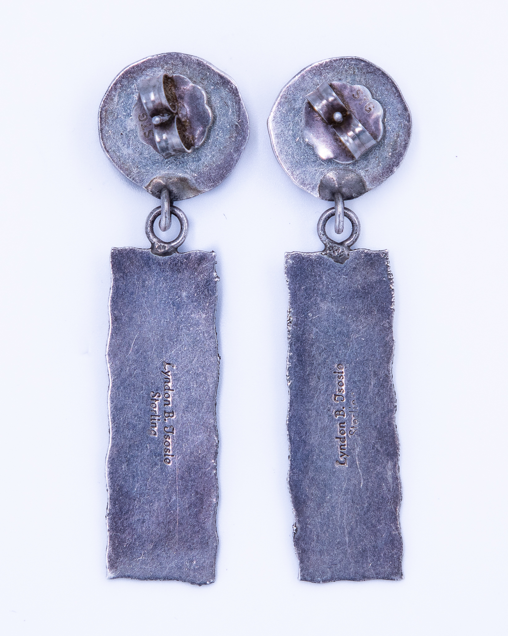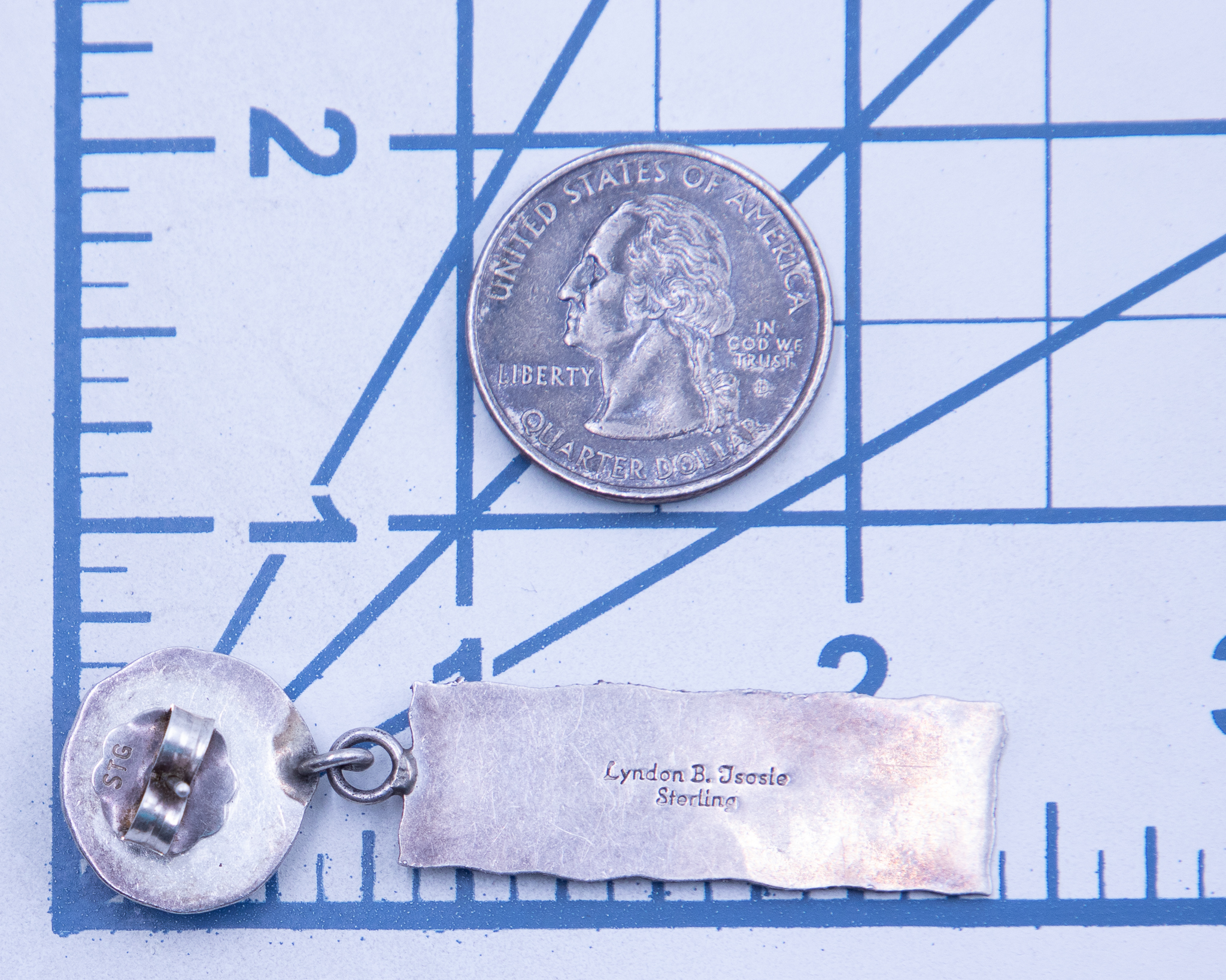 Lyndon B. Tsosie Coral Sterling Agate Inlay Dangle Earrings 16g