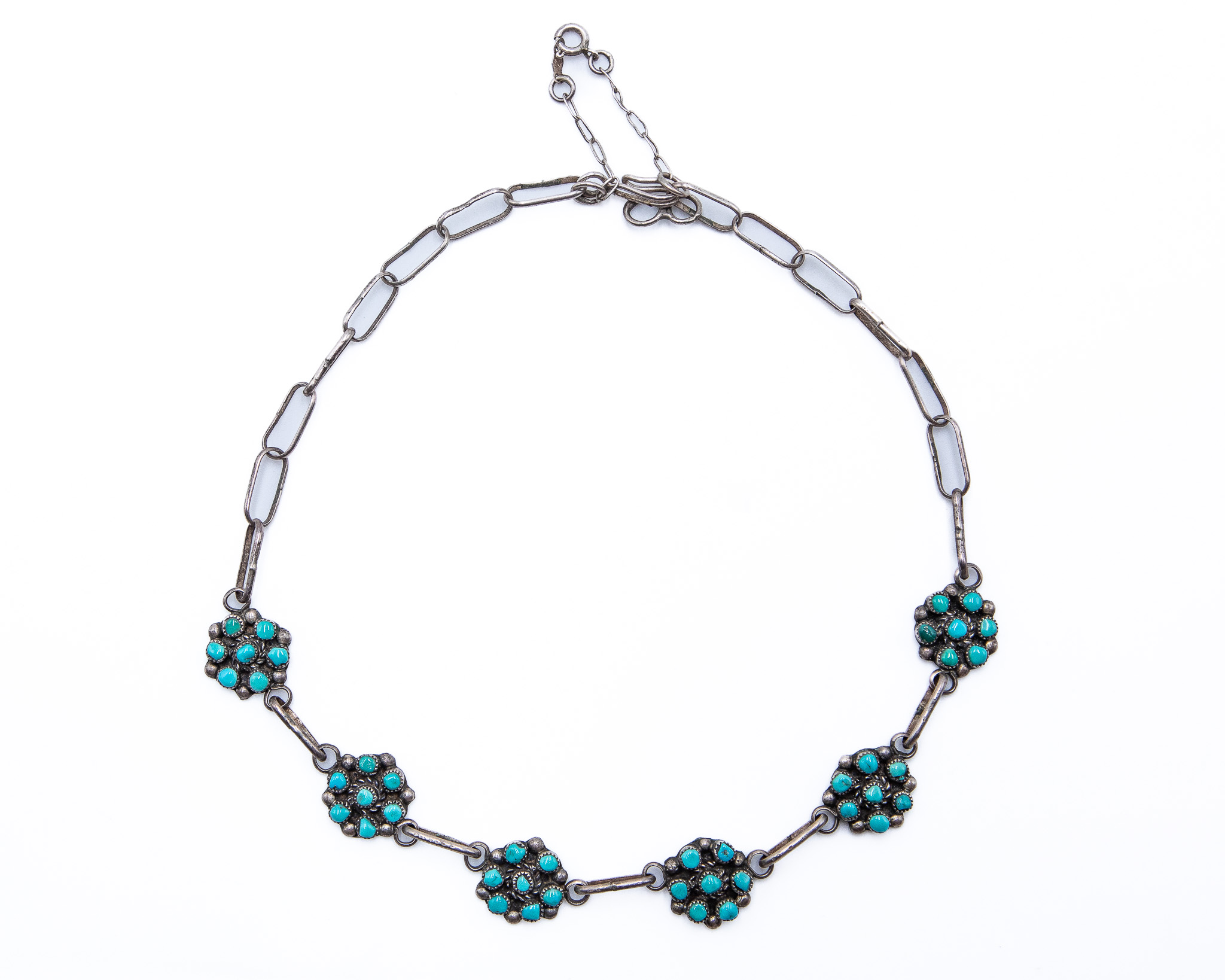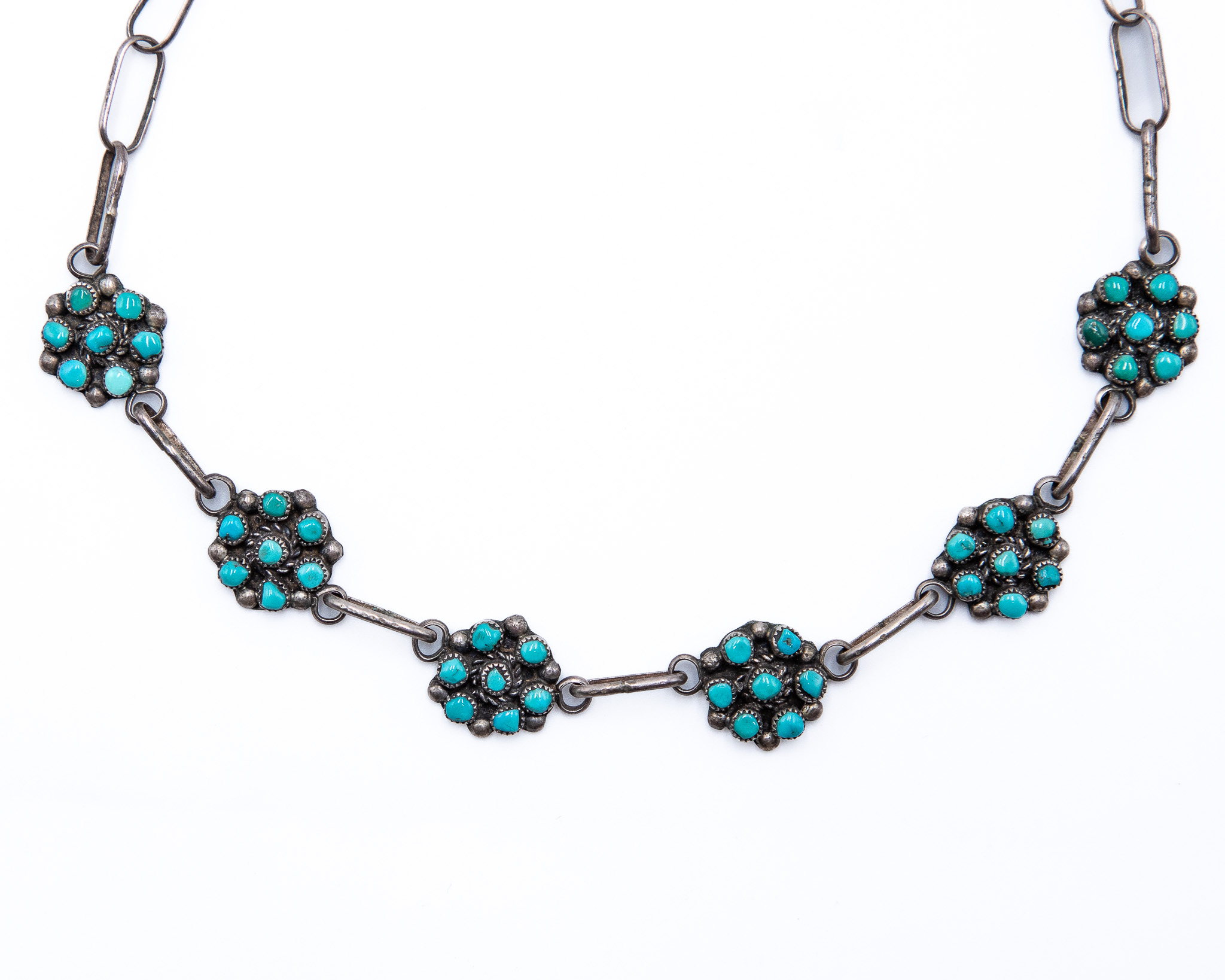 Vintage Zuni Sterling Turquoise Cluster Necklace