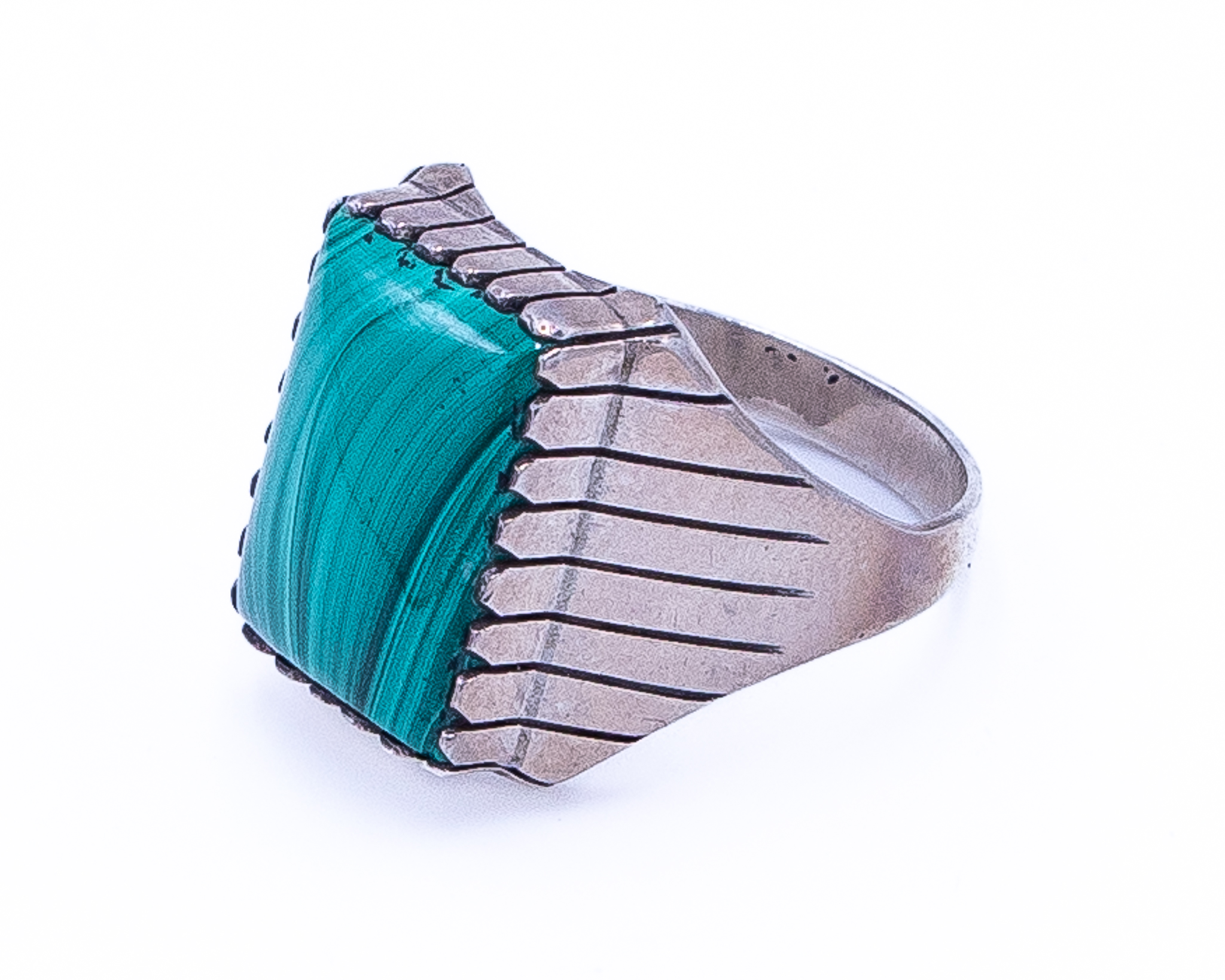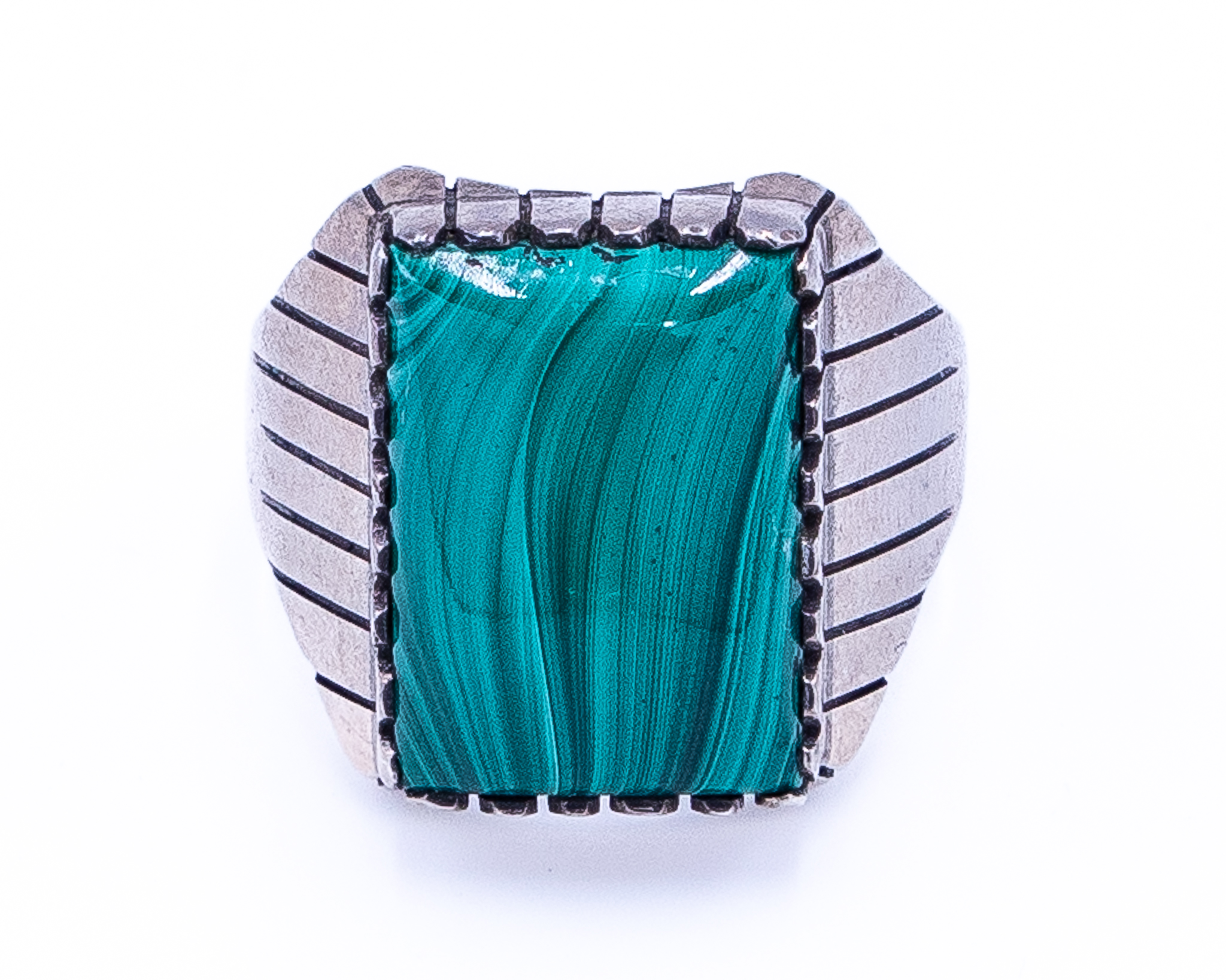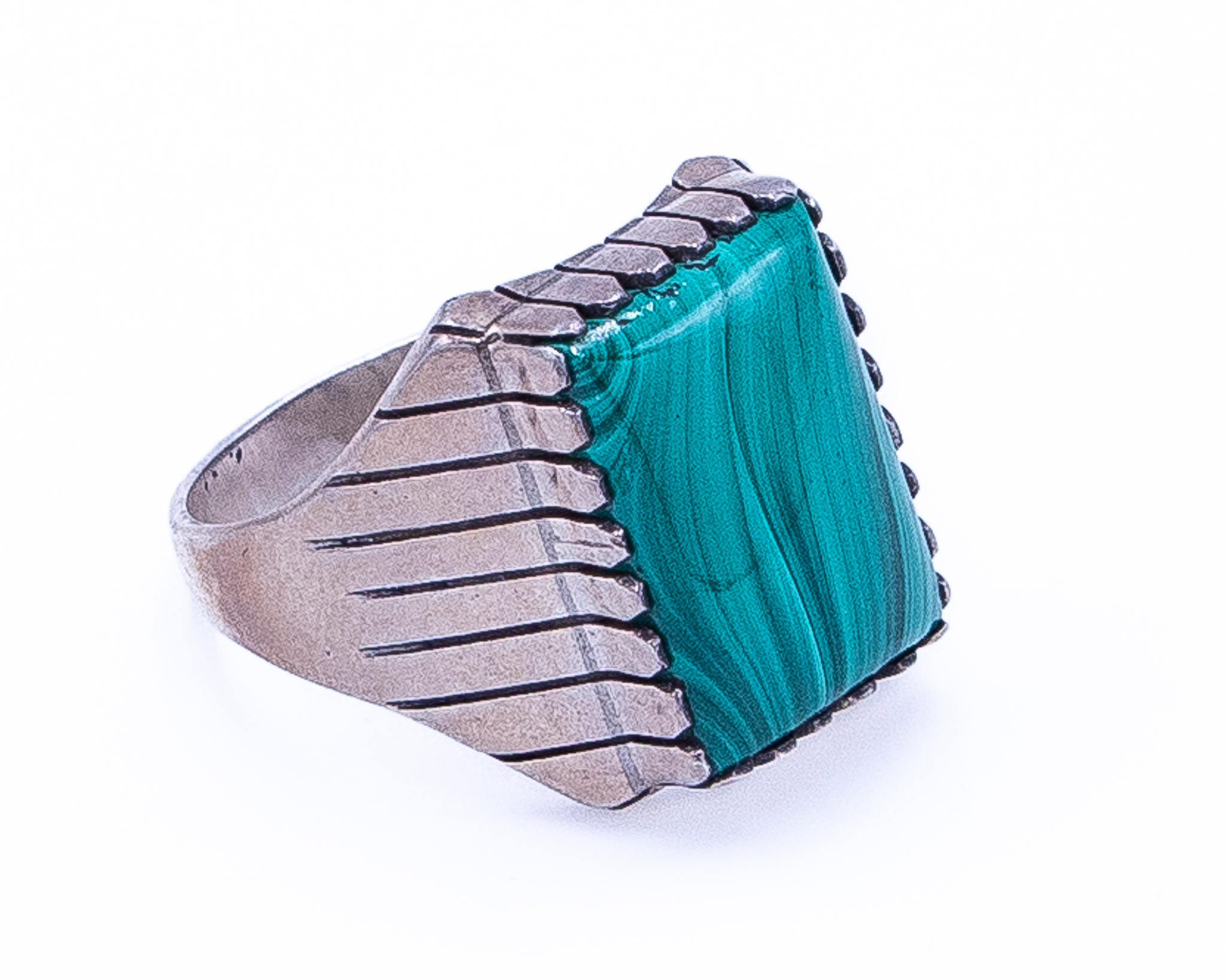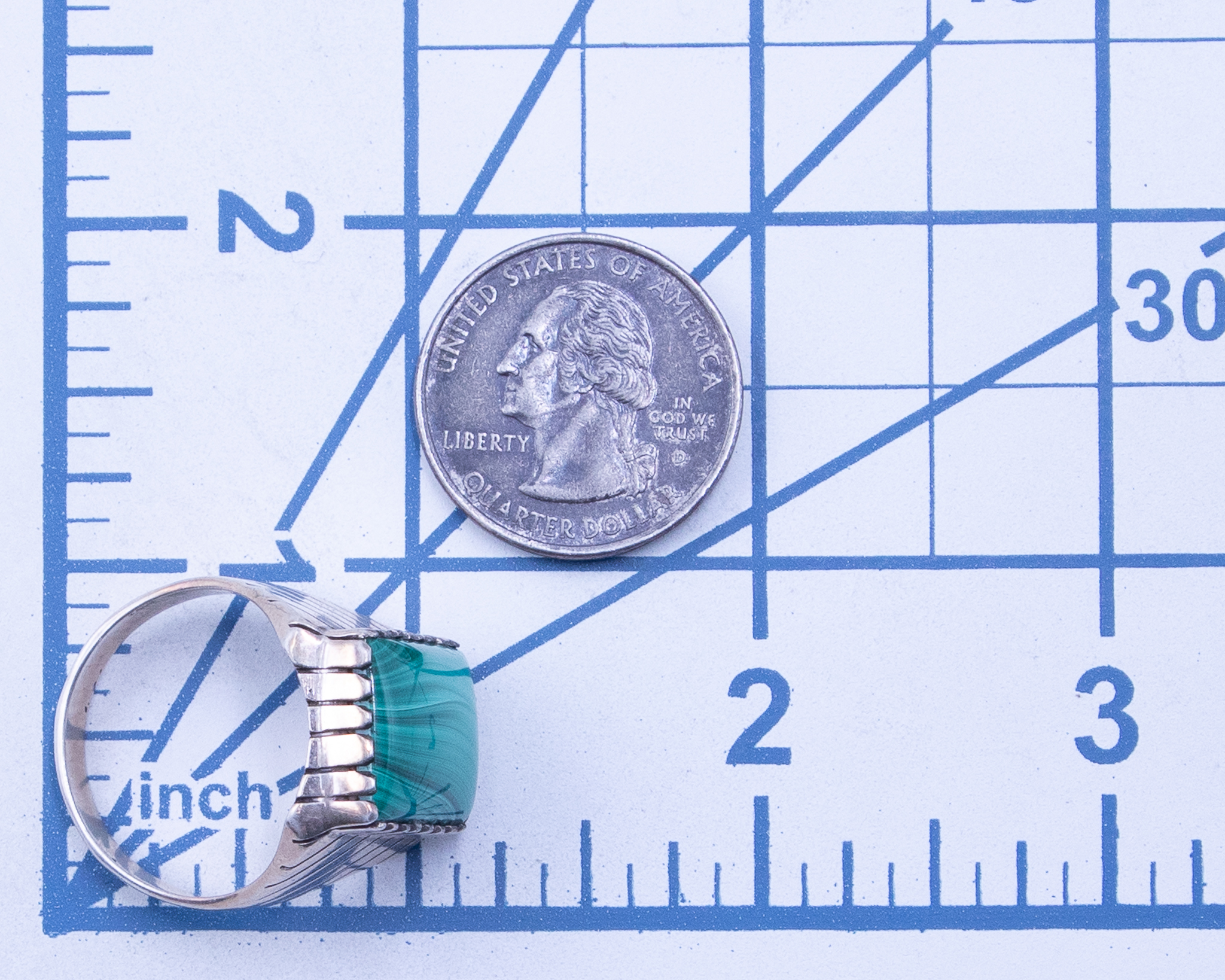 Vintage Signed Navajo Malachite Sterling Ring Sz 12.25, 14.5g