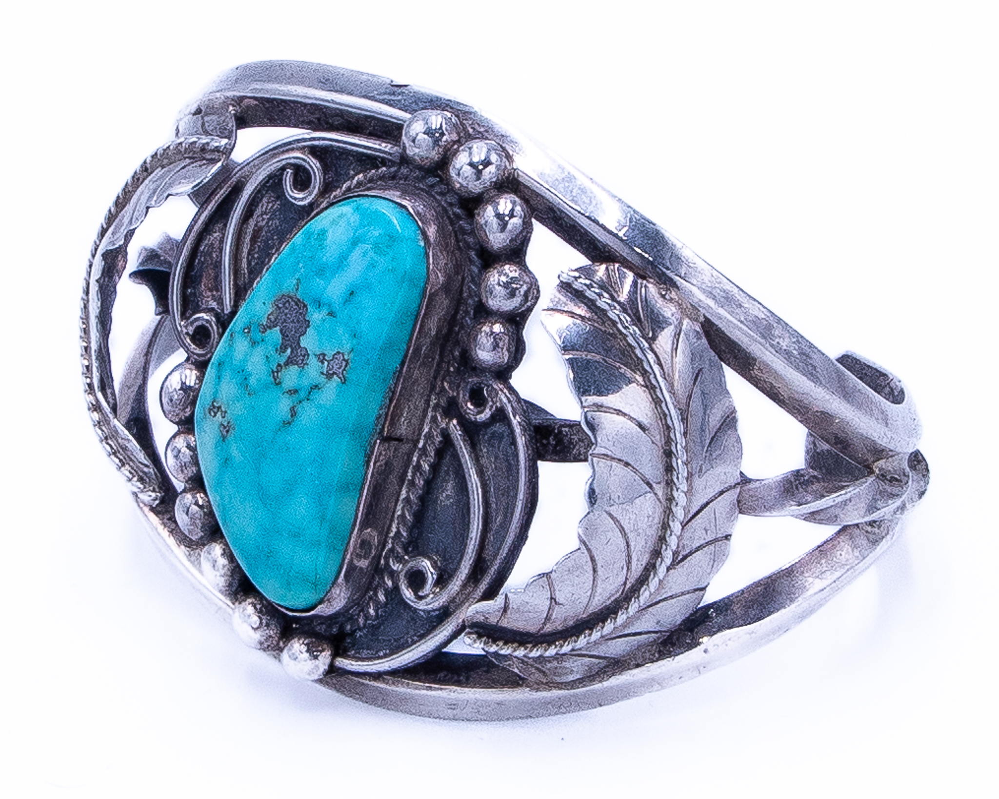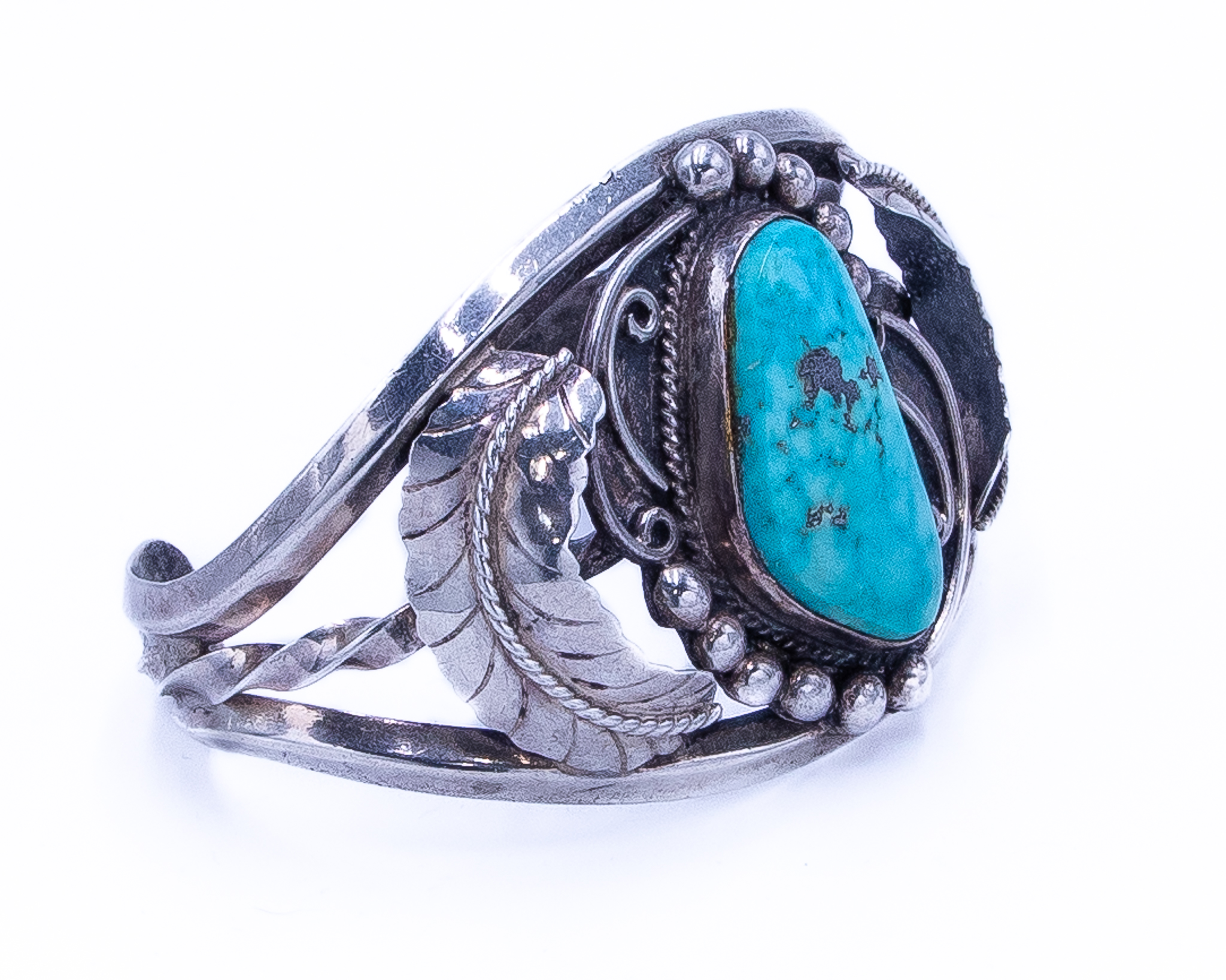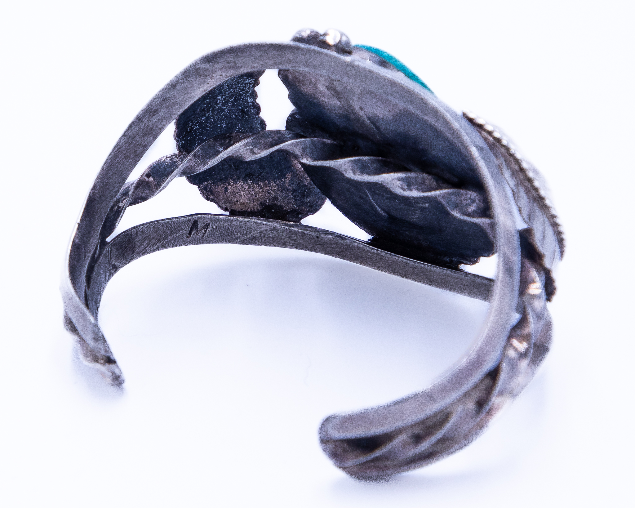 Signed M Navajo Turquoise Sterling Leaf Twist Cuff Bracelet 58.5g