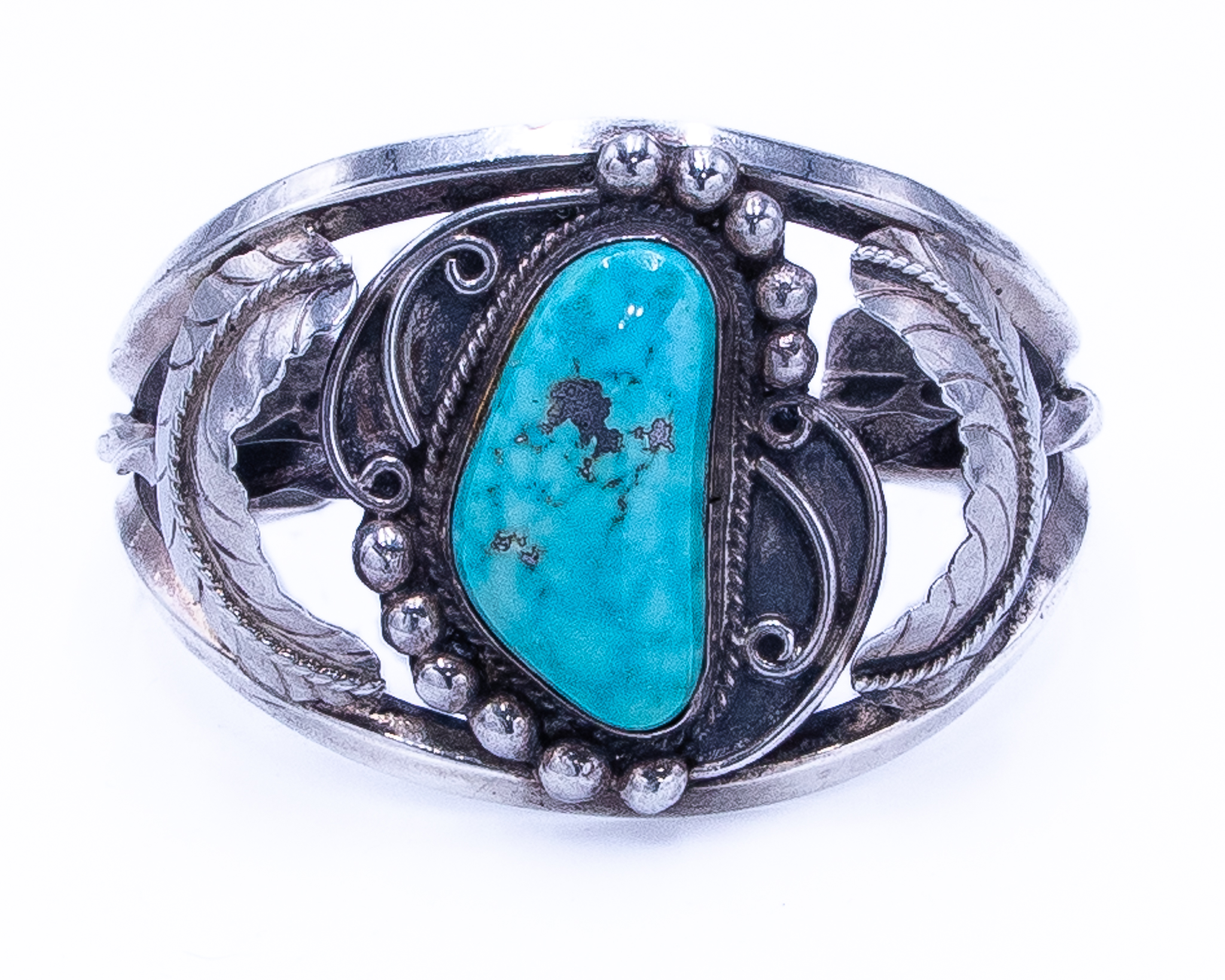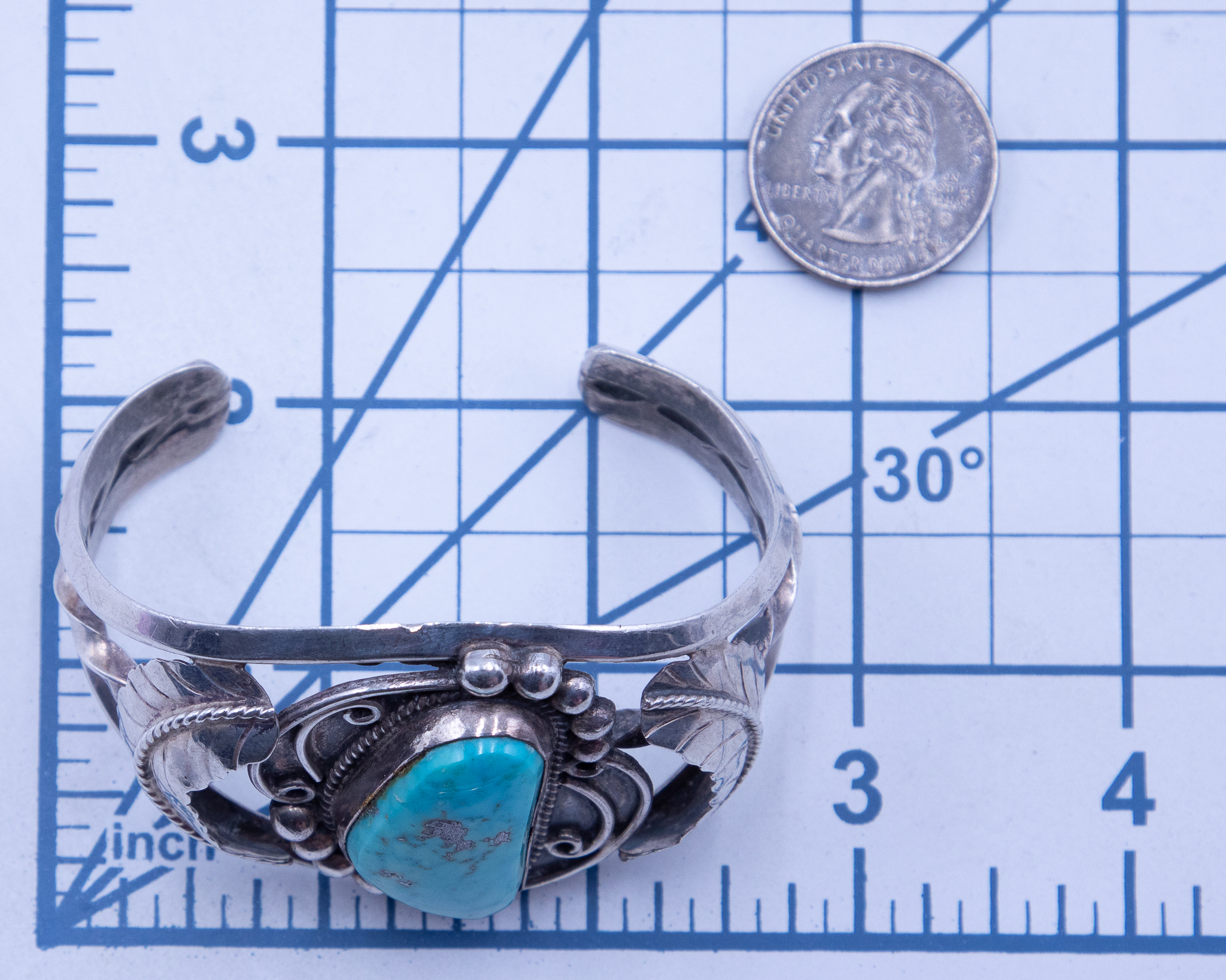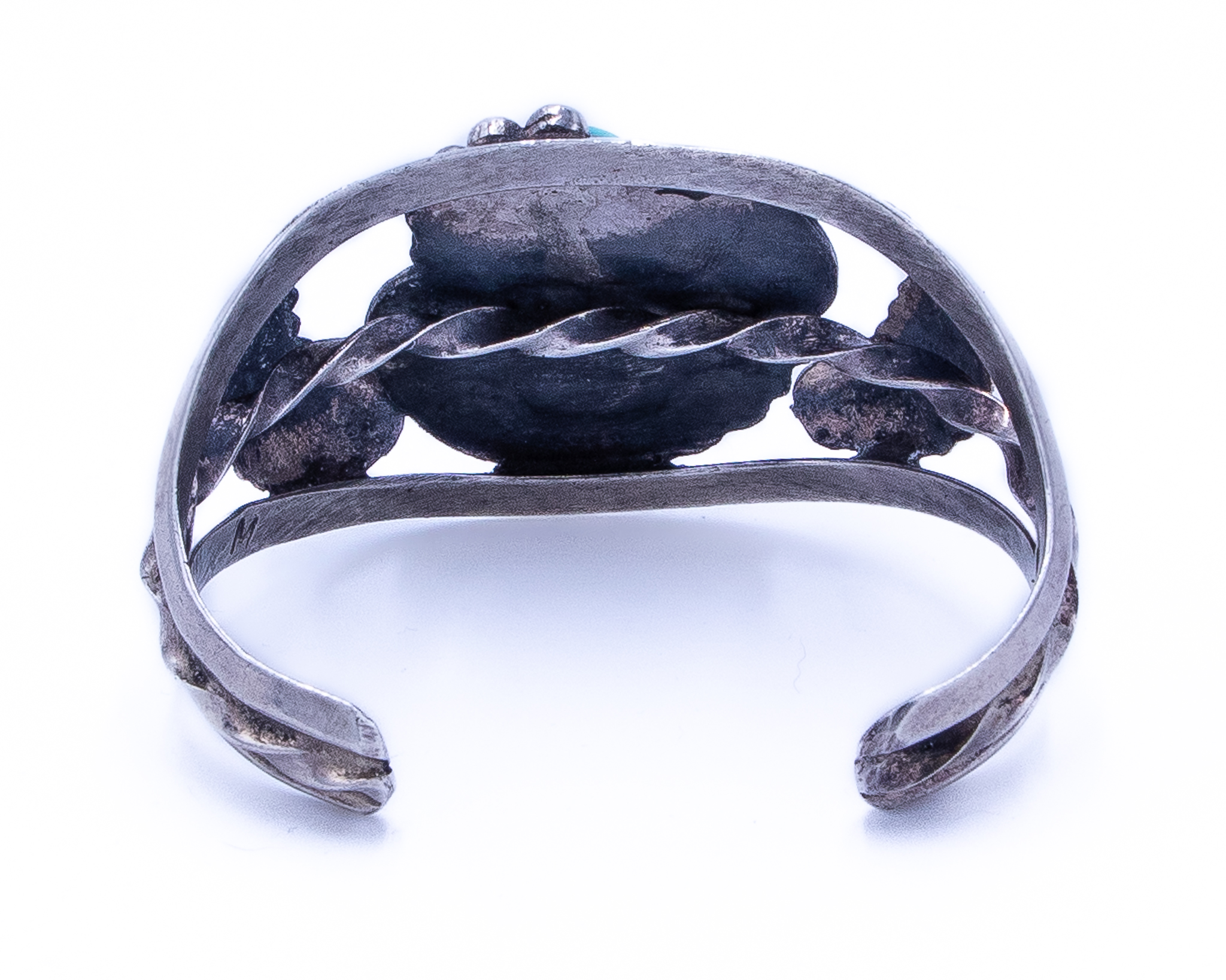 Signed M Navajo Turquoise Sterling Leaf Twist Cuff Bracelet 58.5g