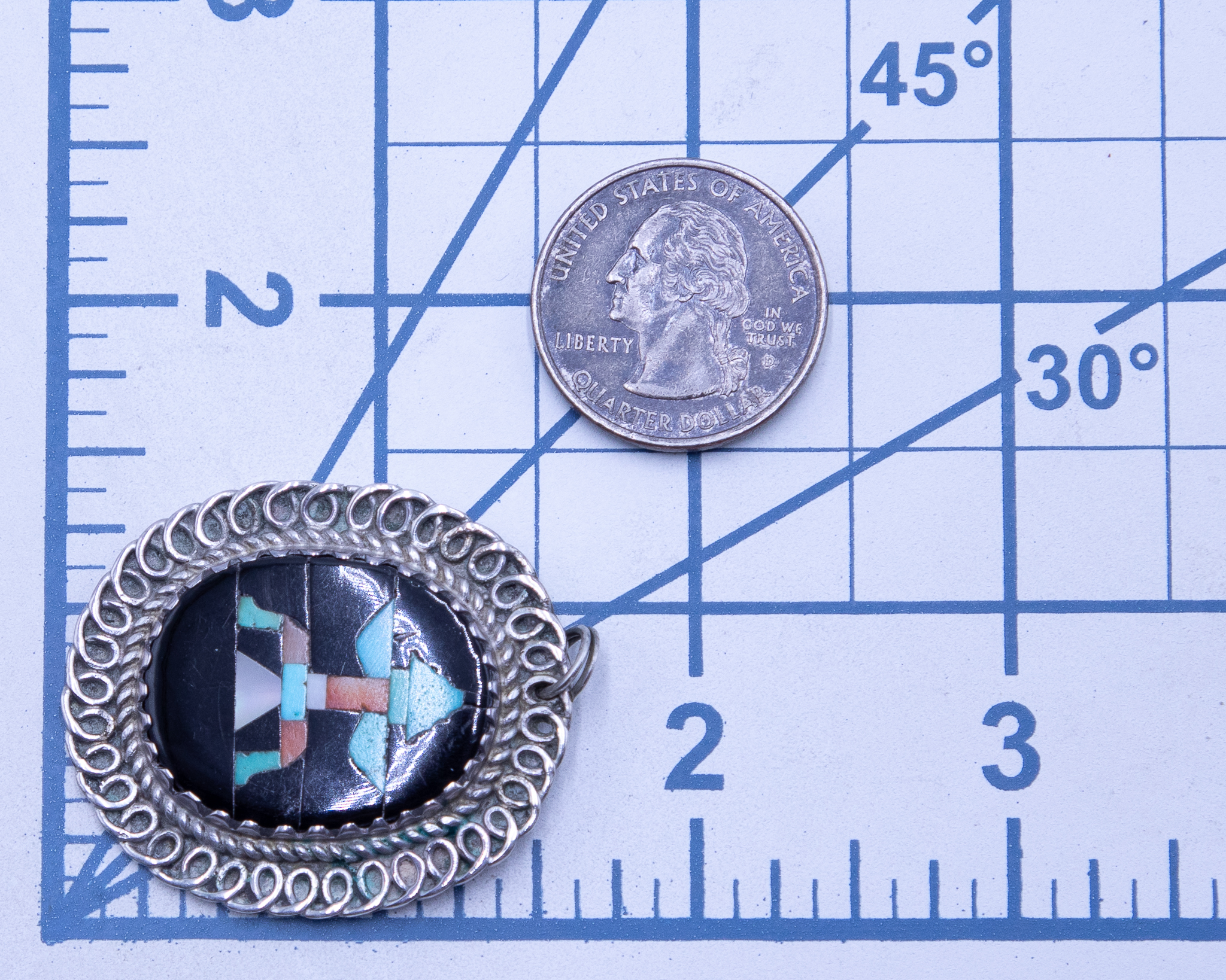Vintage Zuni 1940s John Gordon Leak Multi Stone Sterling Knifewing Inlay Pendant 17g -Onyx, Turquoise, Mother of Pearl, Spiny Oyster