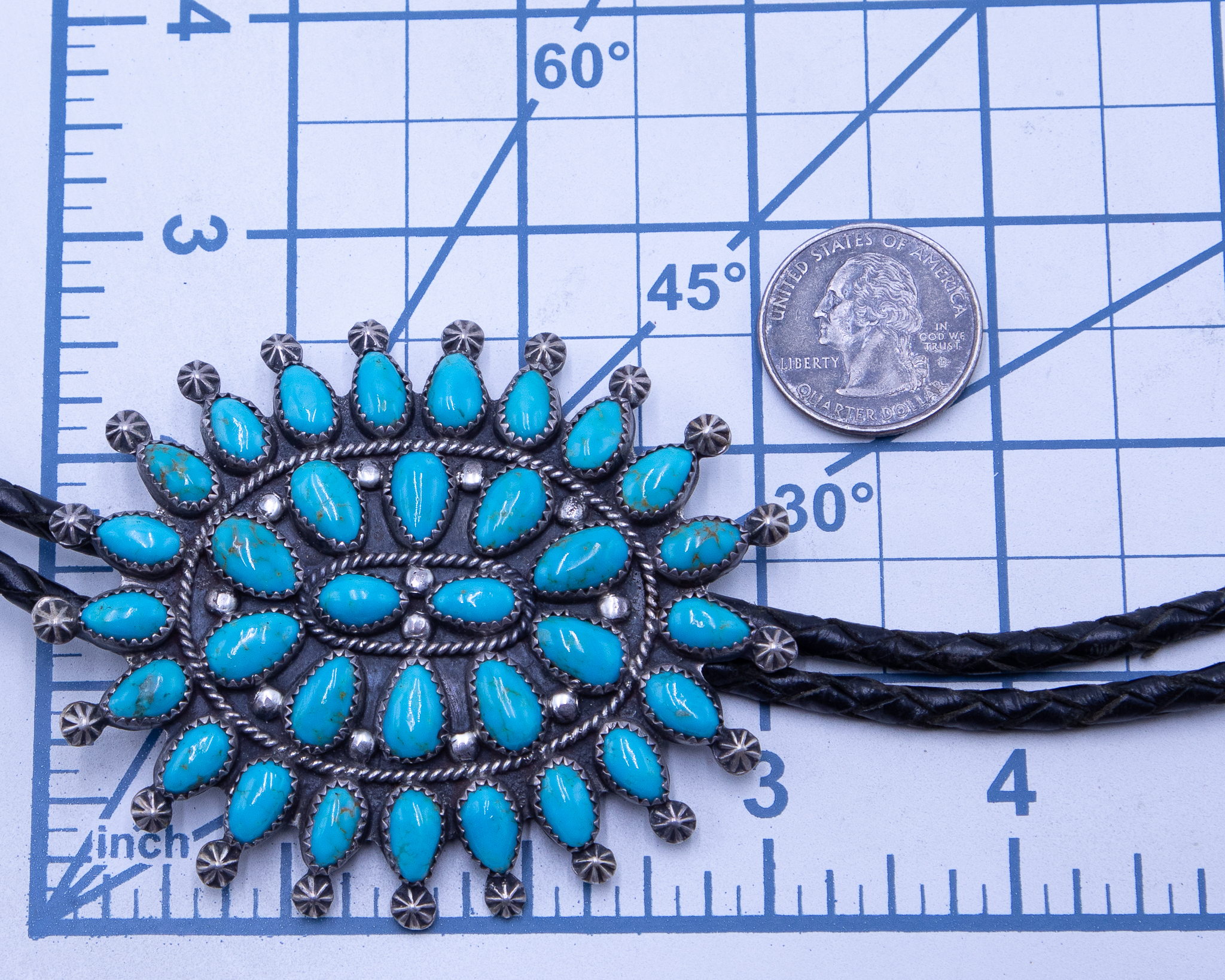 Signed Handmade MNT Turquoise Sterling Bolo Tie 62g