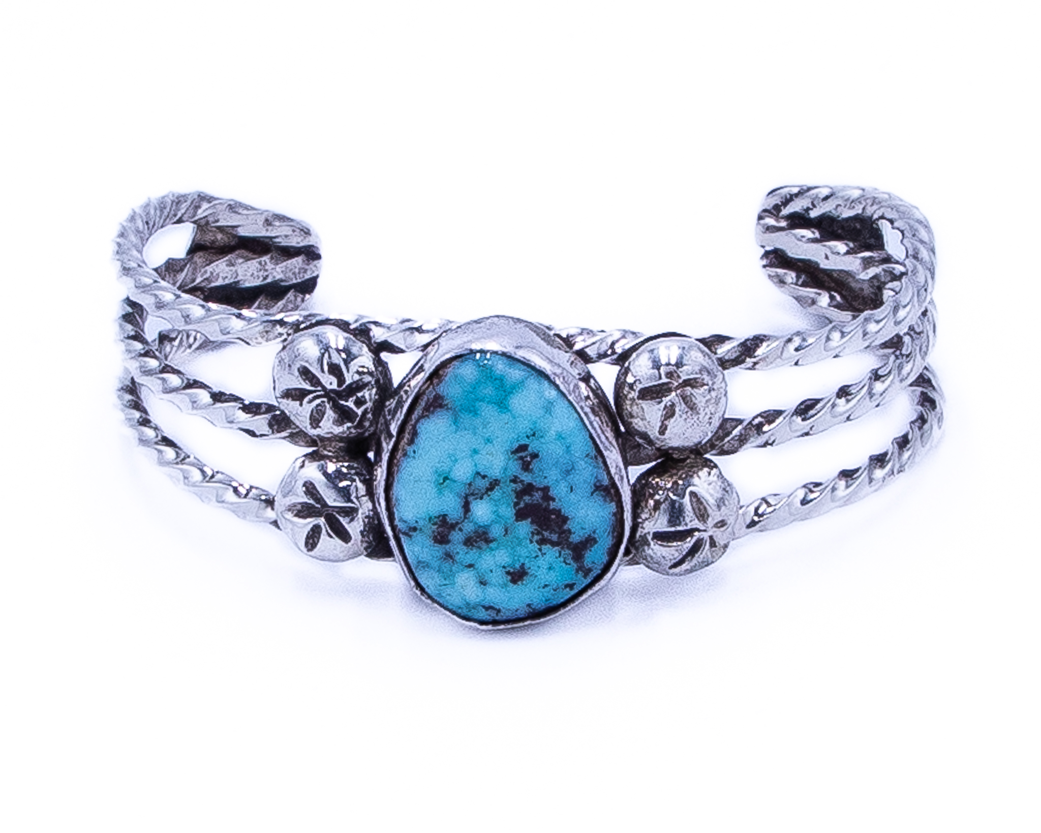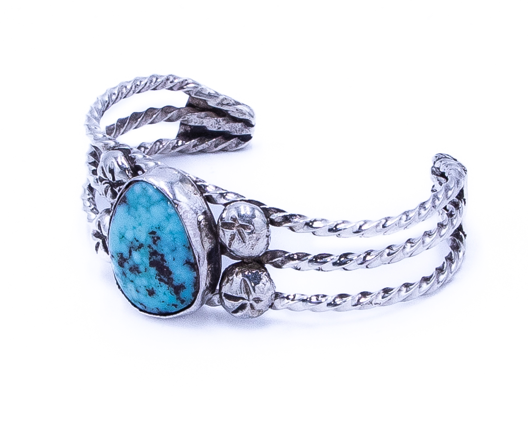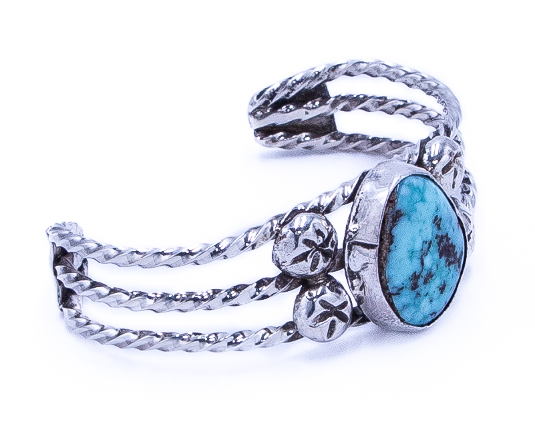 Vintage Navajo Turquoise Sterling Twist Cuff Bracelet 29g