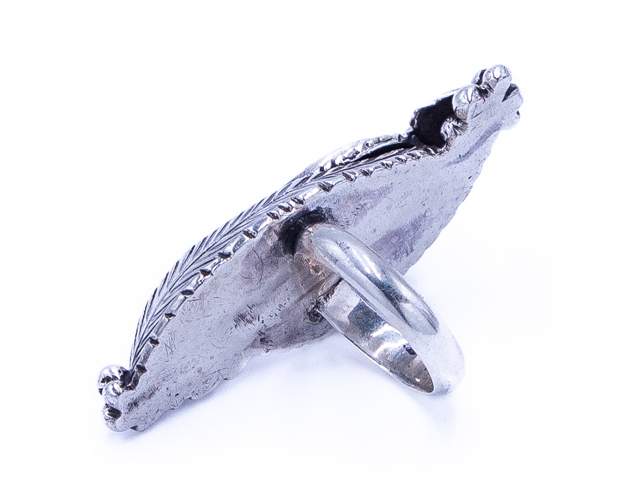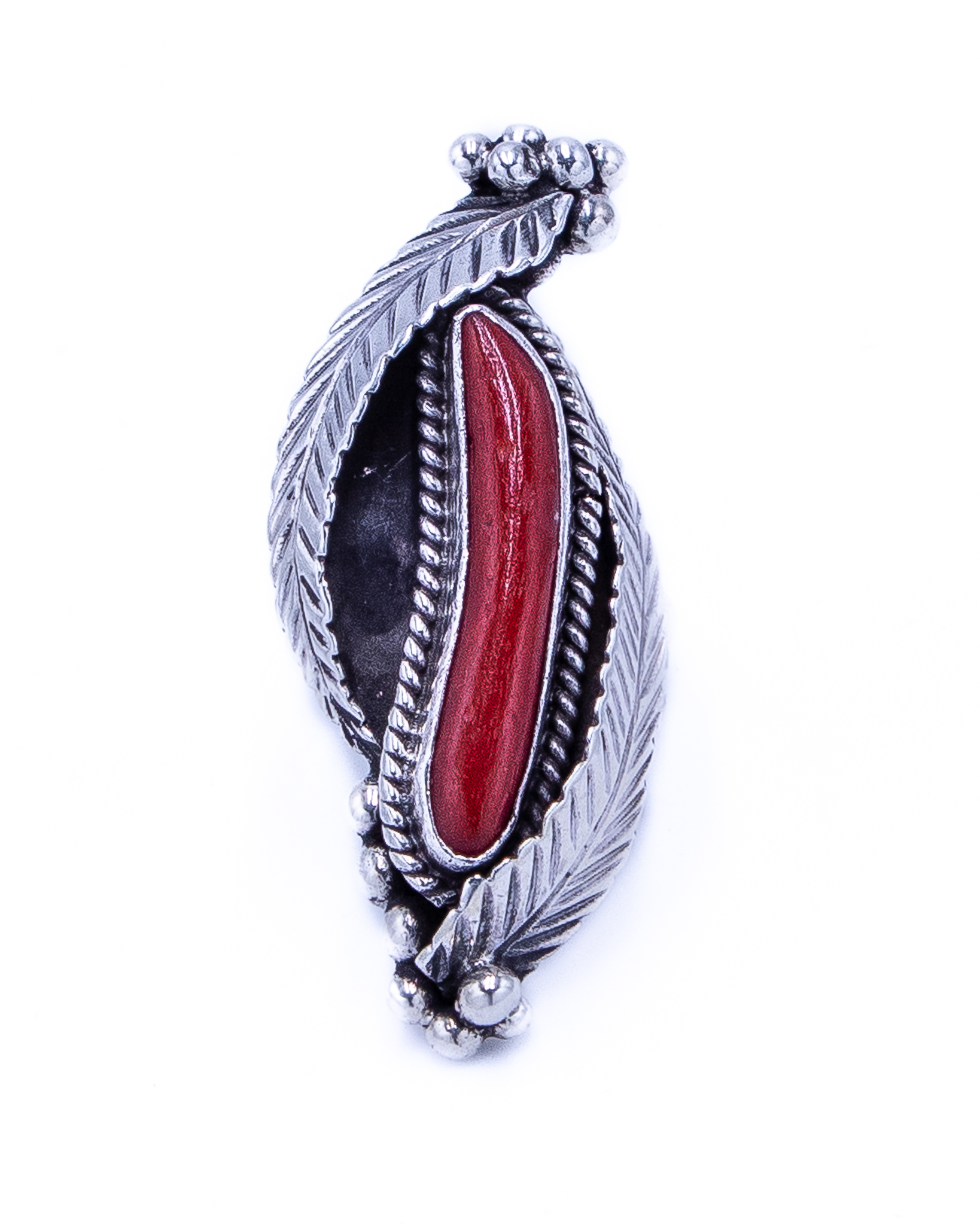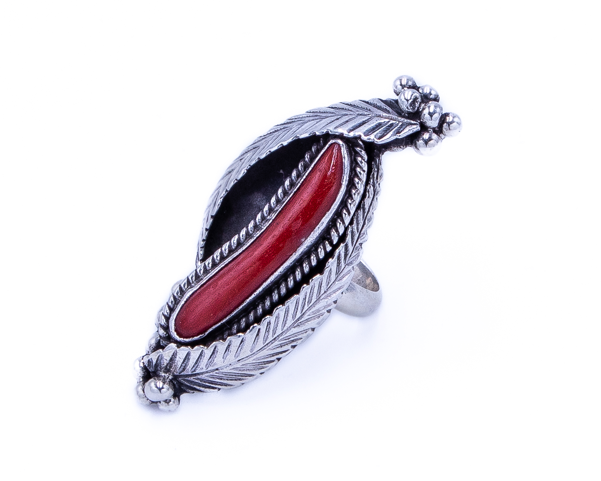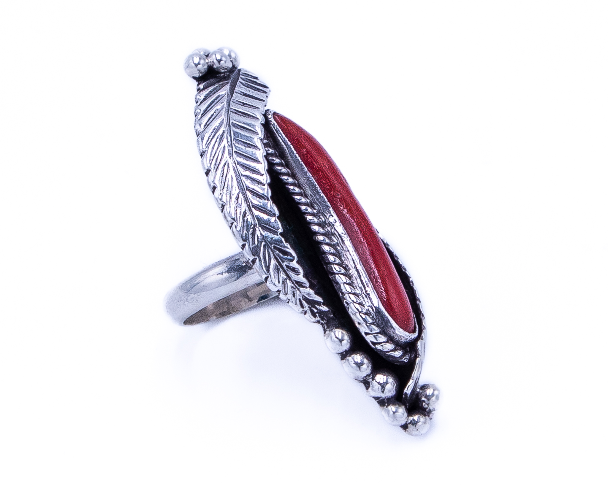 Navajo Coral Sterling Leaf Ring Sz 7, 15g