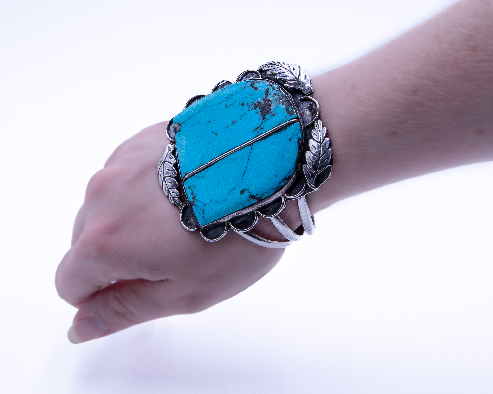 Huge Hand Signed CAV Topa Native American Amazing Turquoise Sterling Cuff Bracelet 70.5g